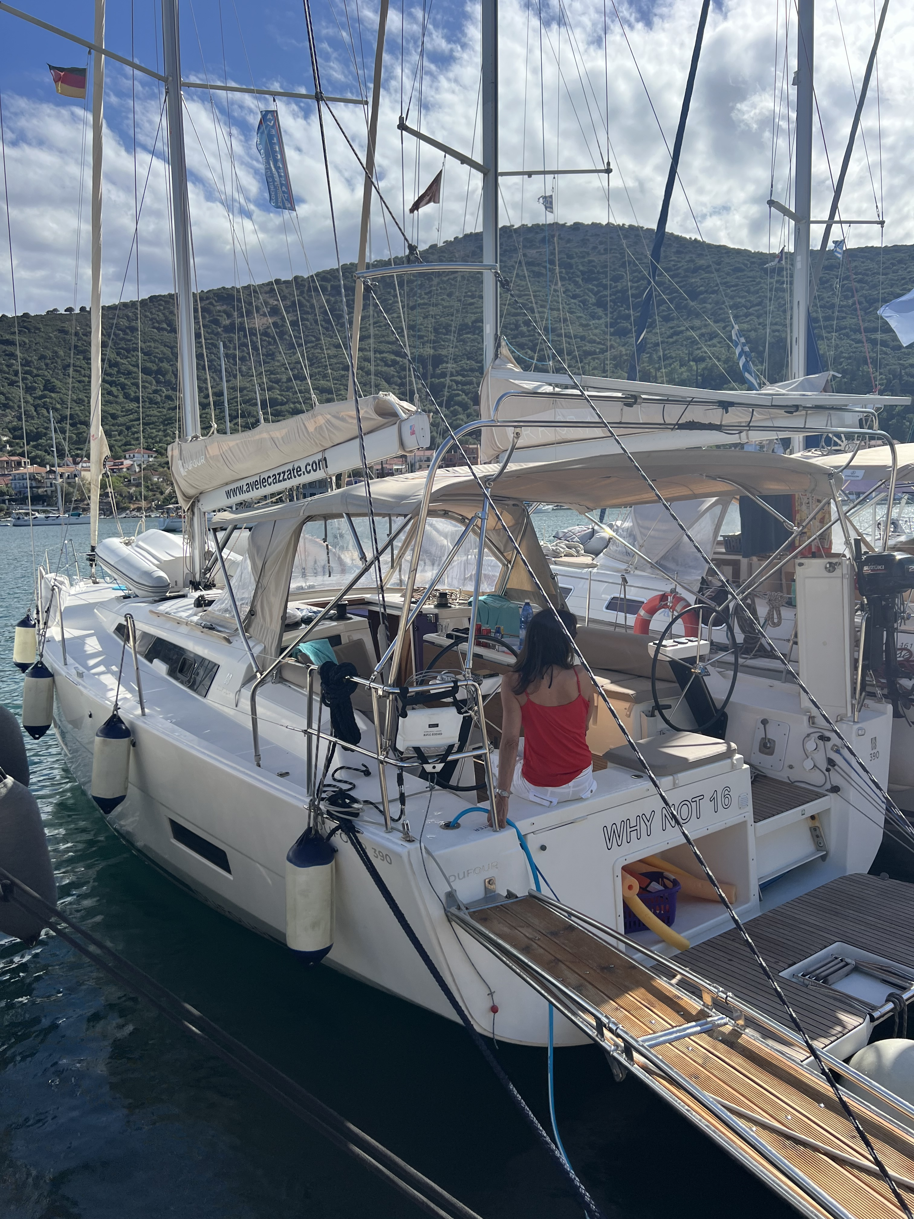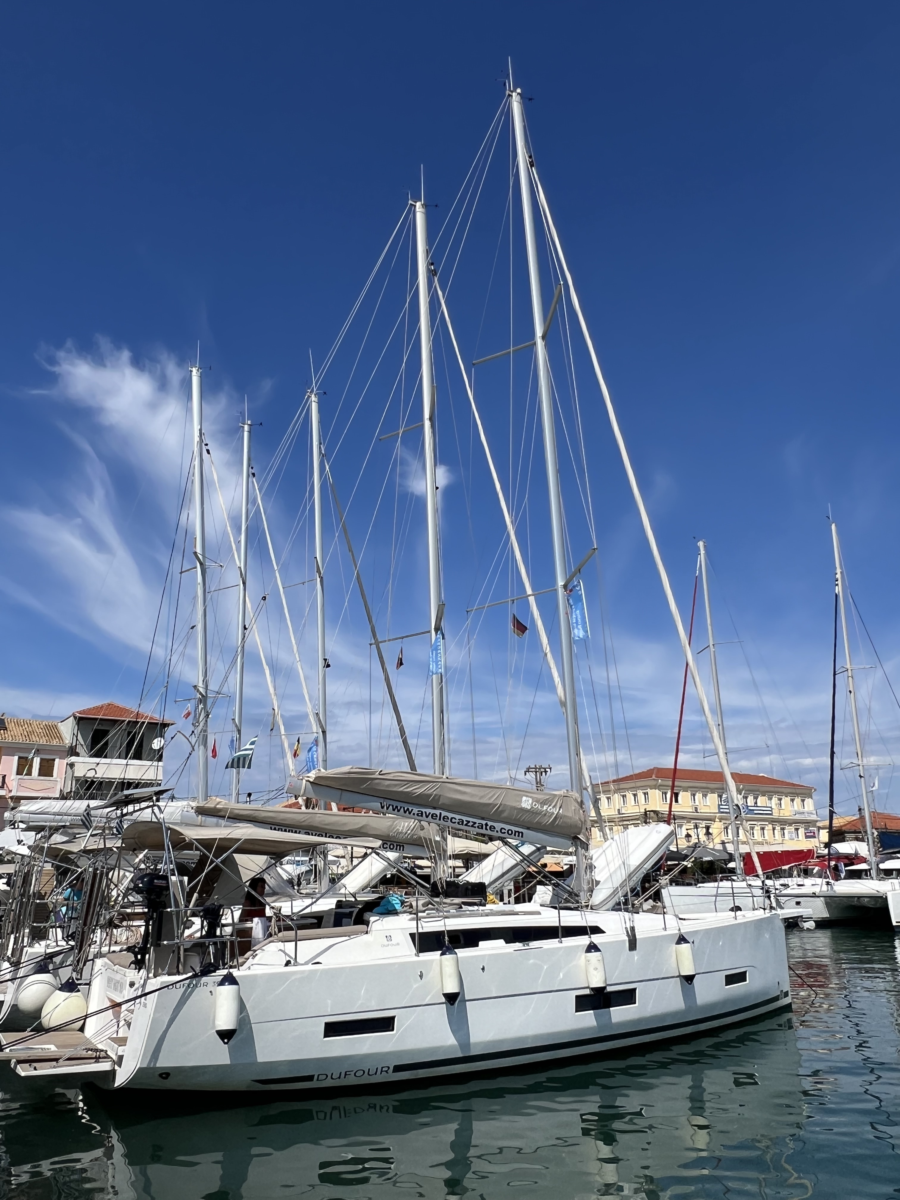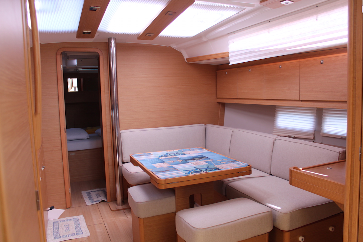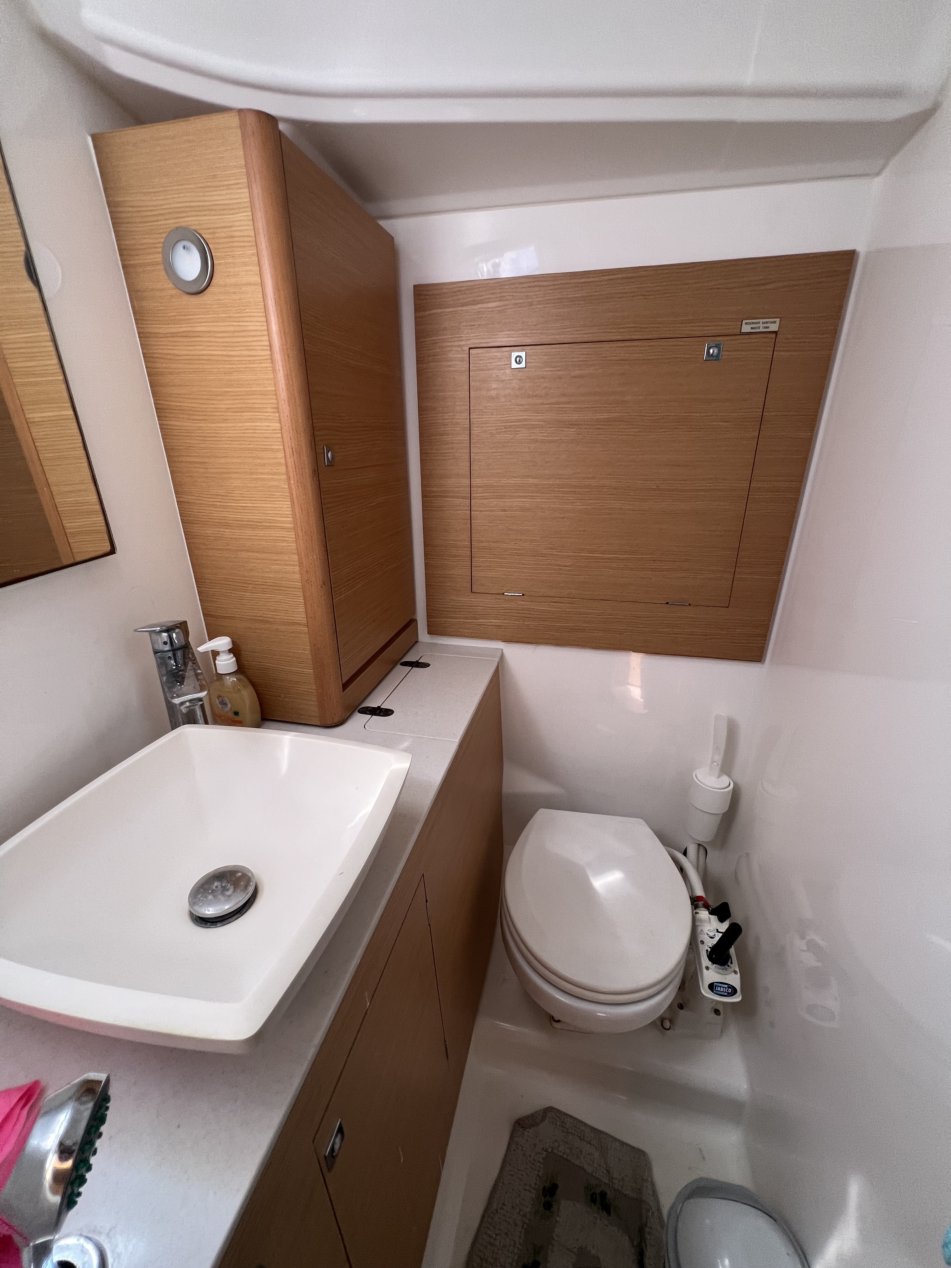 | Outside | 220 V-Landanschluss, Anker mit Kette, Ankerwinsch, Badeplattform, Biminitop, Cockpitdusche, Cockpitlautsprecher, Cockpitpolster, Cockpittisch, Fender, Gangway, Grill, Solaranlage, Sprayhood, Windex |