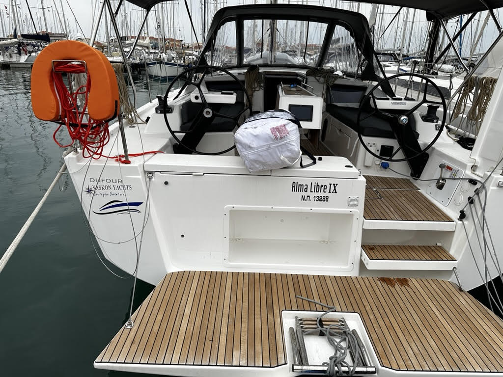 | Outside | Badeplattform, Cockpitdusche, Cockpitlautsprecher, elektr. Ankerwinsch, elektr. Winsch, Gas-Barbecue-Grill im Cockpit, Solaranlage, Sprayhood, Teak im Cockpit |