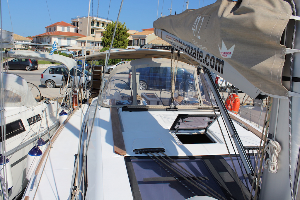 Einige Schiffstyp bedingte Schwächen an der Dufour 412 Gl, wie z.B. Belüftung, schlechte Haltemöglichkeiten auf dem Weg vom Cockpit zum Vorschiff. Gefährlich empfanden wir die Stufe im Bereich des Kartentischs. Segel setzen und Bergen, insbesondere des Vorsegels sehr schwer durch die stark reibende Reffleine. Die Ankerwinsch bedarf bei Benutzung erhöhter Aufmerksamkeit. Außerdem funktioniert sie nur bei laufender Maschine.
