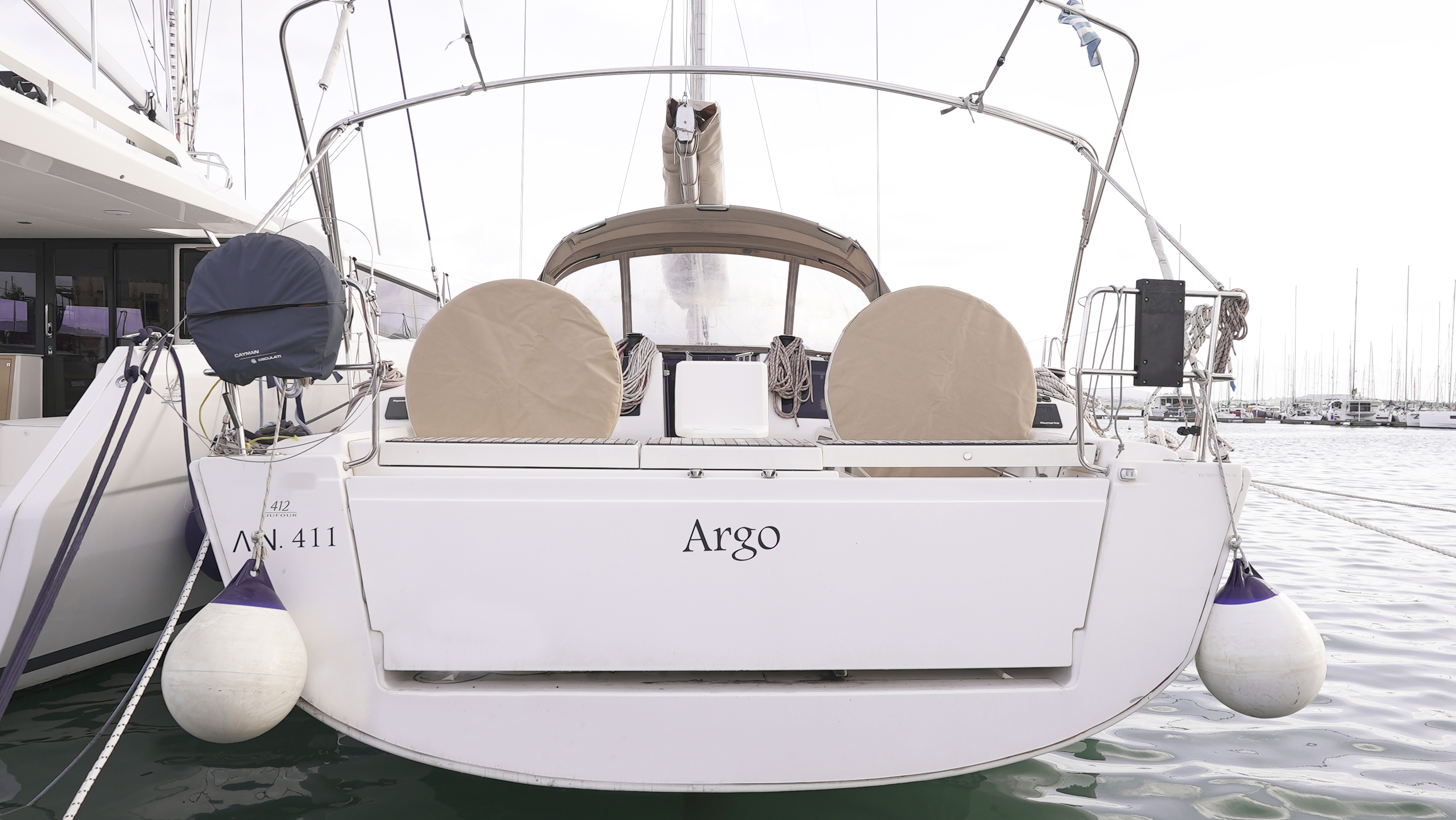 | Outside | Außendusche, Badeleiter, Biminitop, Cockpitdusche, Cockpitlautsprecher, Cockpitpolster, Cockpittisch, Segel-Flickwerkzeug, Solaranlage, Sprayhood, Treibanker |