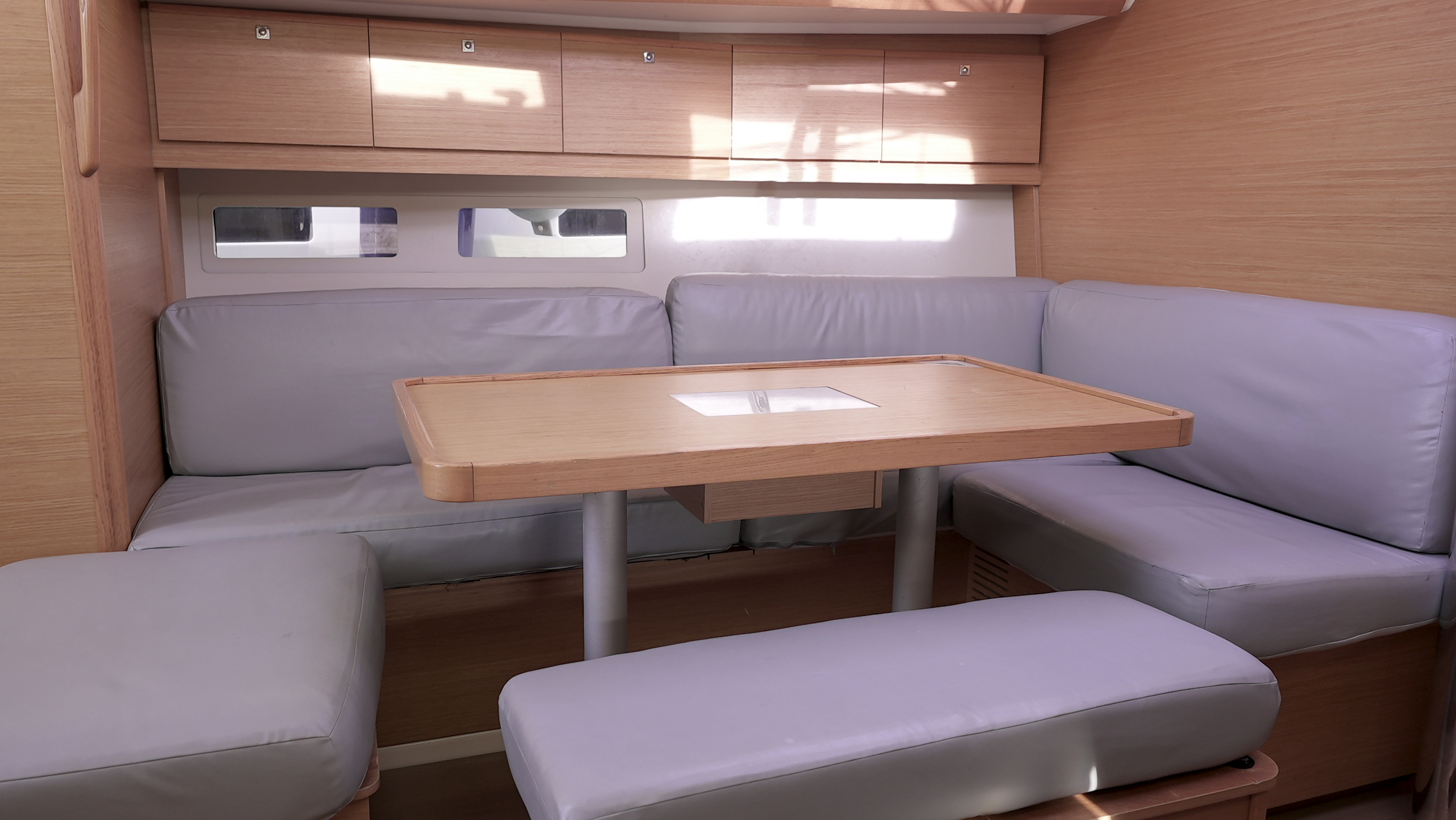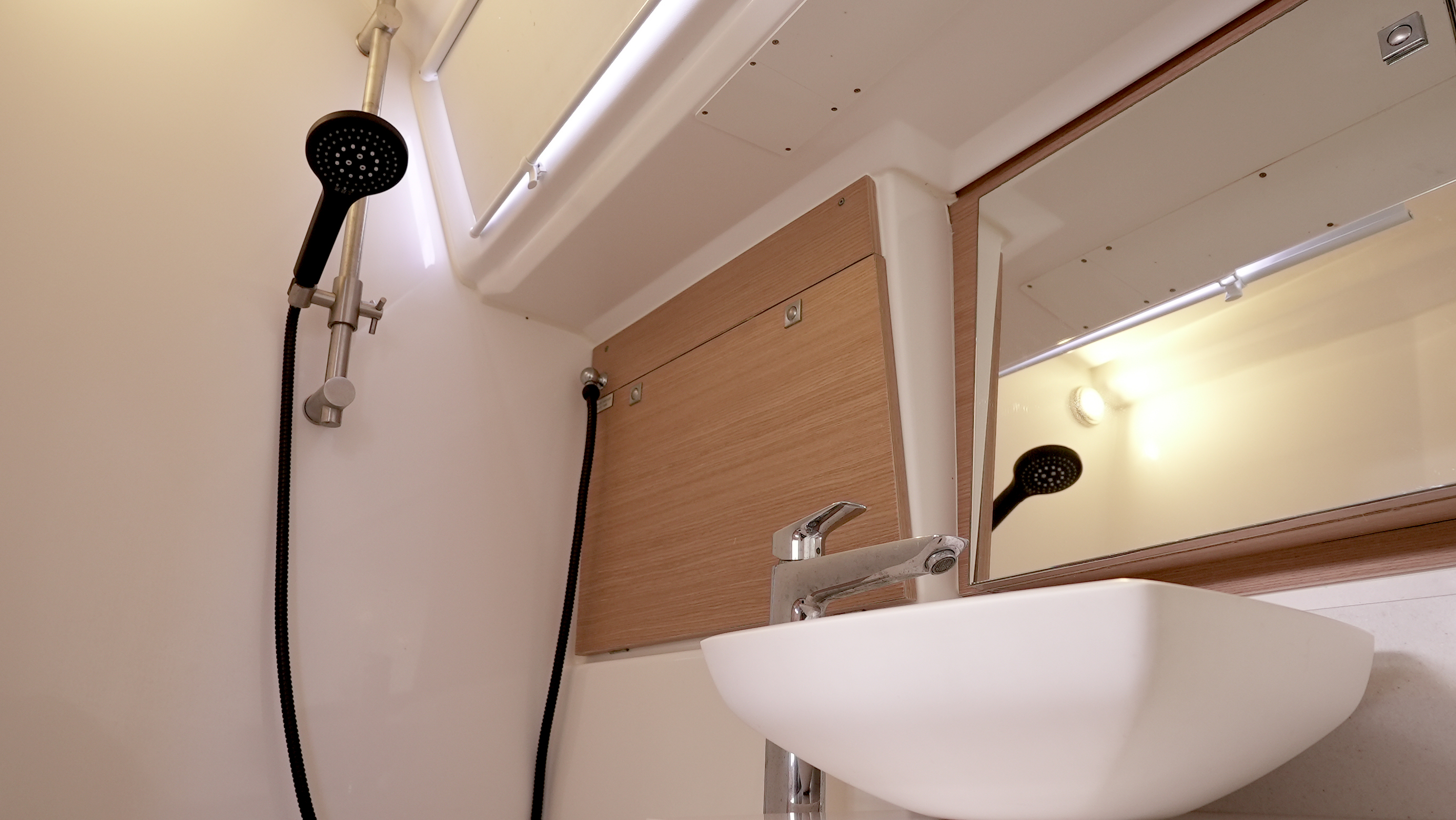 | Inside | 2. Kühlschrank, 220V Steckdosen, Borduhr, Fäkalientank, Gasherd, Kühlschrank, Lautsprecher im Salon, Pantryausstattung, Salontisch absenkbar, USB Steckdosen in den Kabinen, Ventilatoren in Kabinen, Warmwasser, WC (elektr.) |