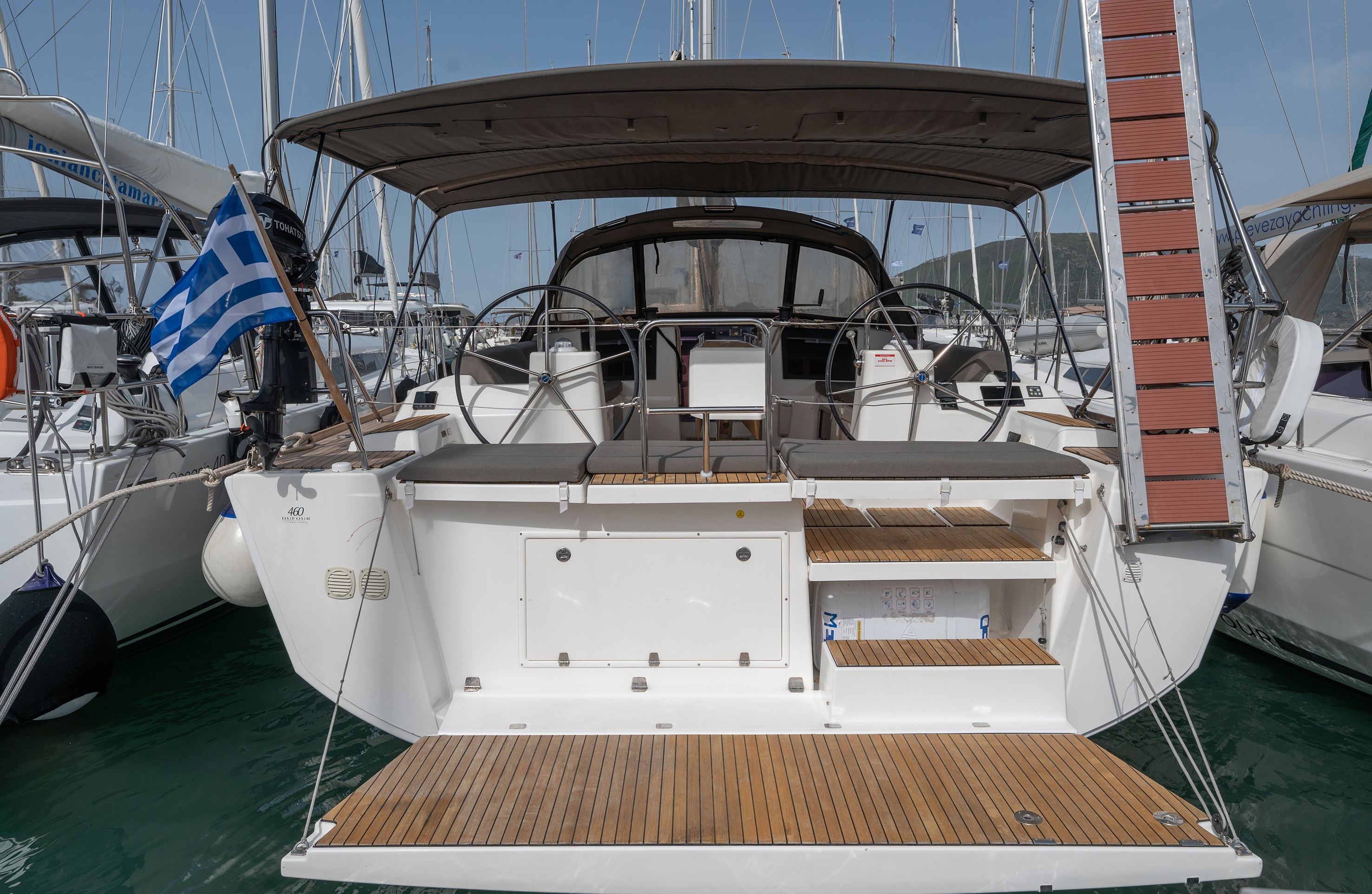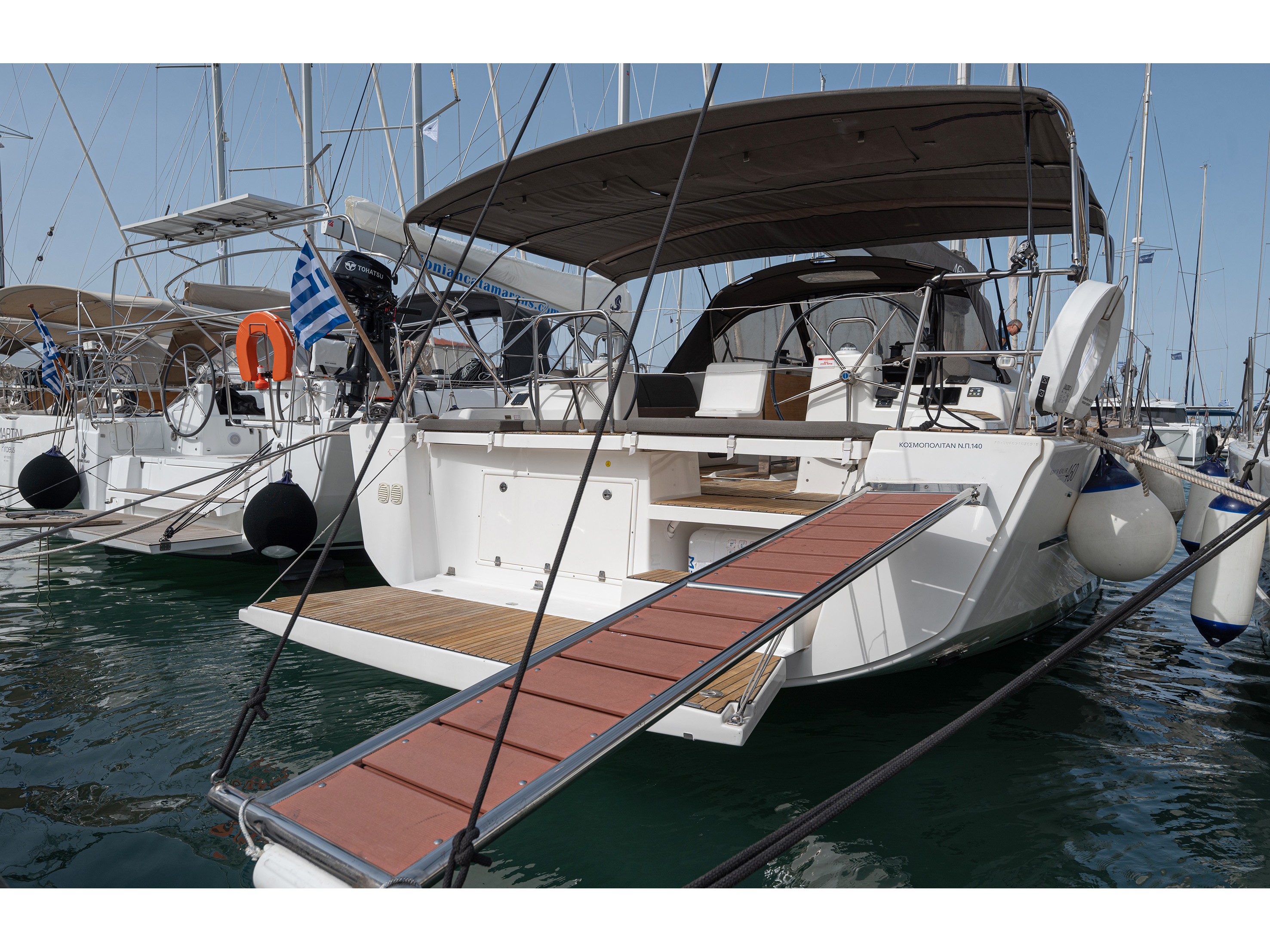 | Outside | Badeleiter, Biminitop, Cockpitdusche, Cockpitlautsprecher, Cockpitpolster, Cockpittisch, Deckpolster, elektr. Ankerwinsch, Gas-Barbecue-Grill im Cockpit, Grill, Schnorchelausrüstung, Solaranlage, Sprayhood, Teak im Cockpit, Teakdeck |
