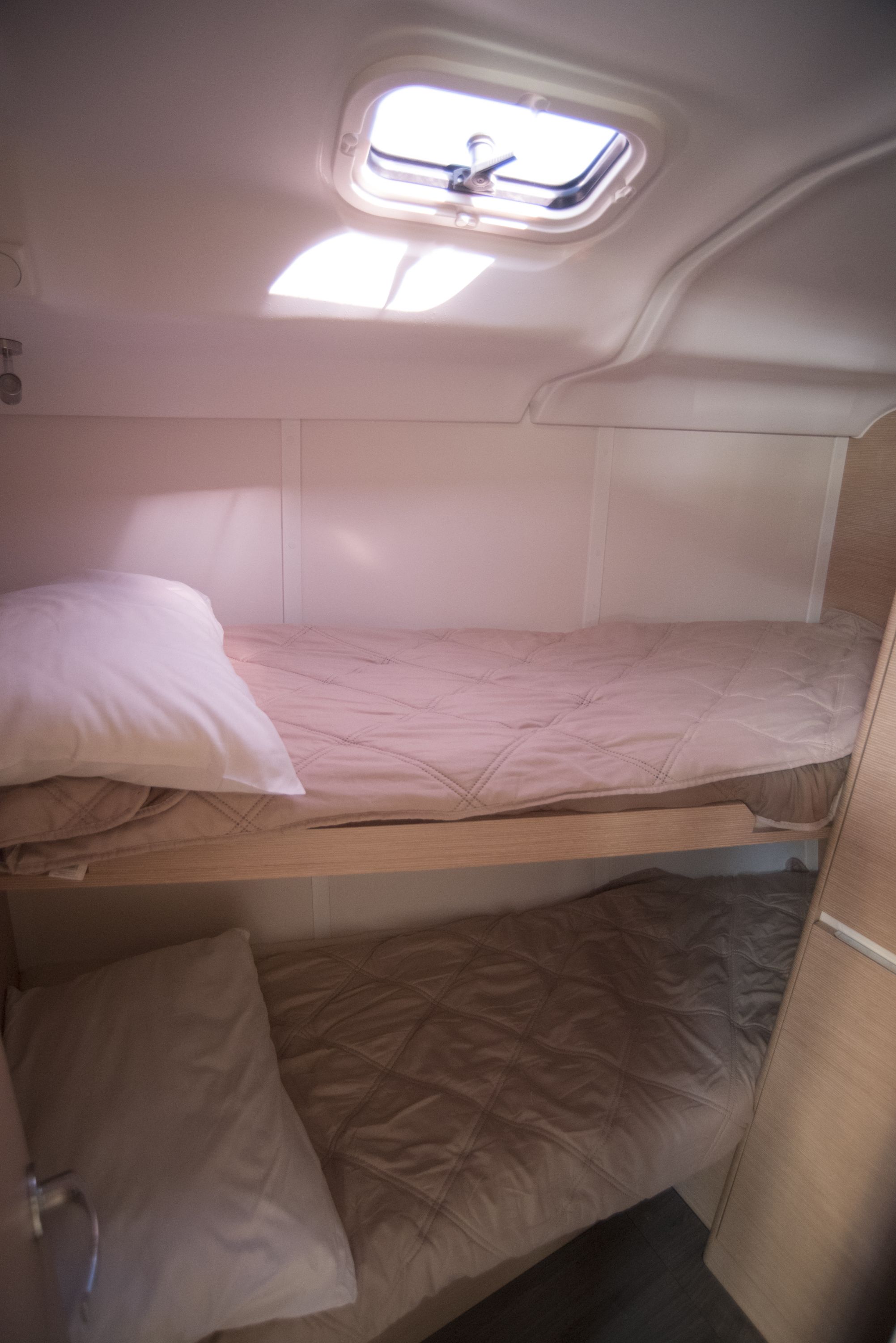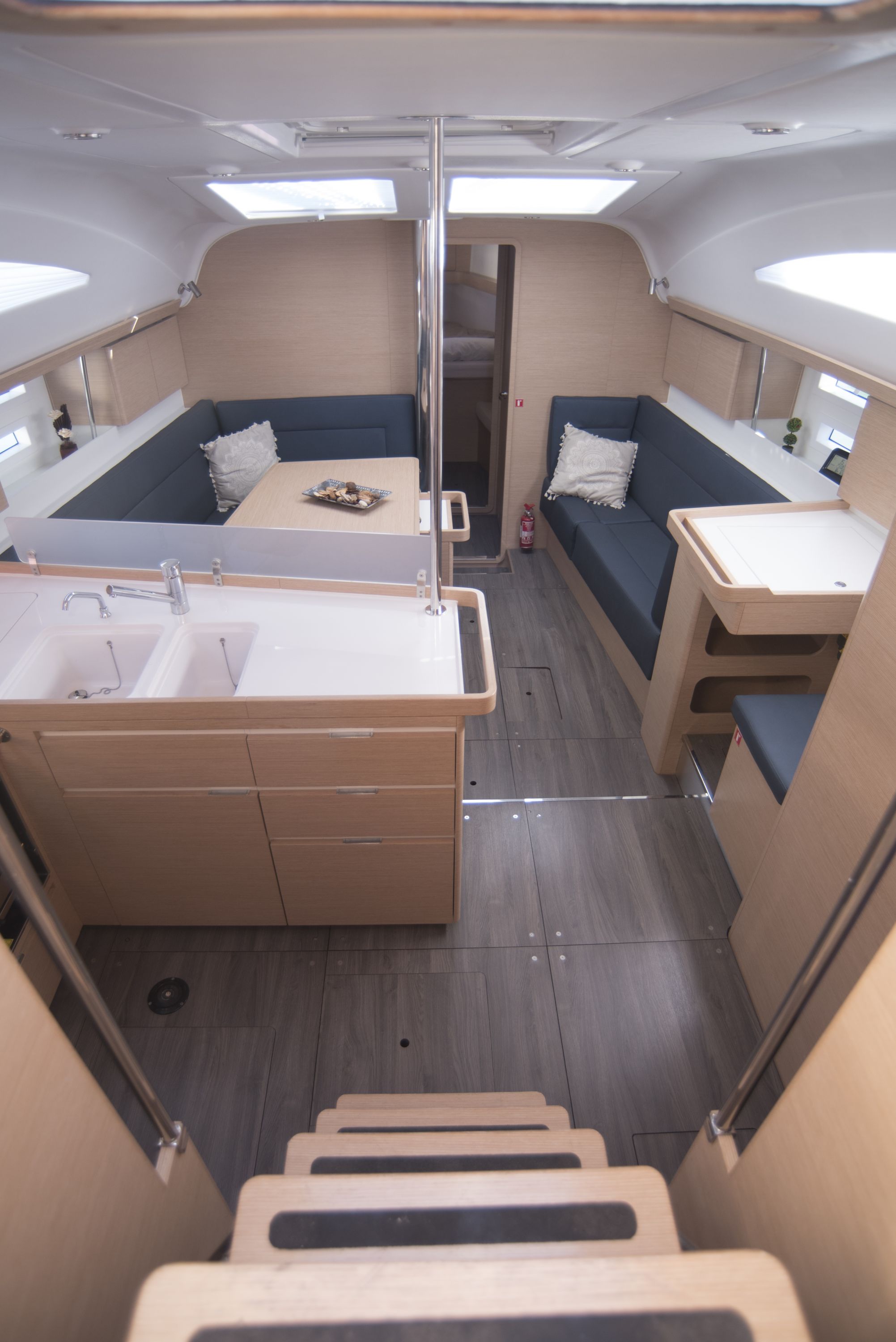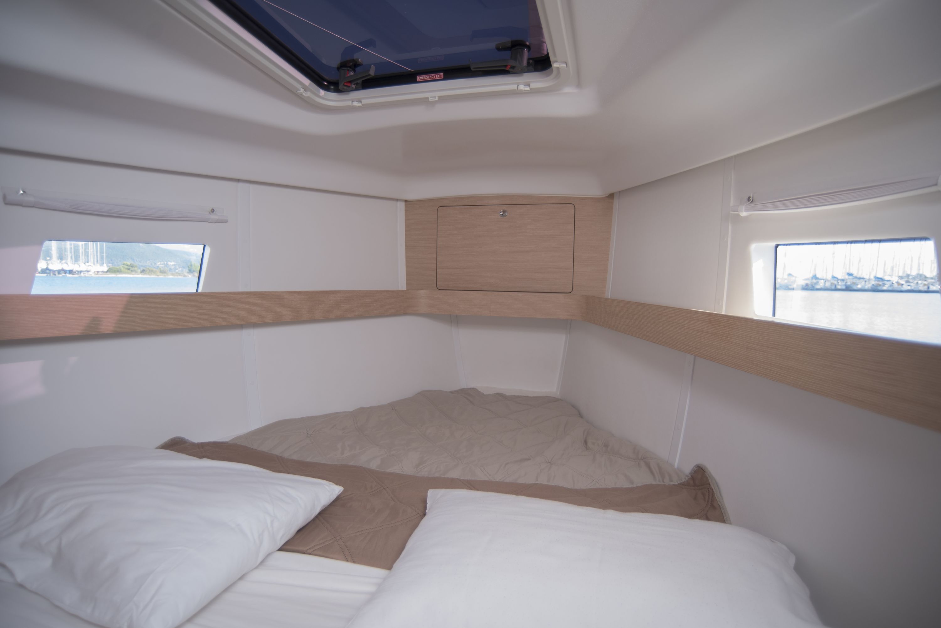 Inside 220V Steckdosen, Borduhr, Fäkalientank, Gasherd, Lautsprecher im Salon, Pantryausstattung, Salontisch absenkbar, USB Steckdosen in den Kabinen, Ventilatoren in Kabinen, Warmwasser, WC, WC (elektr.)