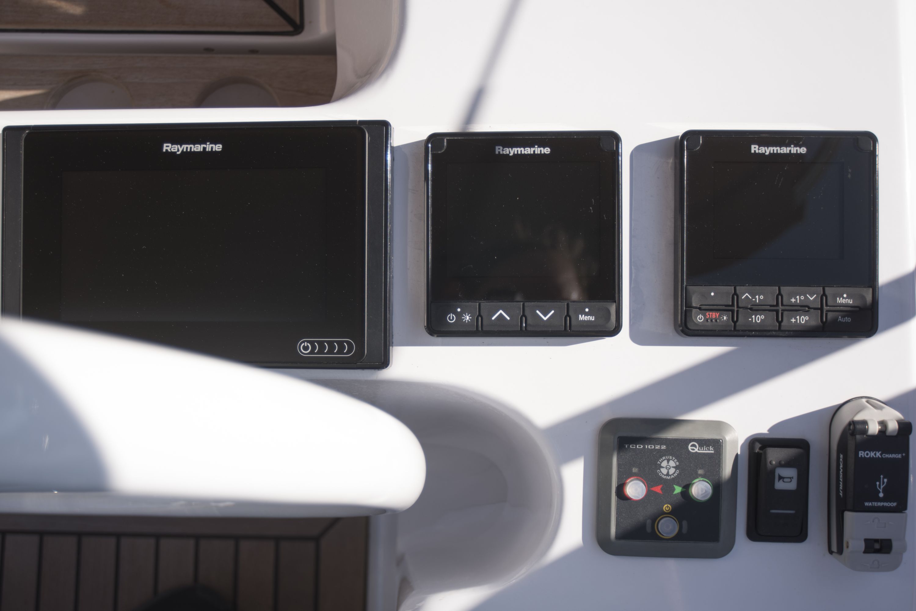 Navigation Barometer, Echolot, elektr. Seekarten, Fernglas, GPS mit Kartenplotter, GPS mit Kartenplotter auf Flybridge, Hafenhandbücher, Handpeilkompass, Kompass, Seekarten, Sumlog, Windmesser