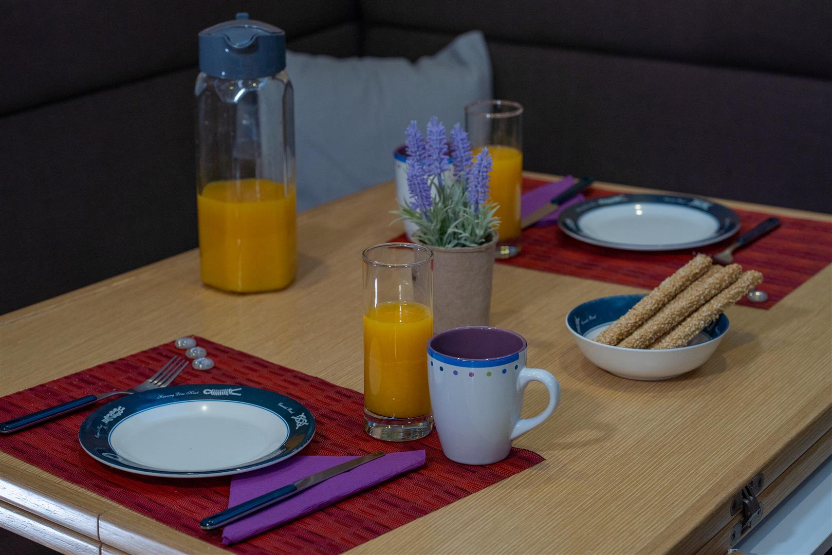 | Inside | Gasherd, Inverter 12V/220V, Kaffeemaschine, Kühlschrank, Pantryausstattung, Radio mit CD und USB, Trichter |