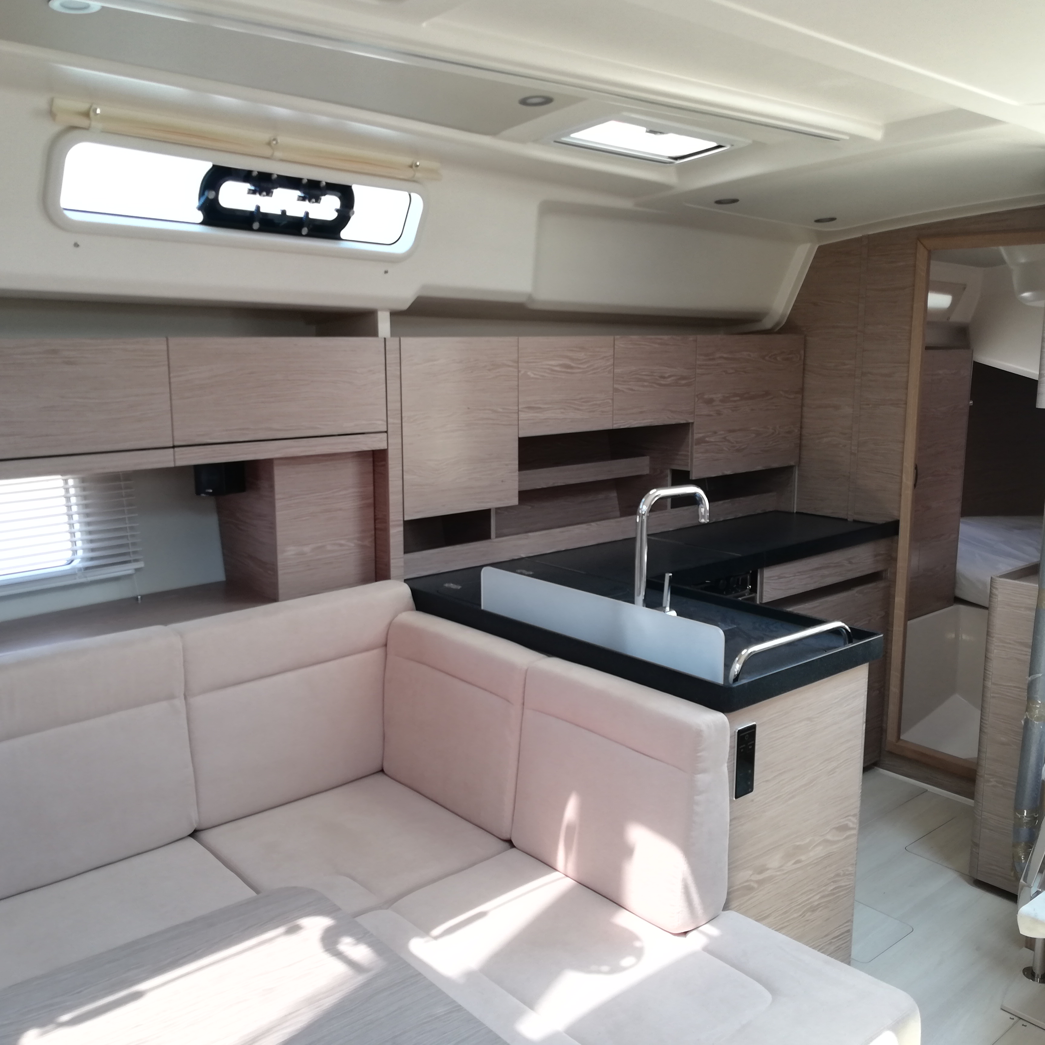 | Outside | 220 V-Landanschluss, Badeplattform, Cockpitdusche, Cockpitlautsprecher, elektr. Ankerwinsch, Solaranlage, Teak im Cockpit |