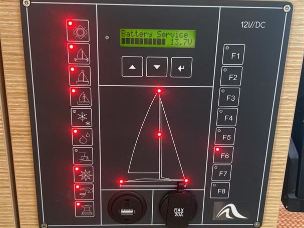 | Outside | Badeplattform, Biminitop, Cockpitlautsprecher, Cockpitpolster, Schnorchelausrüstung, Solaranlage, Sprayhood, Teak im Cockpit |