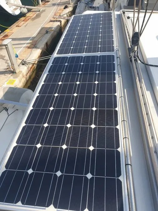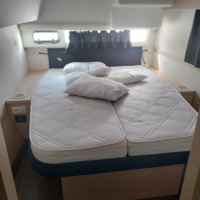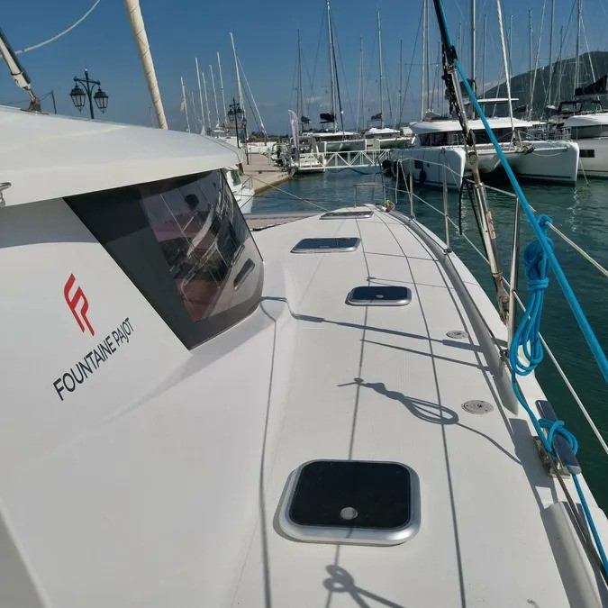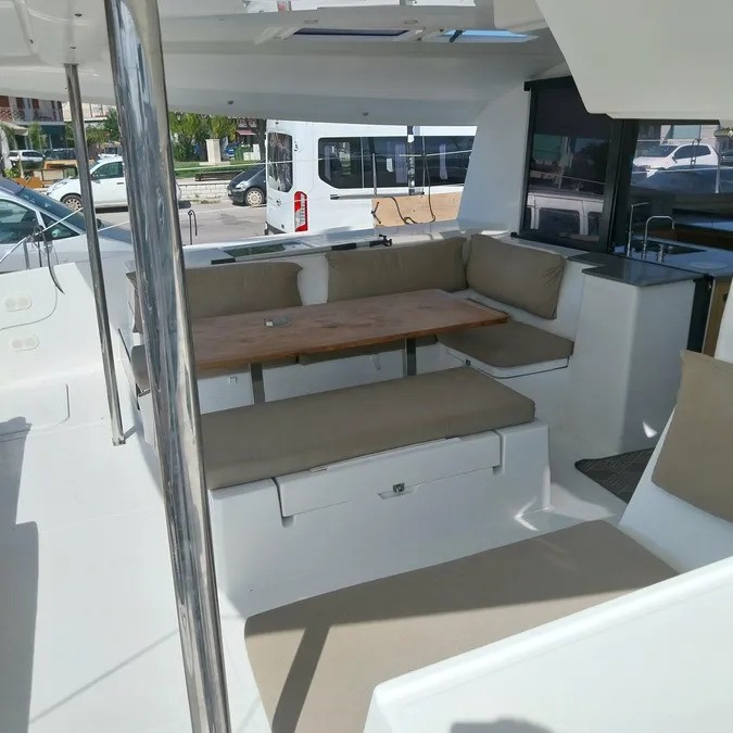 | Outside | Badeleiter, Biminitop, Cockpitdusche, Cockpitlautsprecher, Cockpitpolster, Davits, Deckpolster, elektr. Winsch, Fender, Gangway, Solaranlage, Sonnensegel, Tenderlift, Unterwasserbeleuchtung |