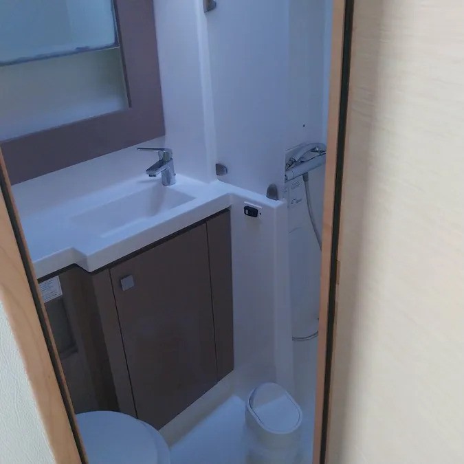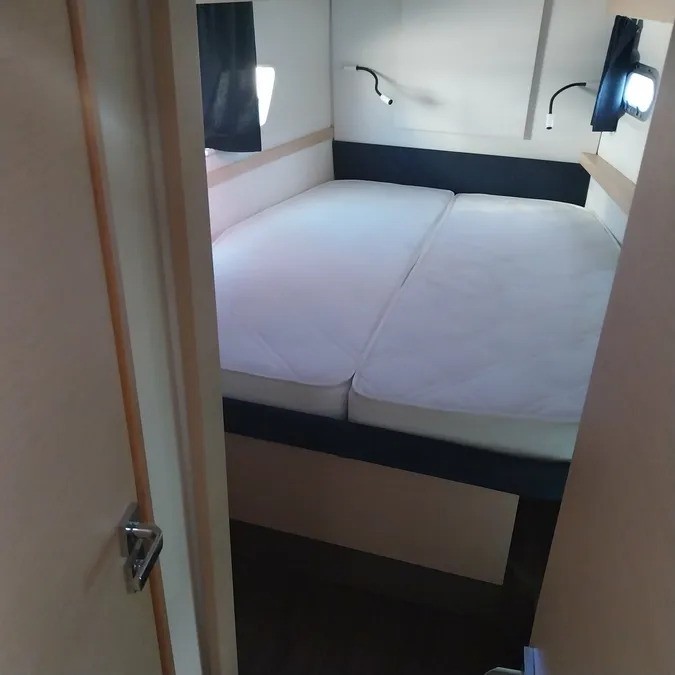 | Inside | Elektrische Filterkaffeemaschine, Fäkalientank, Frischwasserpumpe, Gasherd mit Backofen, Generator, Inverter 12V/220V, Kaffeemaschine, Klimaanlage (ohne Landstrombedarf), Kühlschrank, Ladegerät, Lautsprecher im Salon, Pantryausstattung, Radio mit MP3 , Salontisch absenkbar, Ventilator, Warmwasser, Wasserkocher, Watermaker, WC (elektr.) |