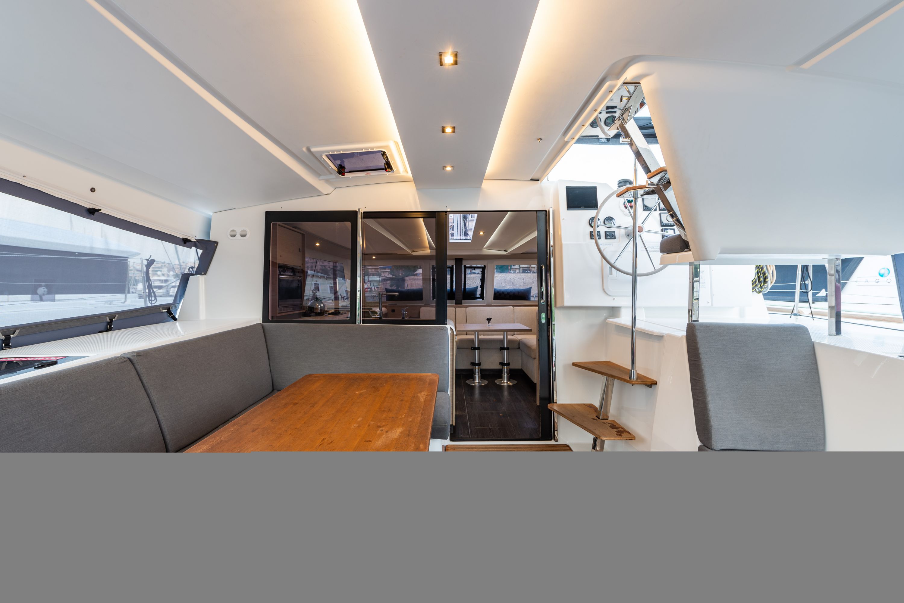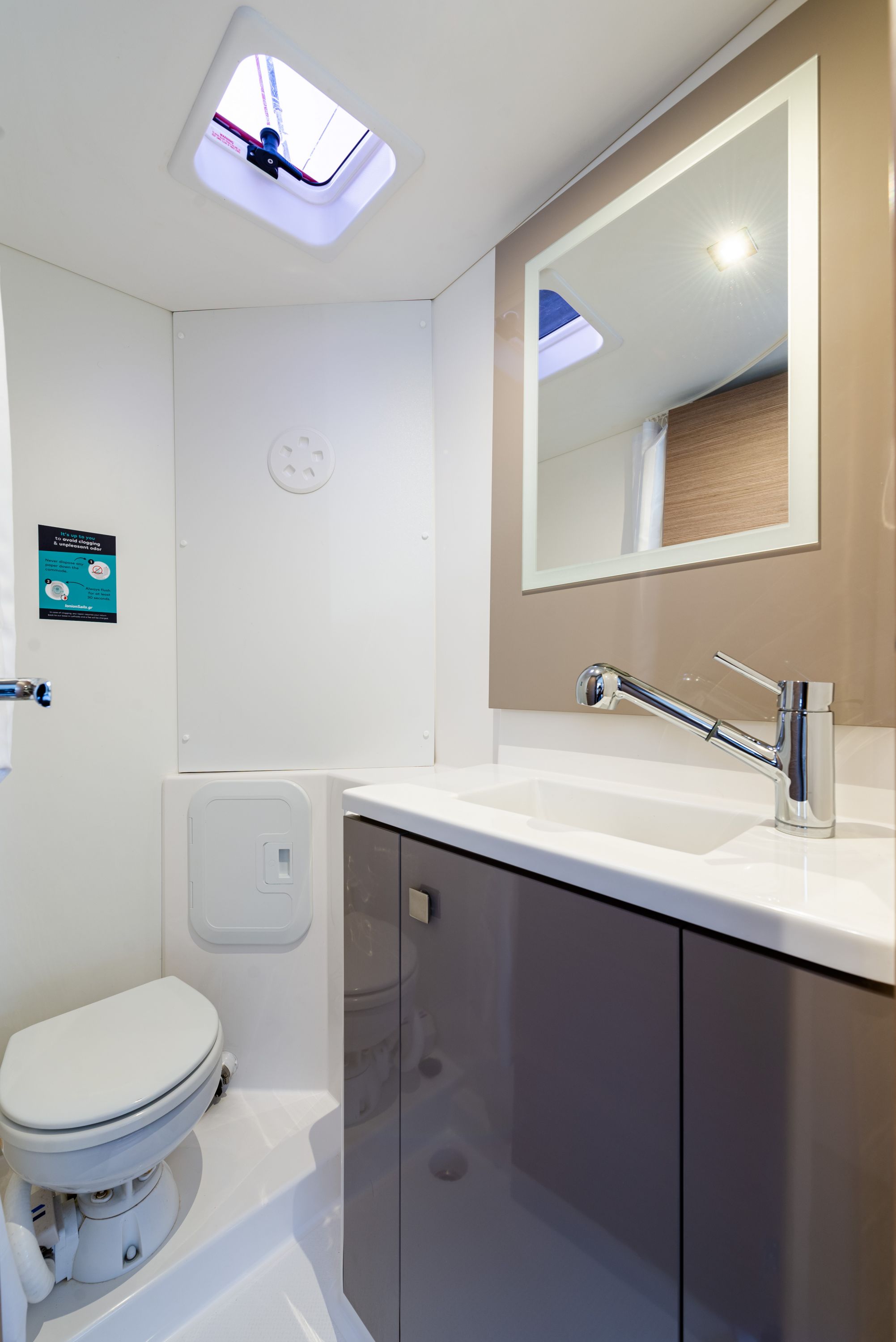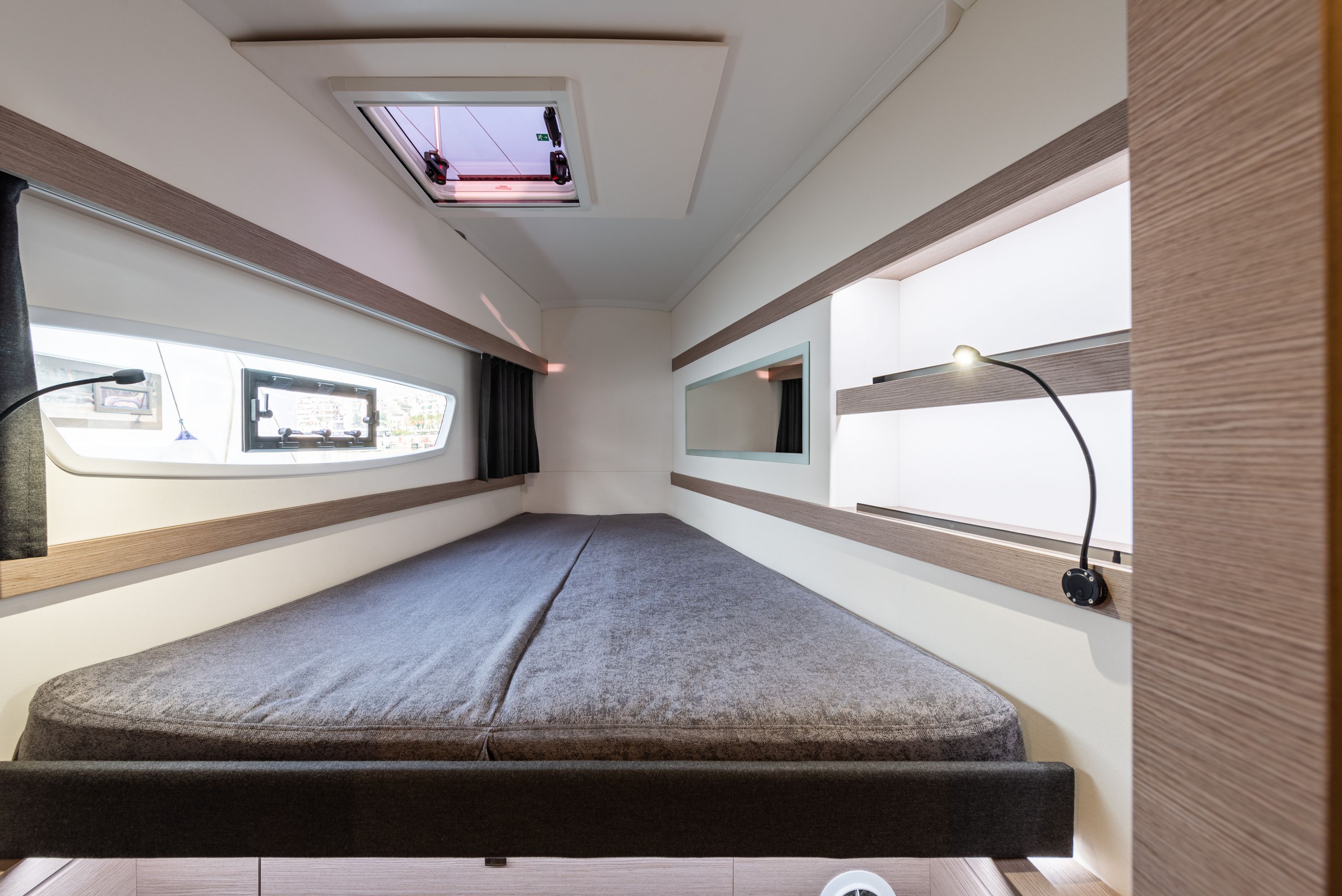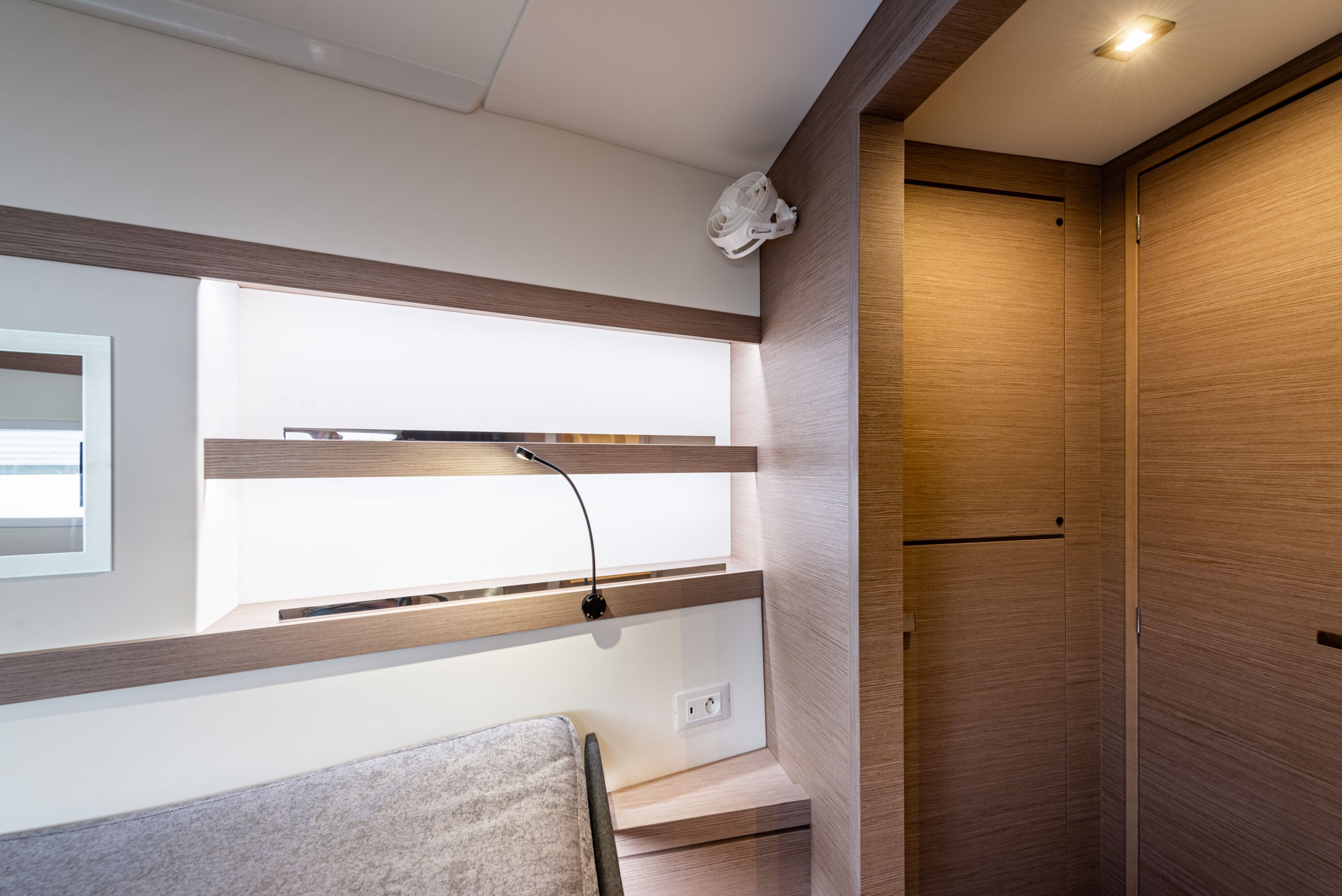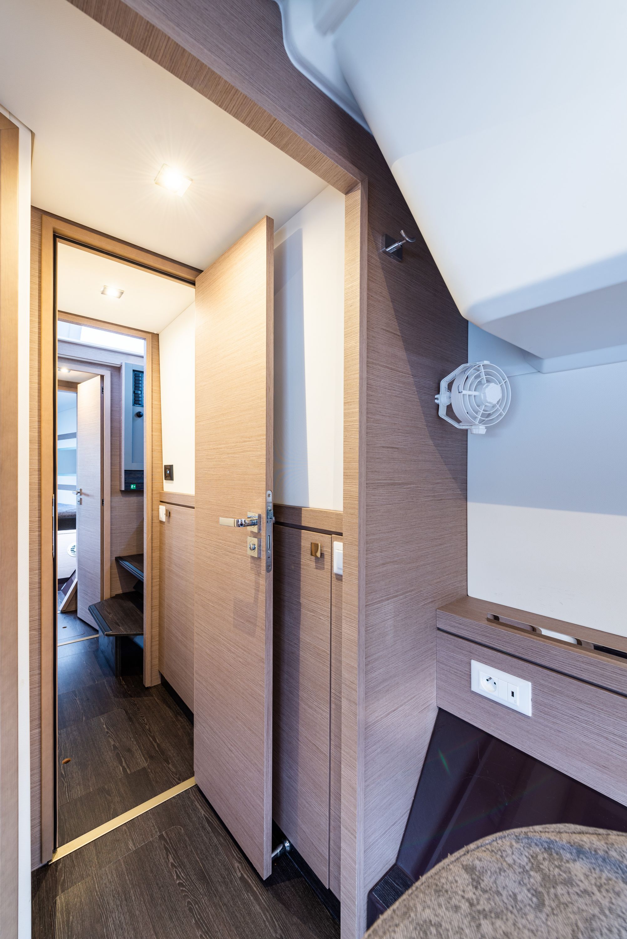 | Inside | 220V Steckdosen, Borduhr, Fäkalientank, Gasherd, Generator, Klimaanlage (ohne Landstrombedarf), Kühlschrank, Pantryausstattung, Radio mit CD, Salontisch absenkbar, USB Steckdosen in den Kabinen, Ventilatoren in Kabinen, Warmwasser, Watermaker, WC (elektr.) |