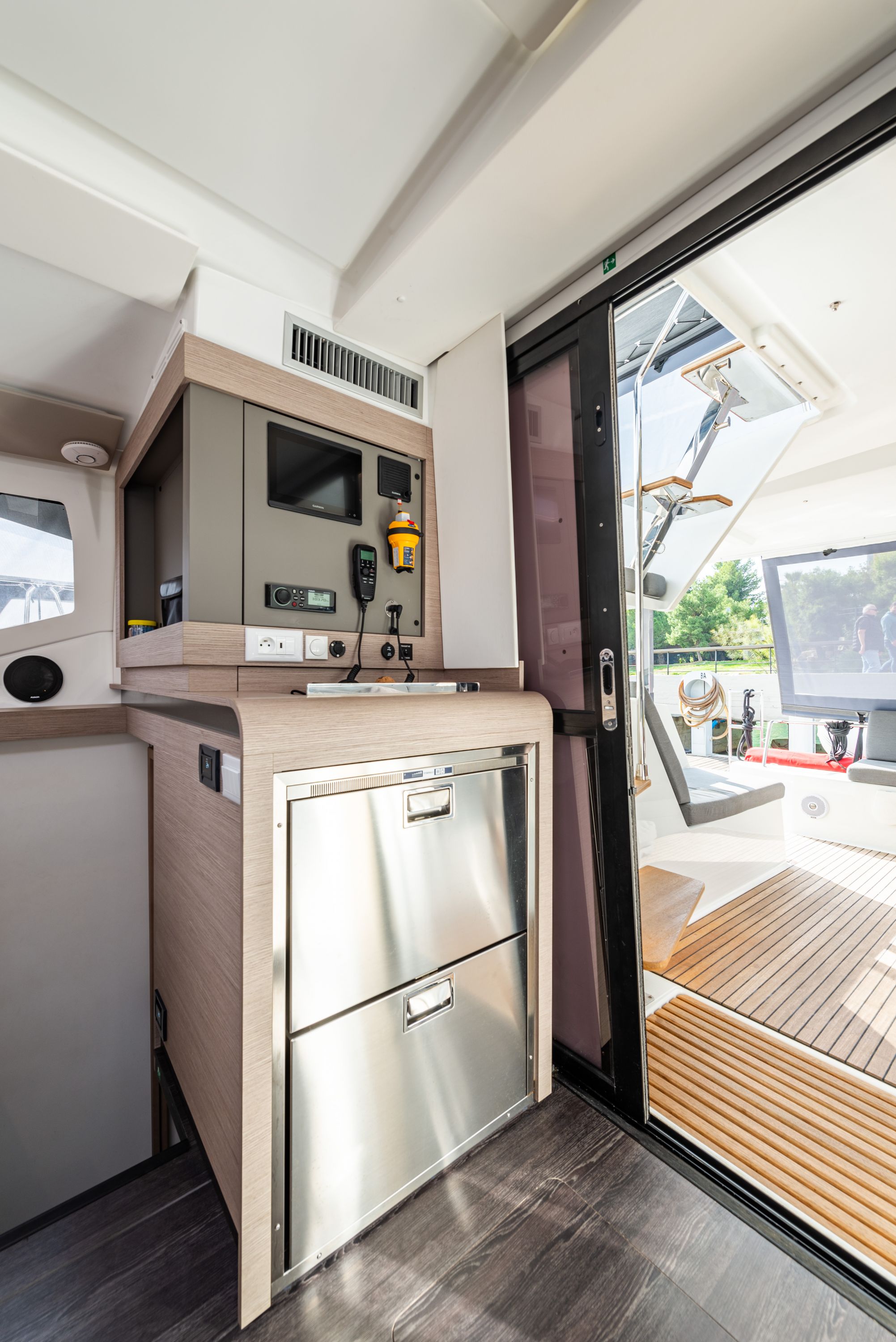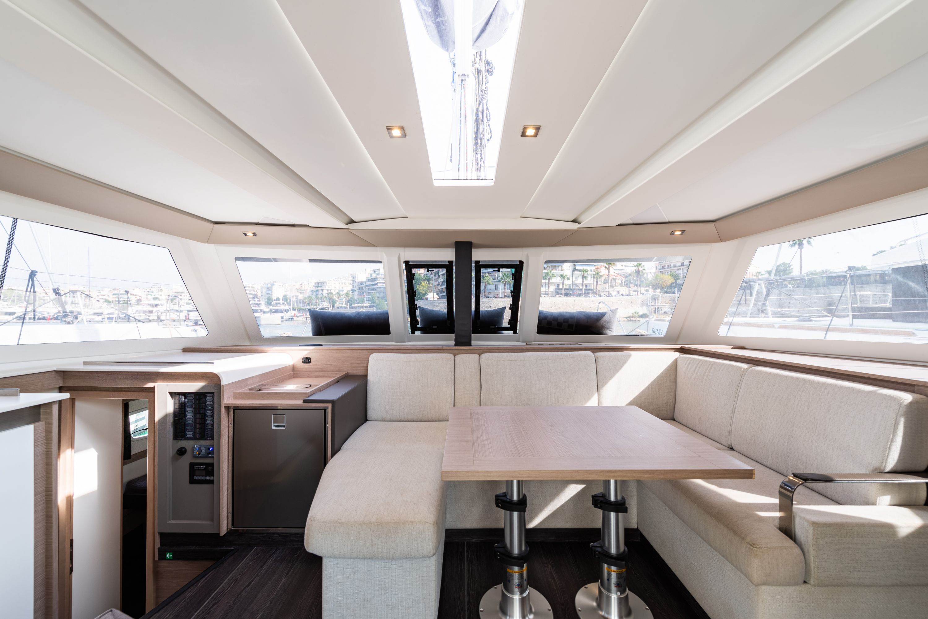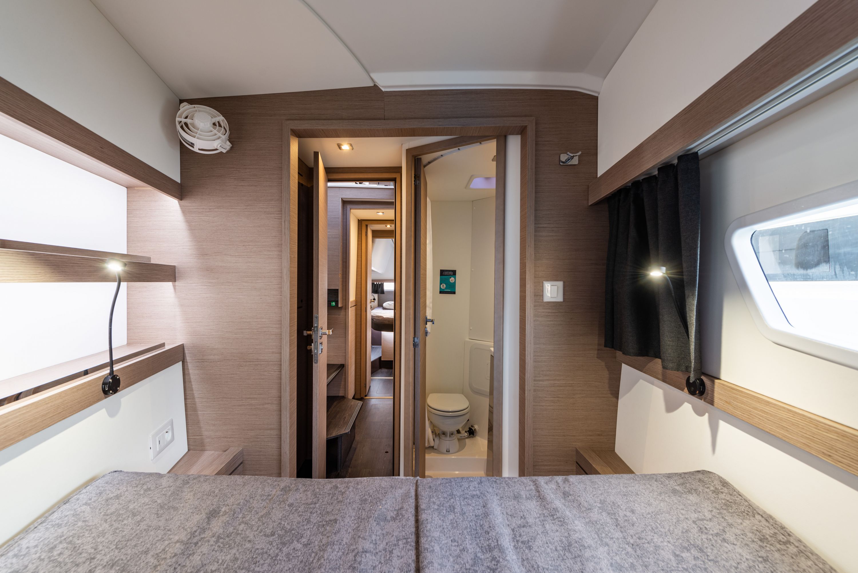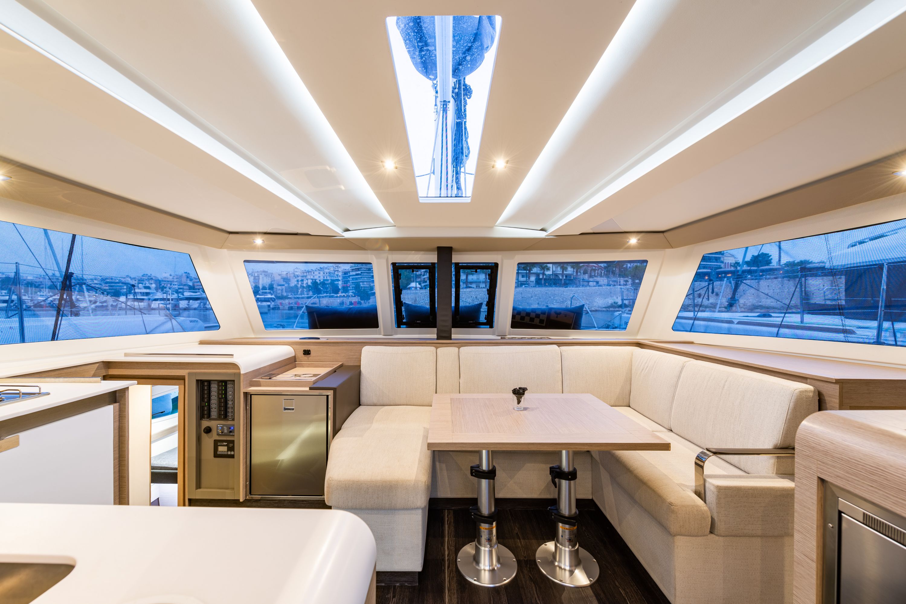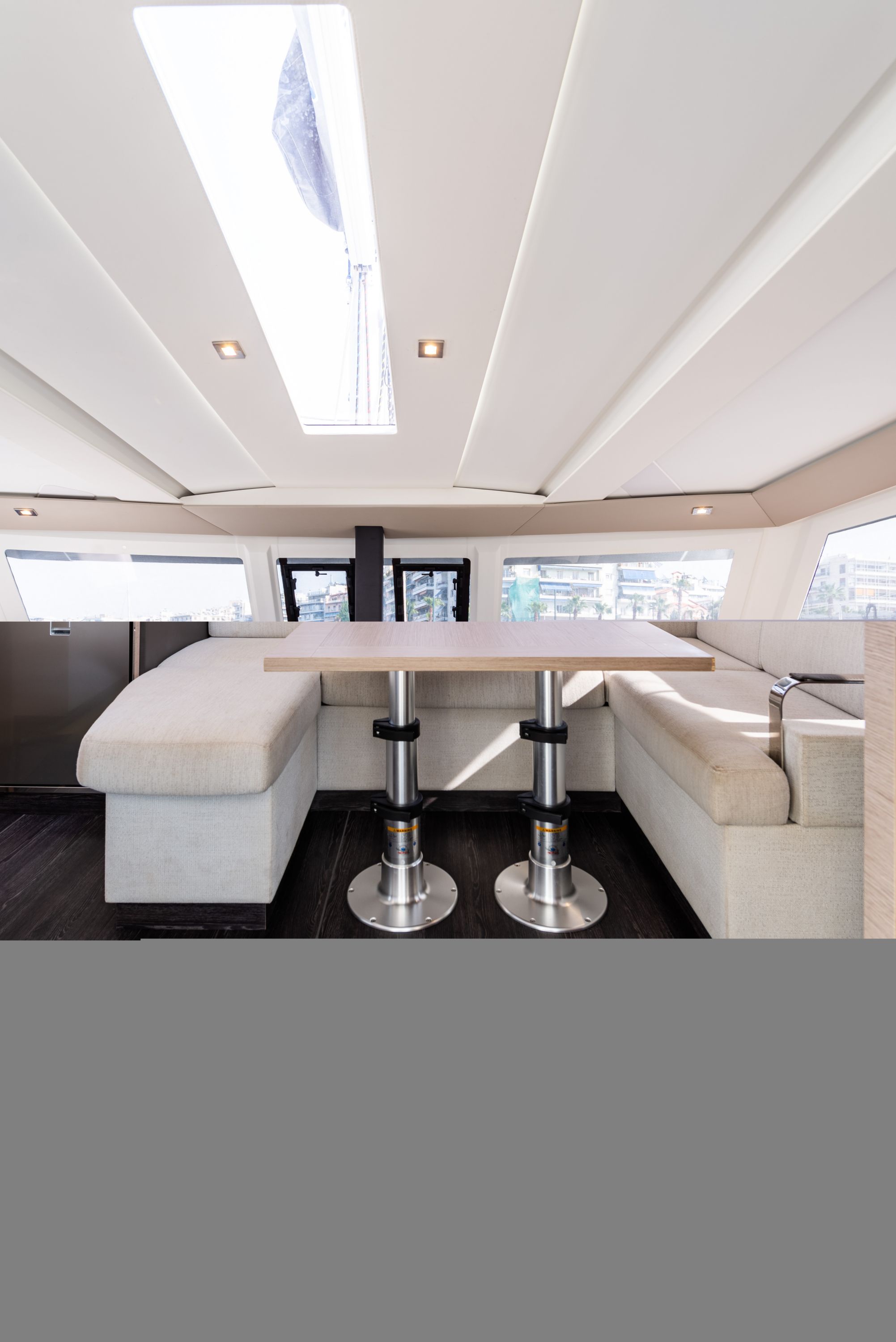 | Inside | 220V Steckdosen, Borduhr, Fäkalientank, Gasherd, Generator, Klimaanlage (ohne Landstrombedarf), Kühlschrank, Pantryausstattung, Radio mit CD, Salontisch absenkbar, USB Steckdosen in den Kabinen, Ventilatoren in Kabinen, Warmwasser, Watermaker, WC (elektr.) |