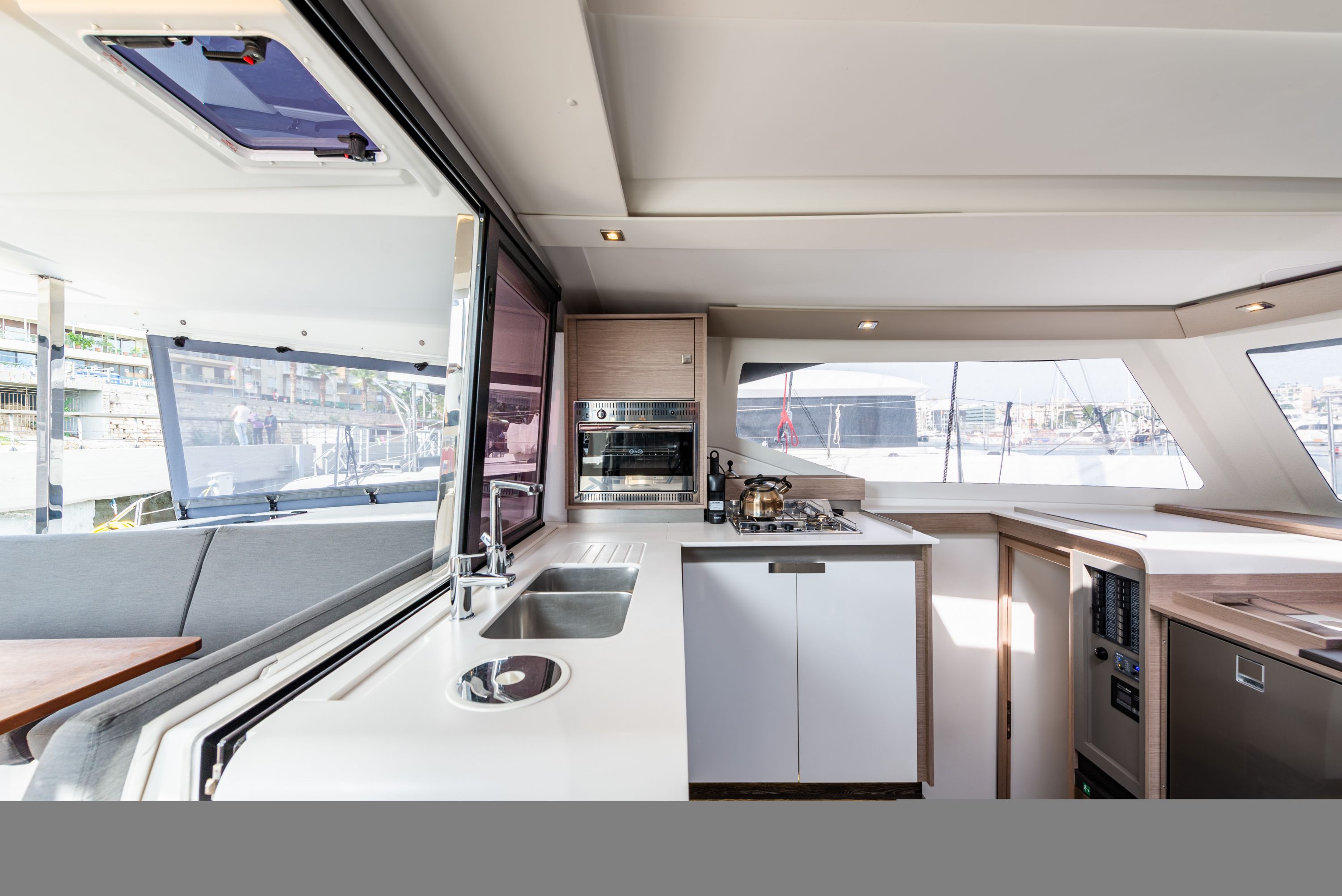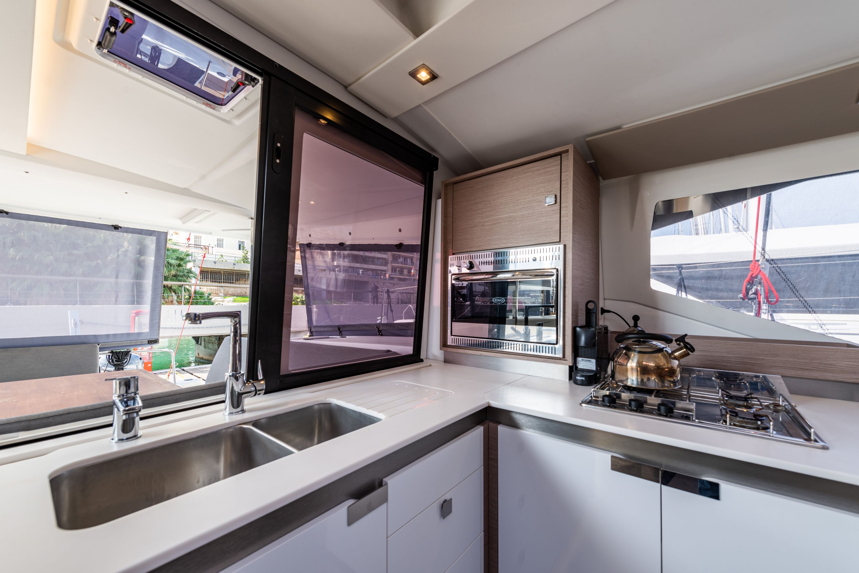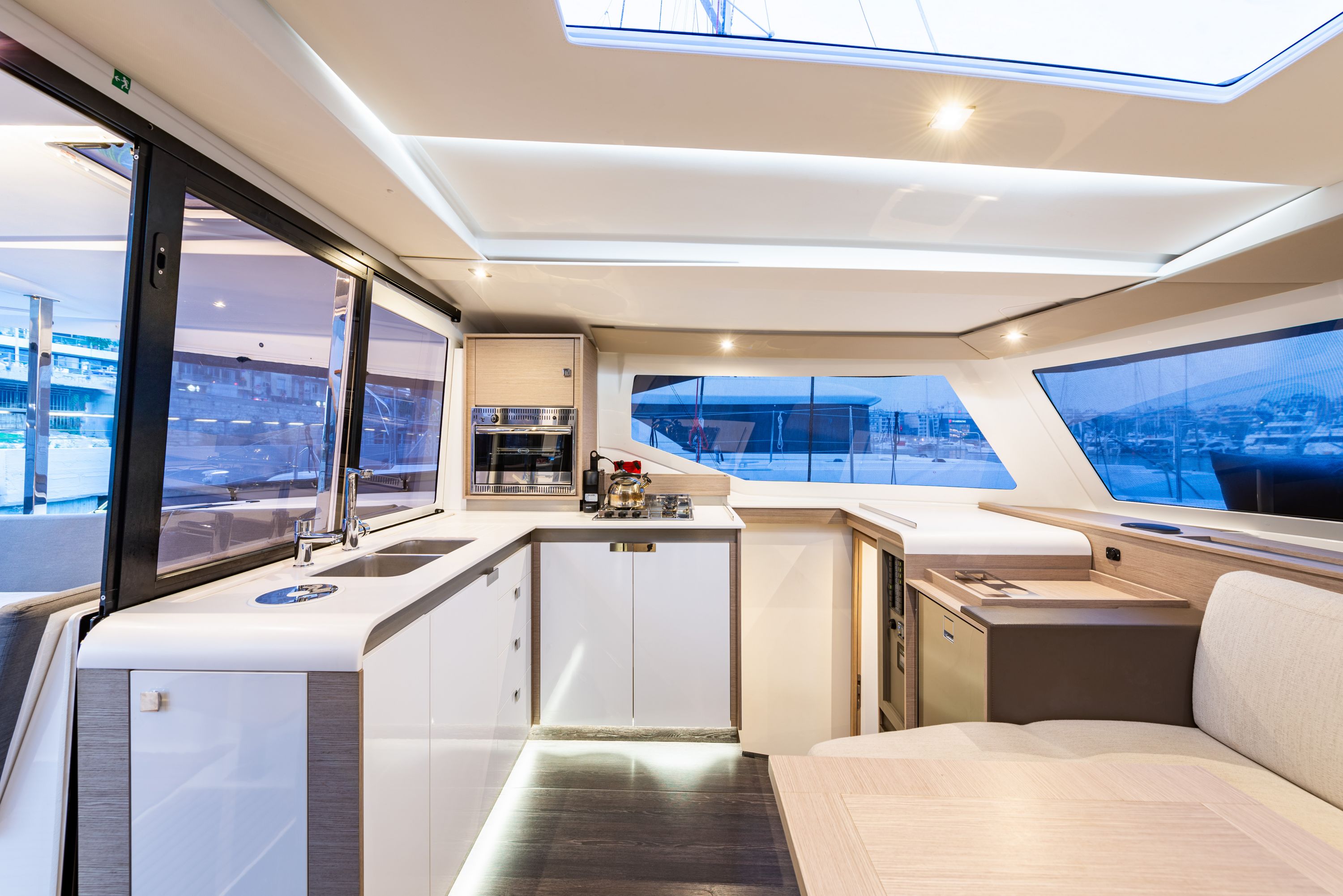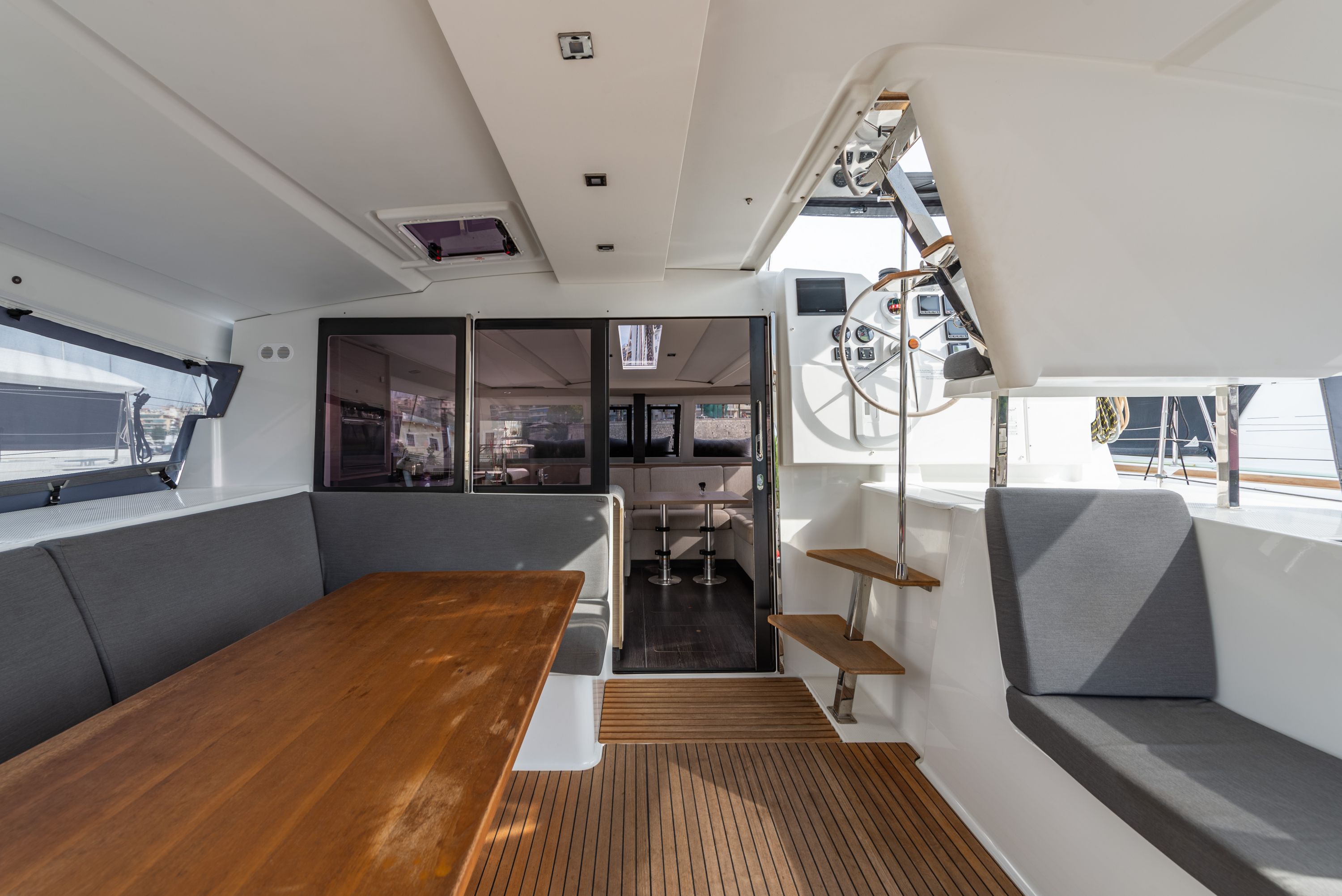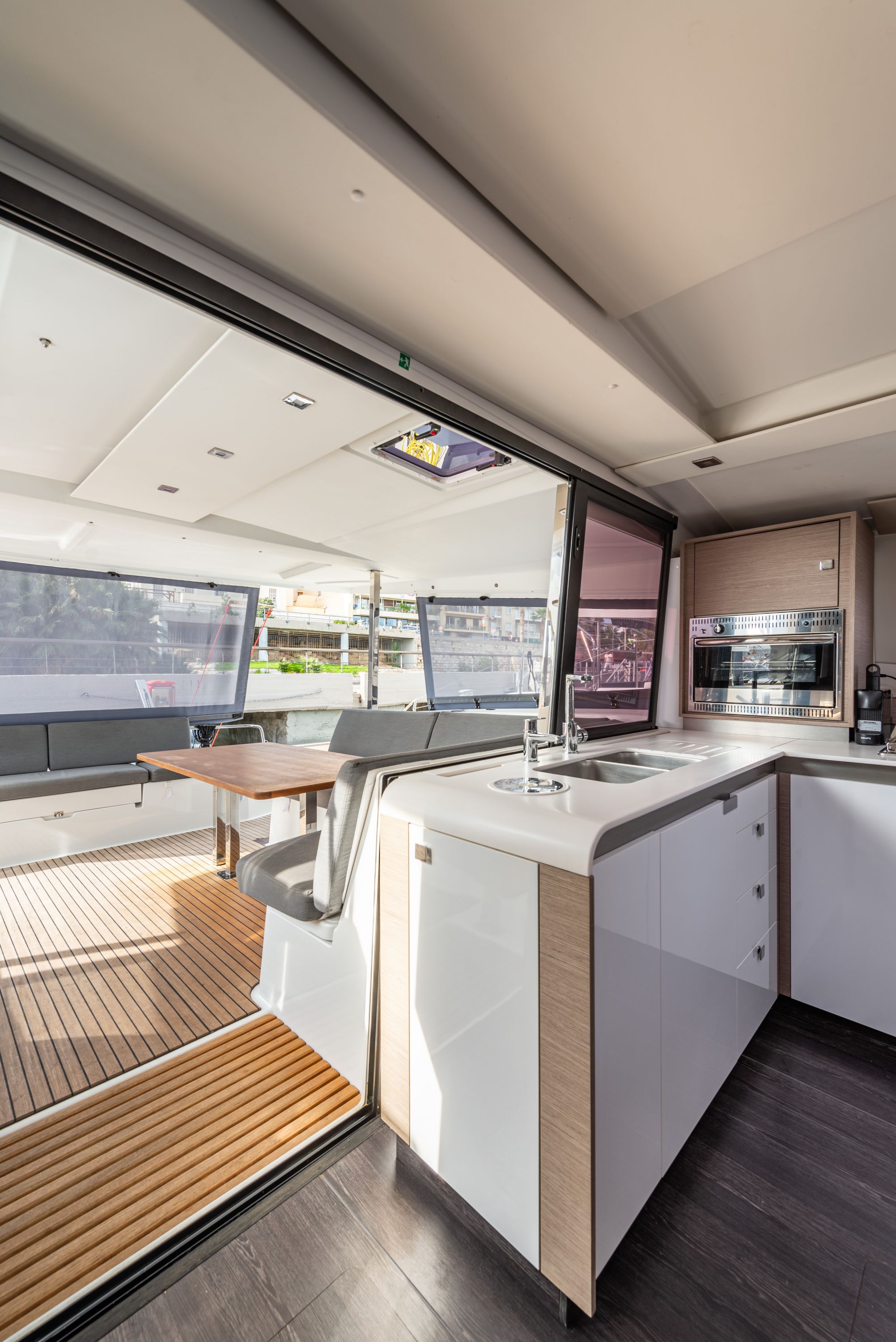 | Inside | 220V Steckdosen, Borduhr, Fäkalientank, Gasherd, Generator, Klimaanlage (ohne Landstrombedarf), Kühlschrank, Pantryausstattung, Radio mit CD, Salontisch absenkbar, USB Steckdosen in den Kabinen, Ventilatoren in Kabinen, Warmwasser, Watermaker, WC (elektr.) |