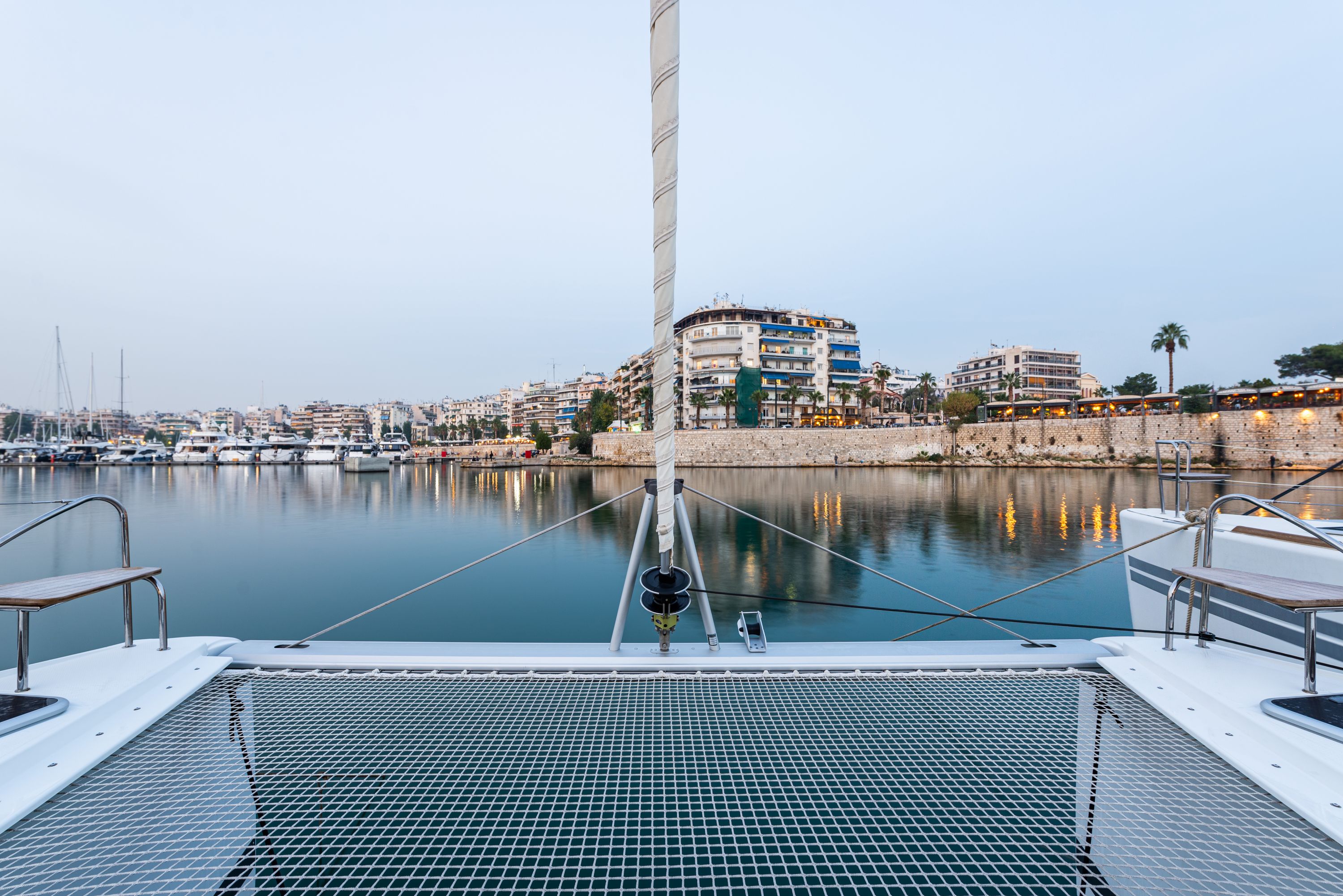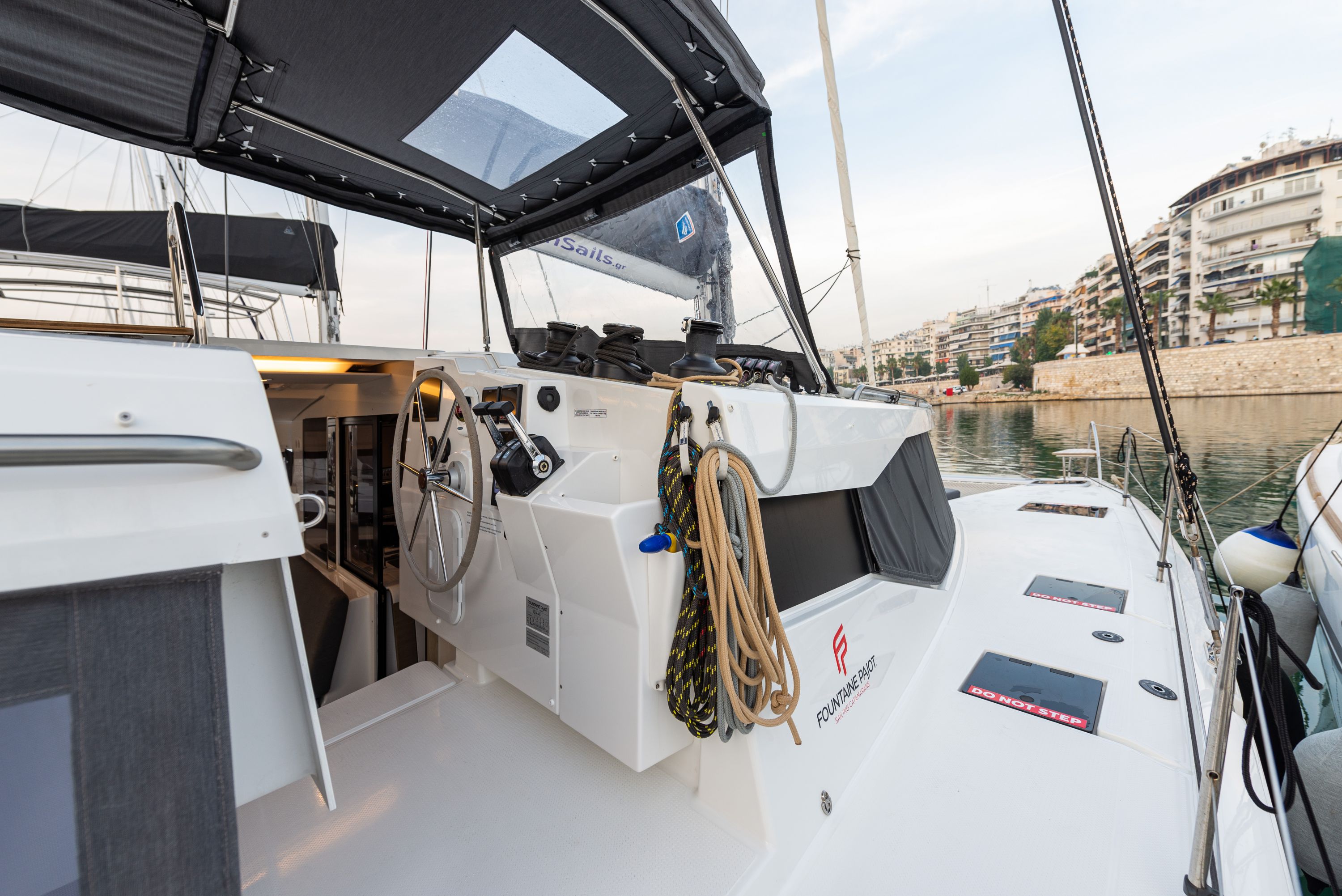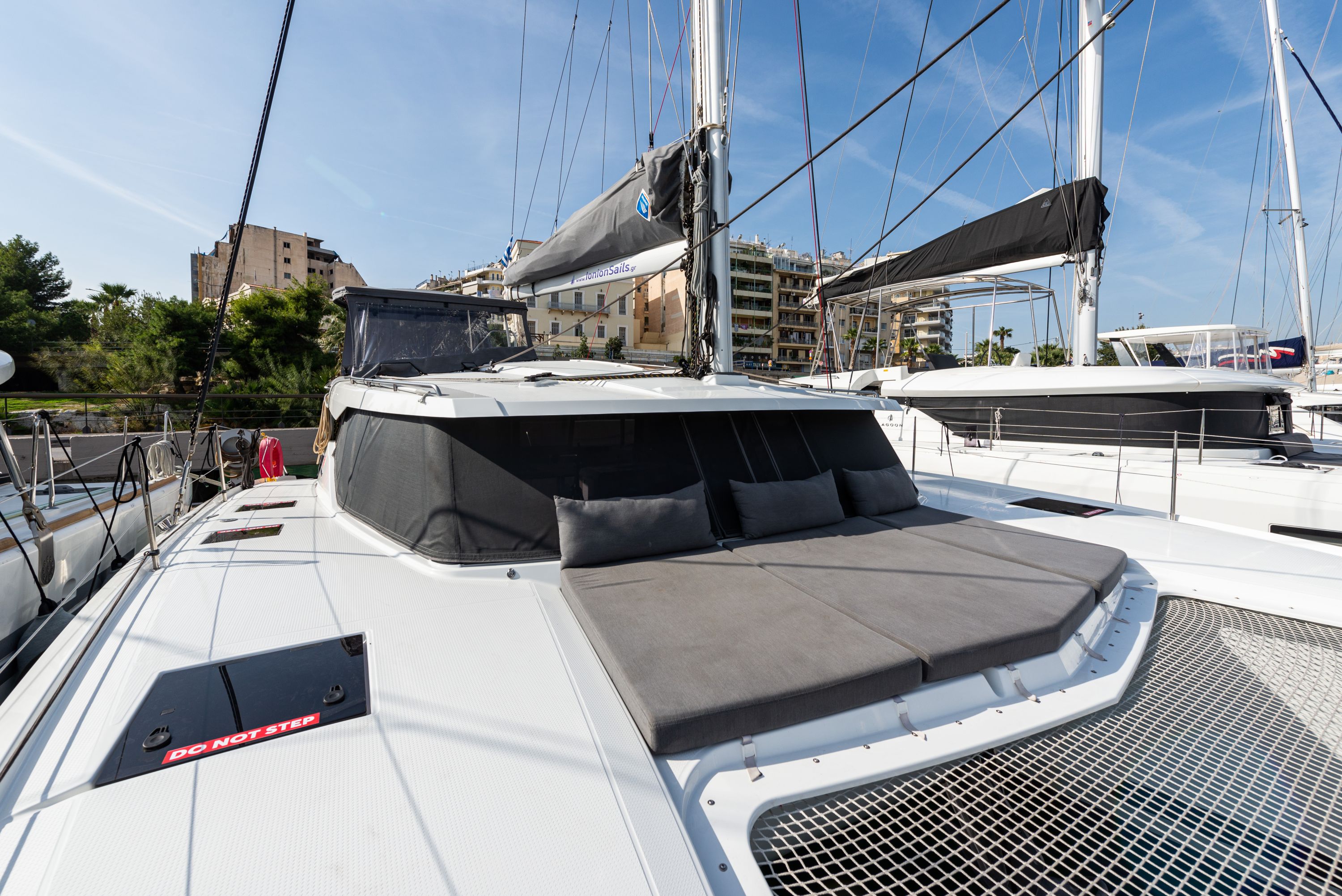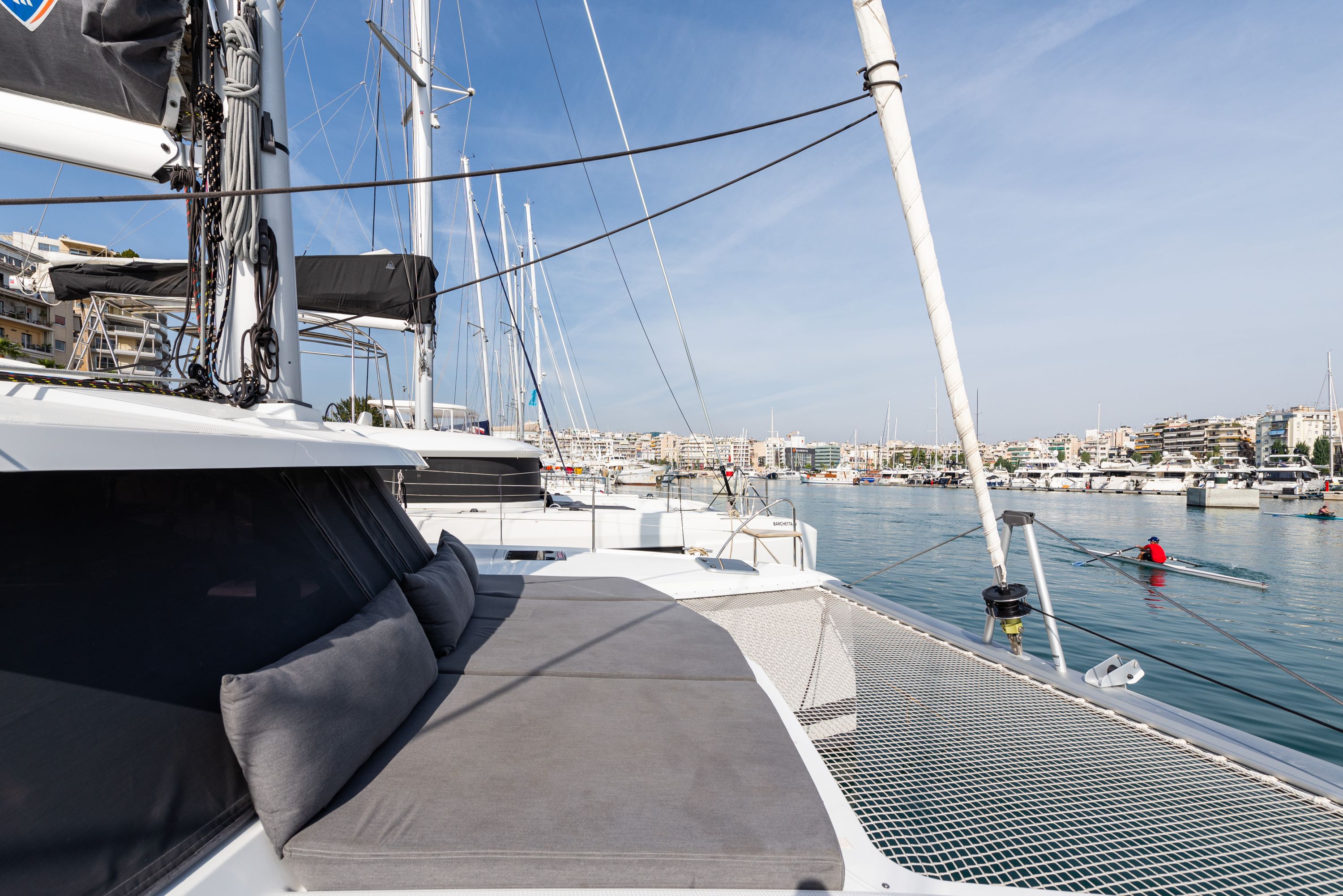 | Outside | Badeleiter, Biminitop, Cockpitdusche, Cockpitpolster, Cockpittisch, Deckpolster, elektr. Ankerwinsch, elektr. Winsch, Schnorchelausrüstung, Segel-Flickwerkzeug, Solaranlage, Sonnendeck, Sprayhood, Teak im Cockpit, Treibanker, Windex |