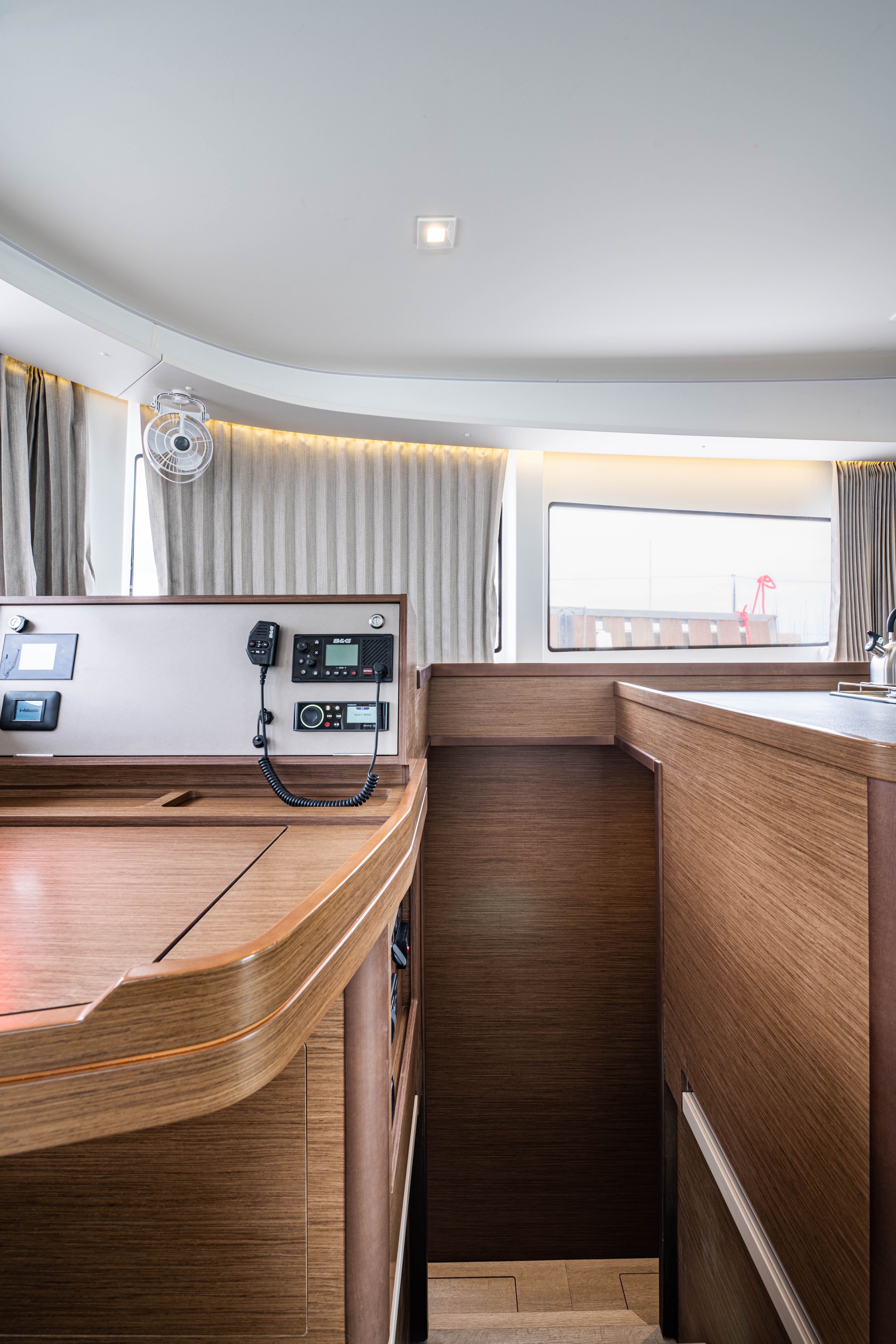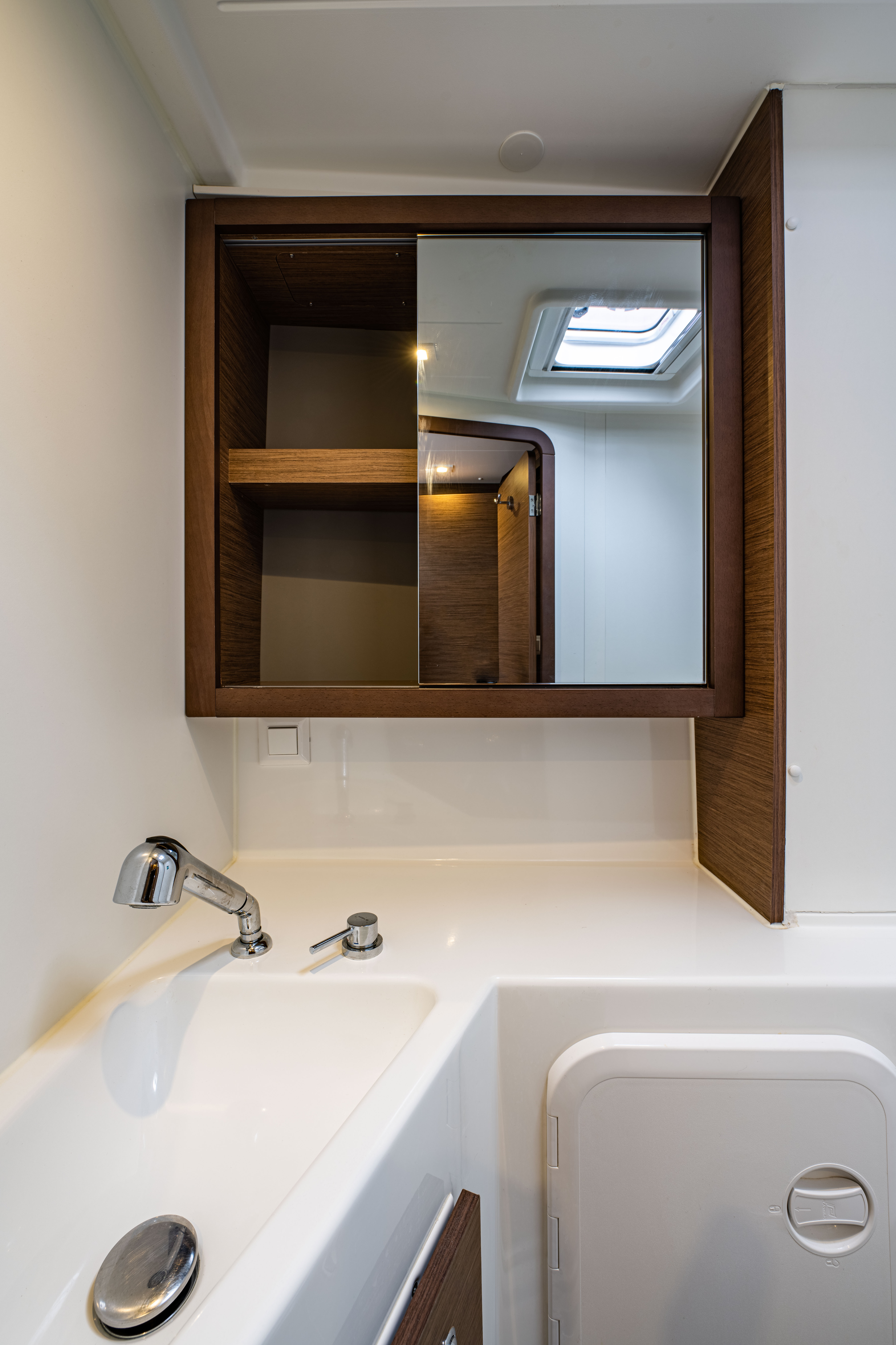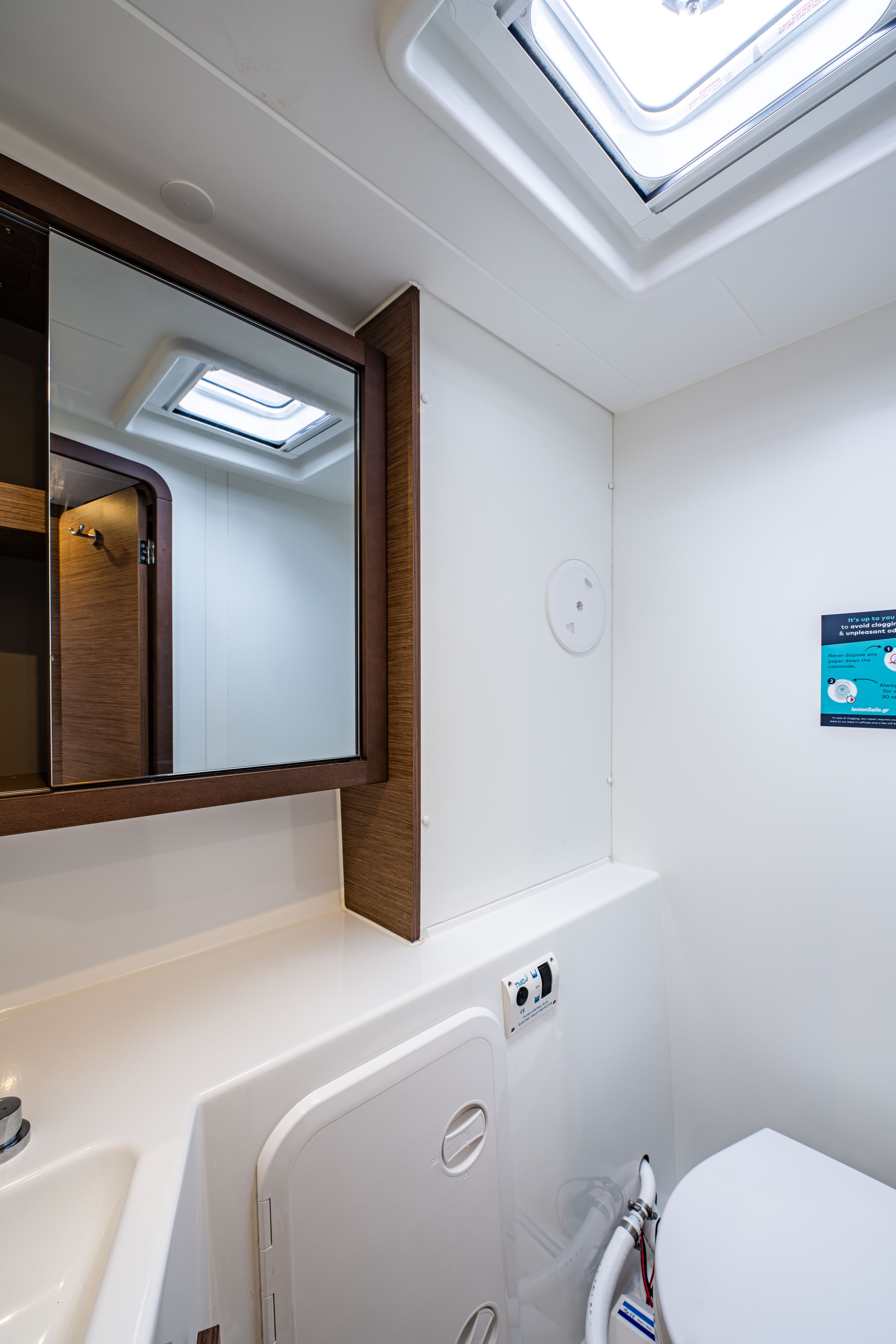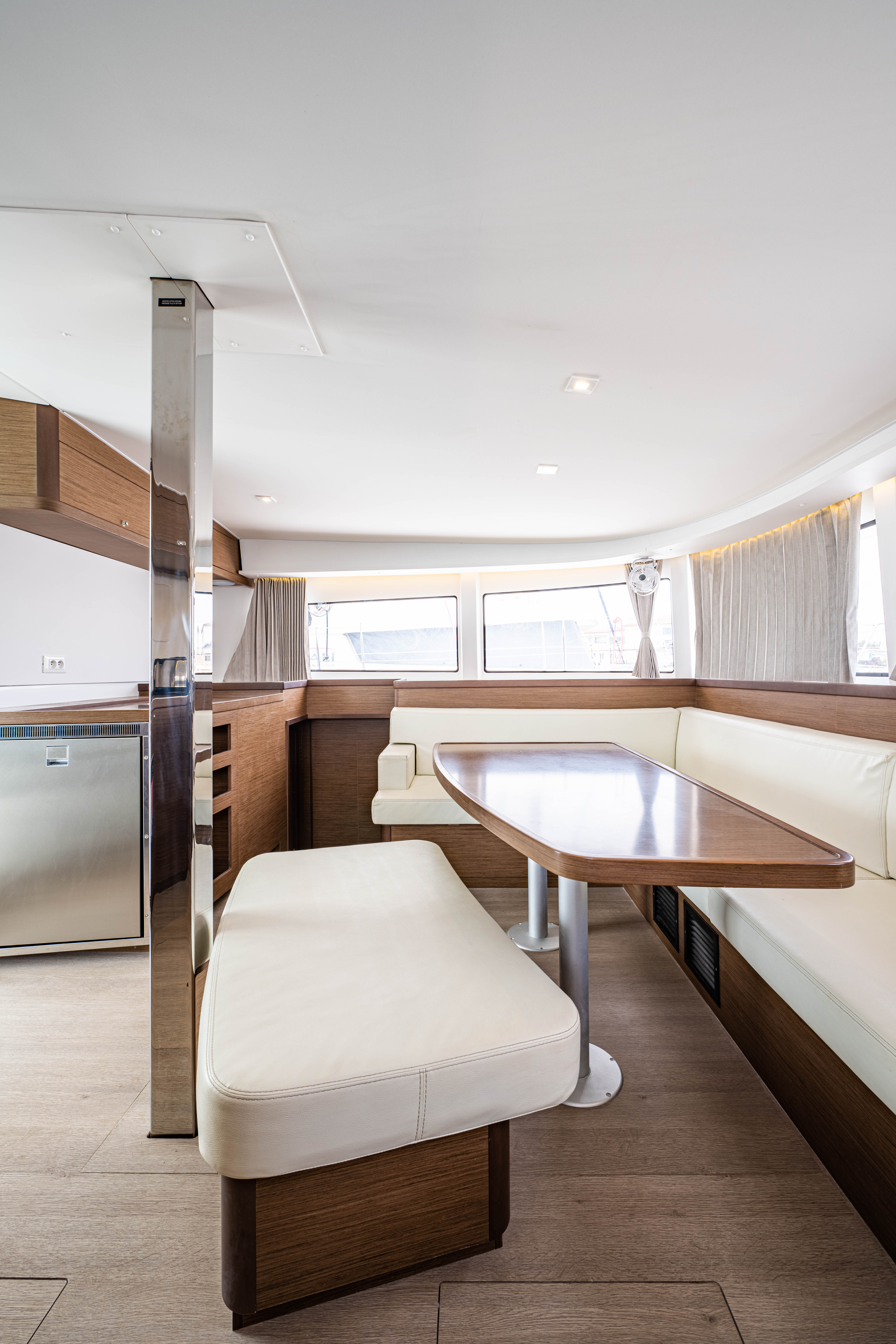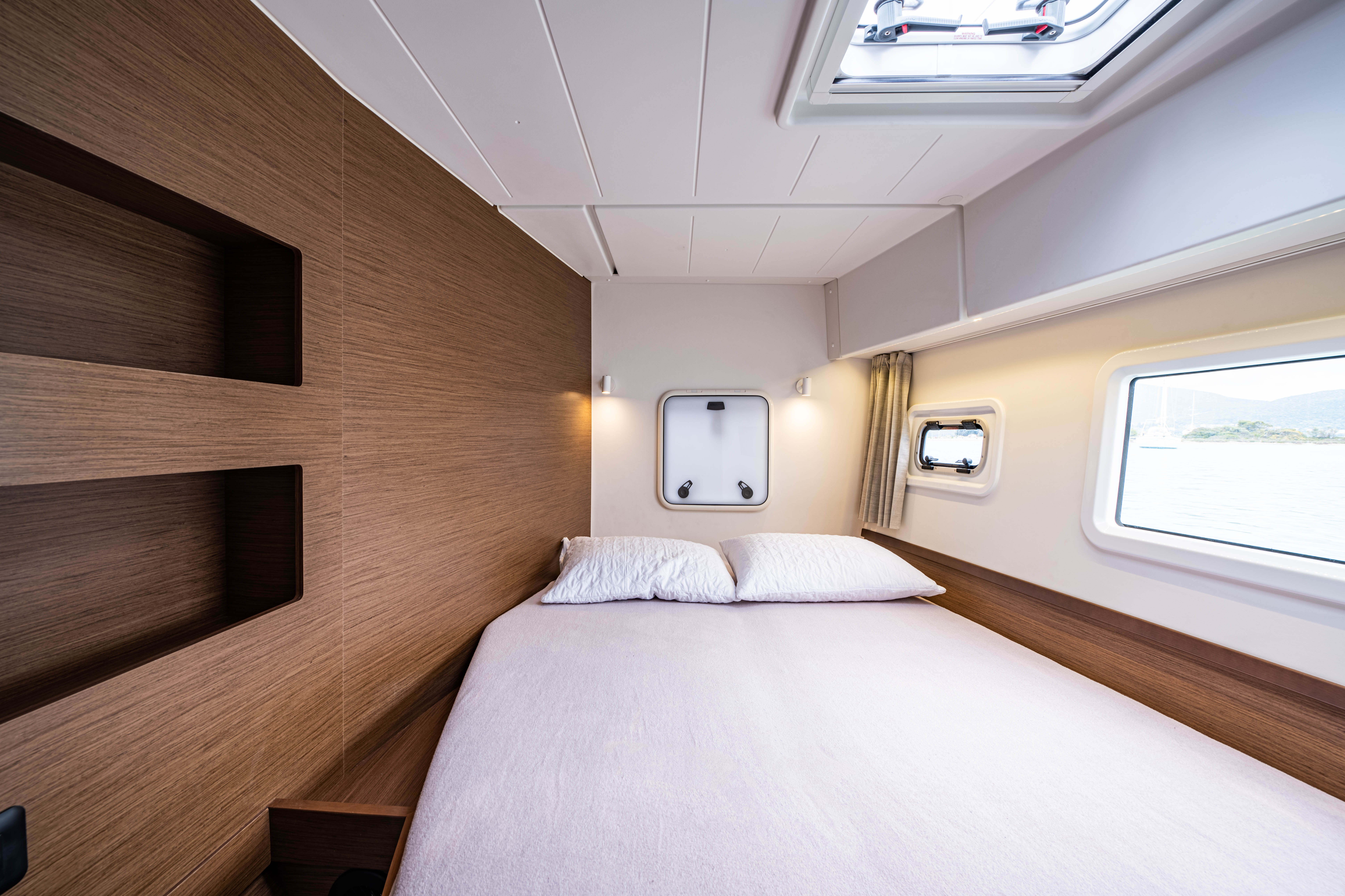 | Inside | 12V Steckdose, 220V Steckdosen, Borduhr, Fäkalientank, Gasherd, Gefrierschrank, Generator, Klimaanlage, Klimaanlage (ohne Landstrombedarf), Kühlschrank, Lautsprecher im Salon, Pantryausstattung, Radio mit CD, Salontisch absenkbar, USB Steckdosen in den Kabinen, Ventilatoren in Kabinen, Warmwasser, WC (elektr.) |