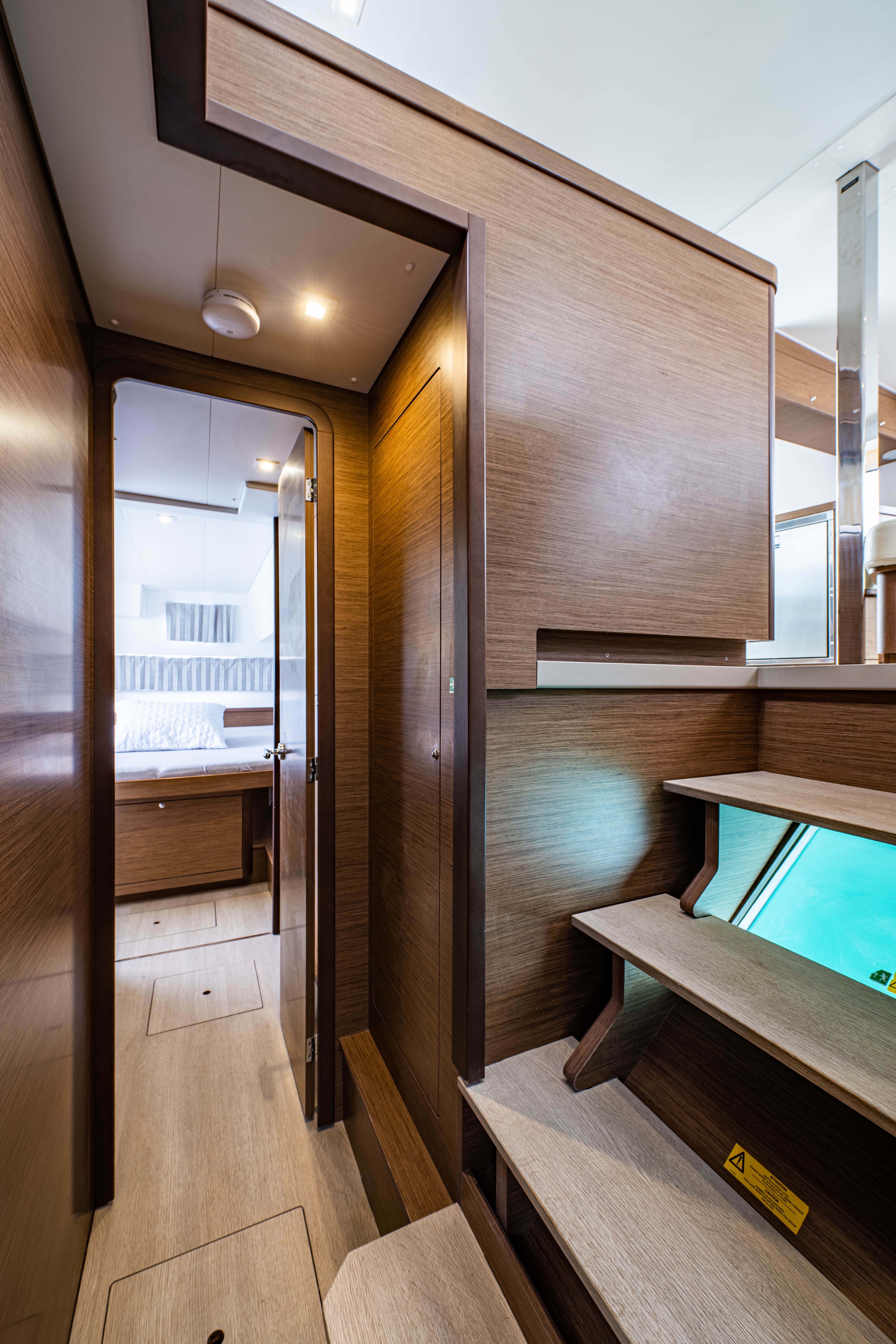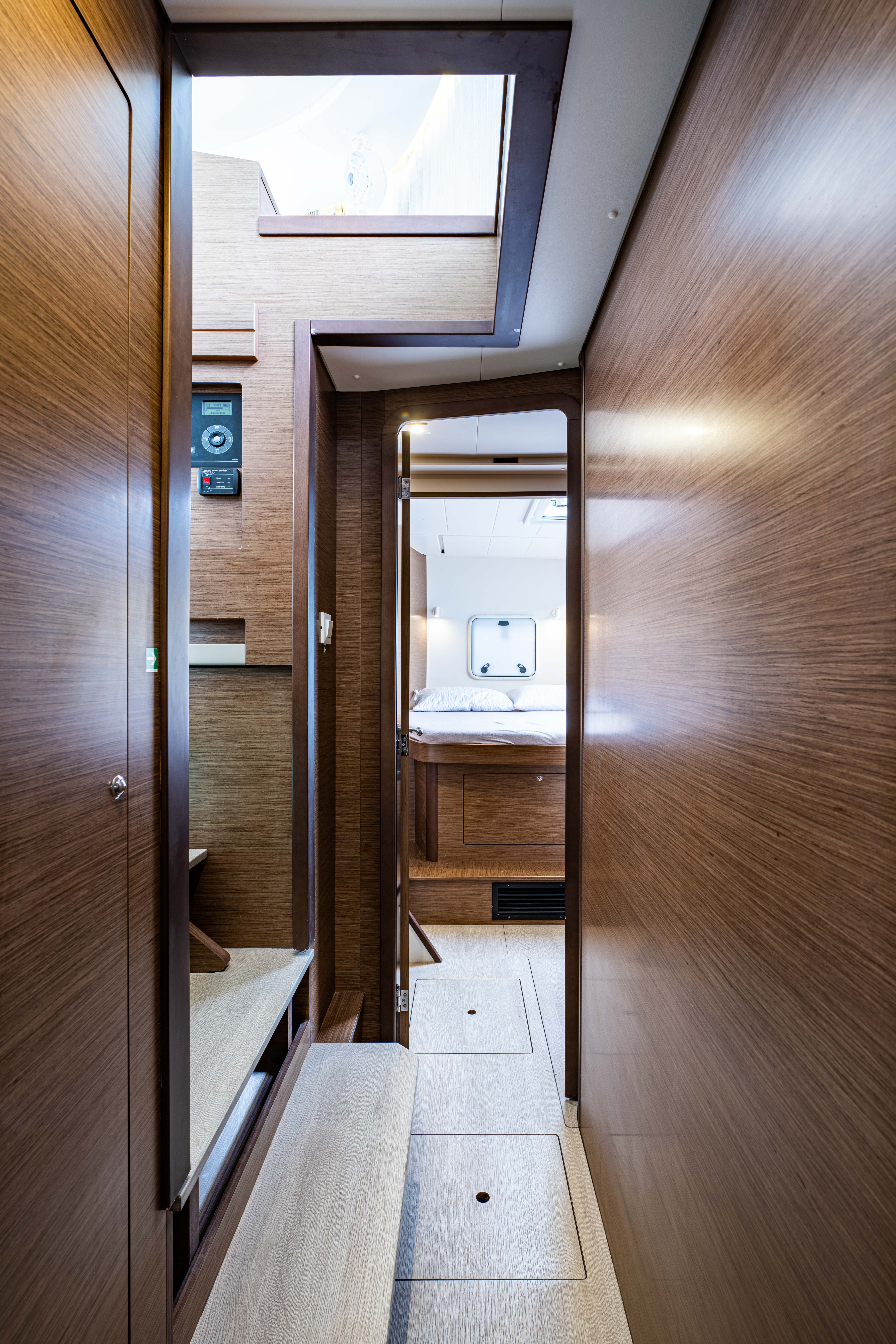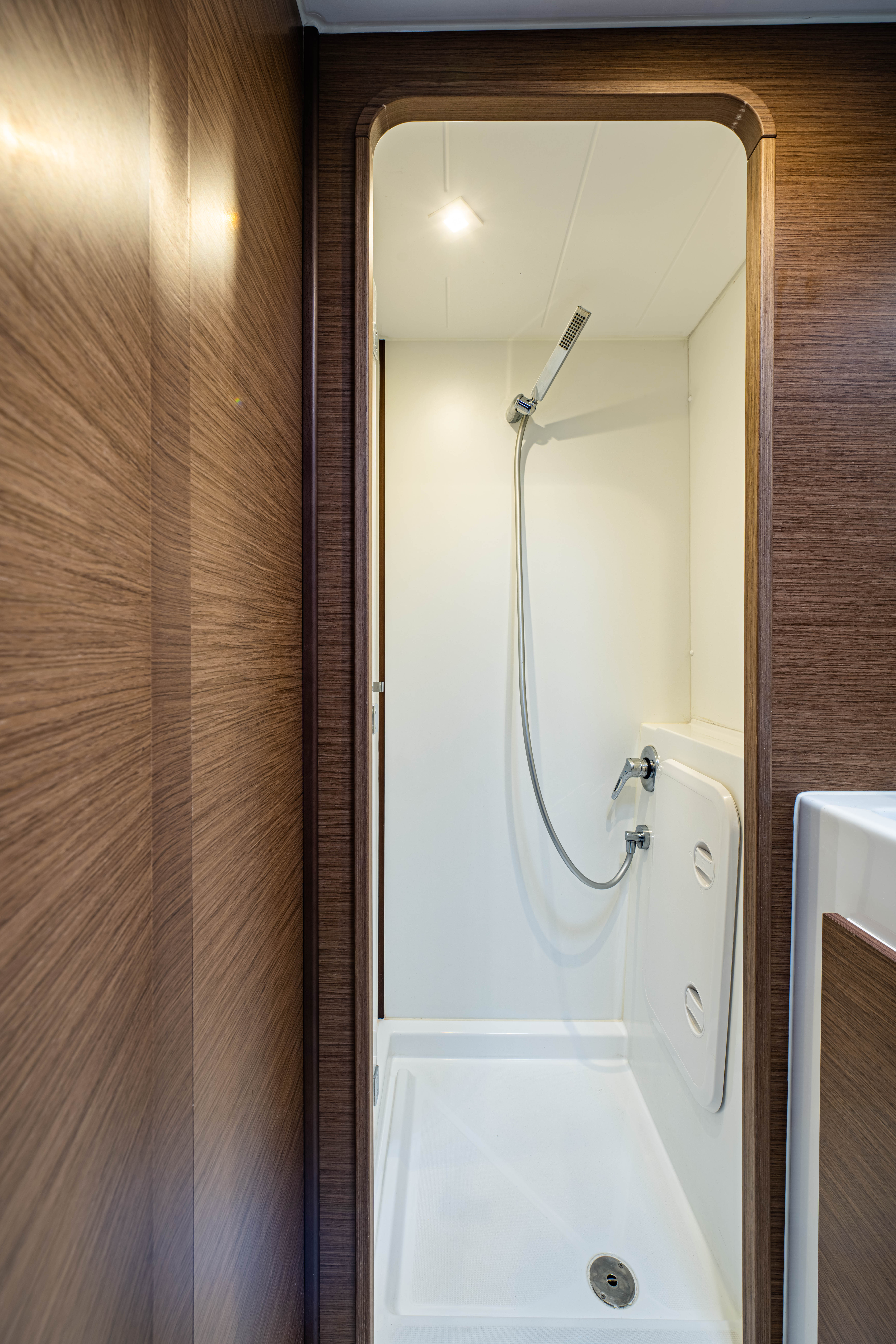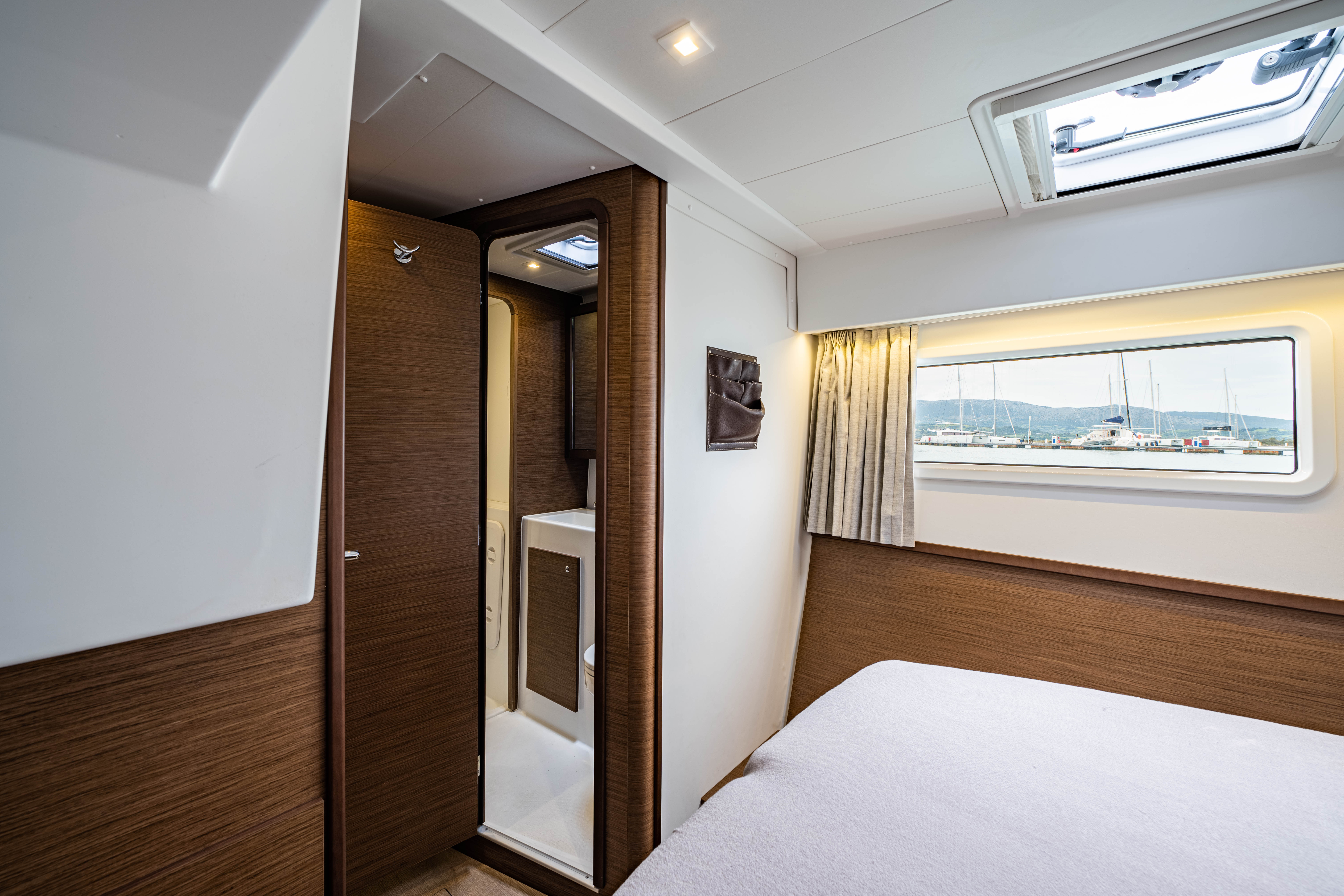 | Inside | 12V Steckdose, 220V Steckdosen, Borduhr, Fäkalientank, Gasherd, Gefrierschrank, Generator, Klimaanlage, Klimaanlage (ohne Landstrombedarf), Kühlschrank, Lautsprecher im Salon, Pantryausstattung, Radio mit CD, Salontisch absenkbar, USB Steckdosen in den Kabinen, Ventilatoren in Kabinen, Warmwasser, WC (elektr.) |