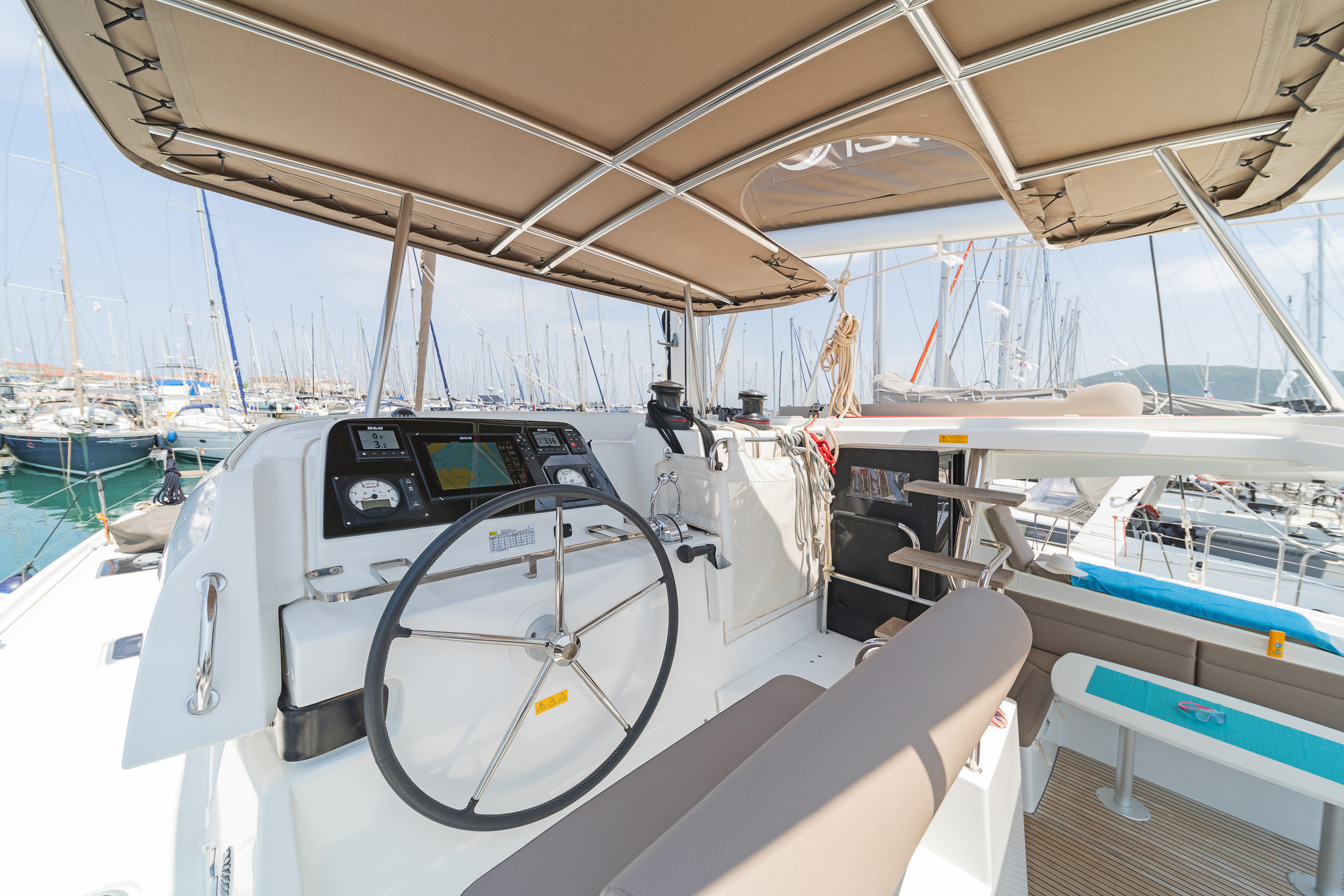 | Outside | Biminitop, Cockpitpolster, elektr. Winsch, Gangway, hydraul. Gangway, Solaranlage, Sprayhood |