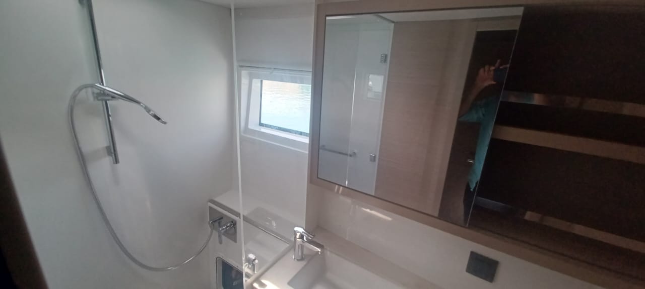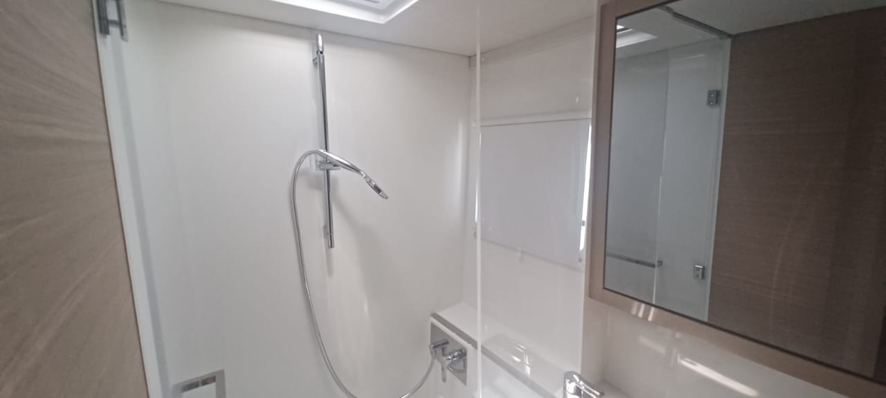 | Inside | Backofen, Fäkalientank, Gasherd, Generator, Inverter 12V/220V, Kleiderbügel, Klimaanlage (ohne Landstrombedarf), Kühlschrank, Pantryausstattung, TV, Watermaker, WC-Pumpe |