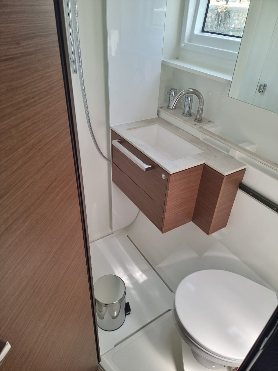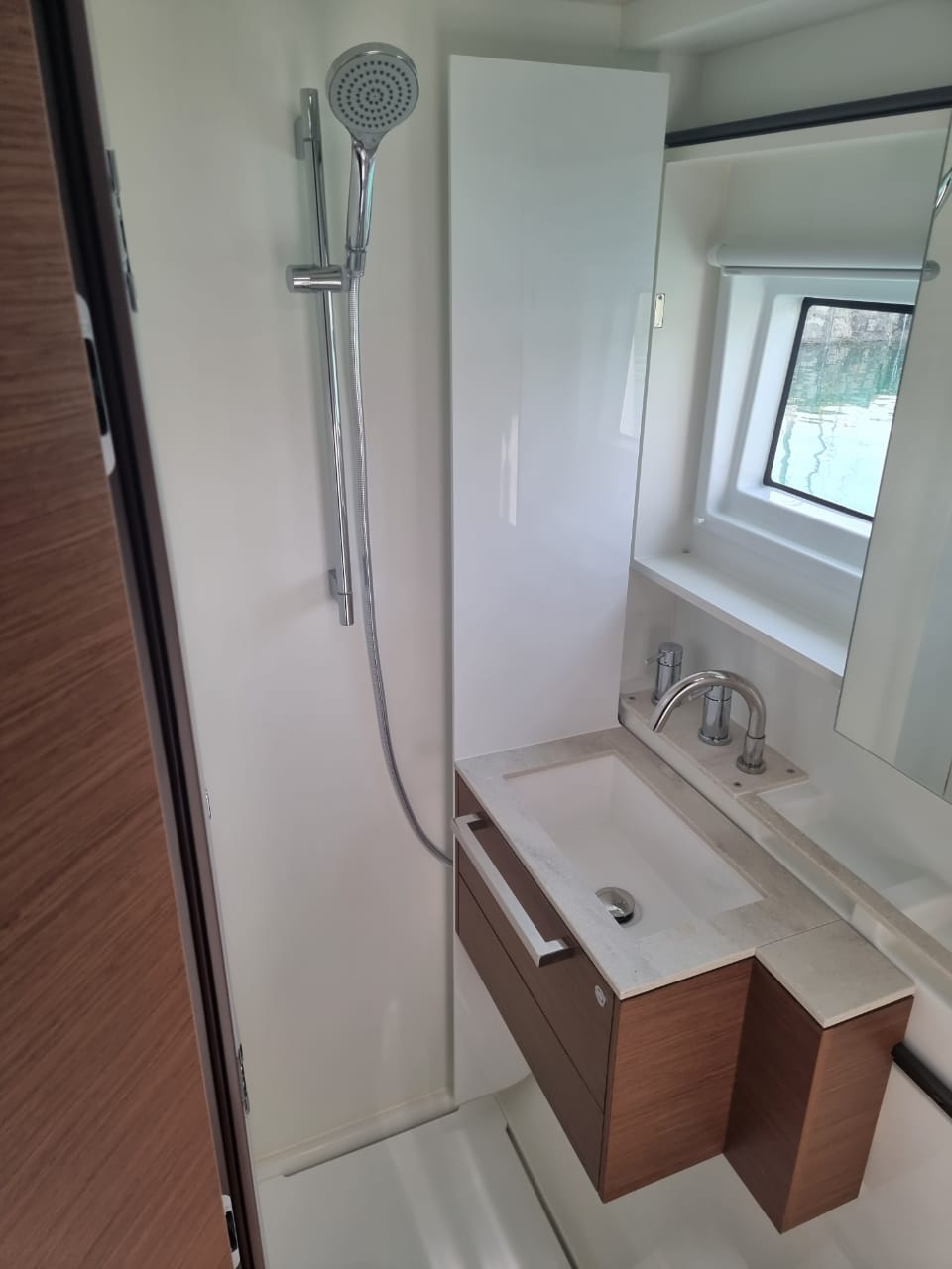 | Inside | Eiswürfelmaschine, Generator, Inverter 12V/220V, Klimaanlage (ohne Landstrombedarf), Kühlschrank, Radio mit CD und MP3, Ventilatoren in Kabinen, Watermaker, WC (elektr.) |