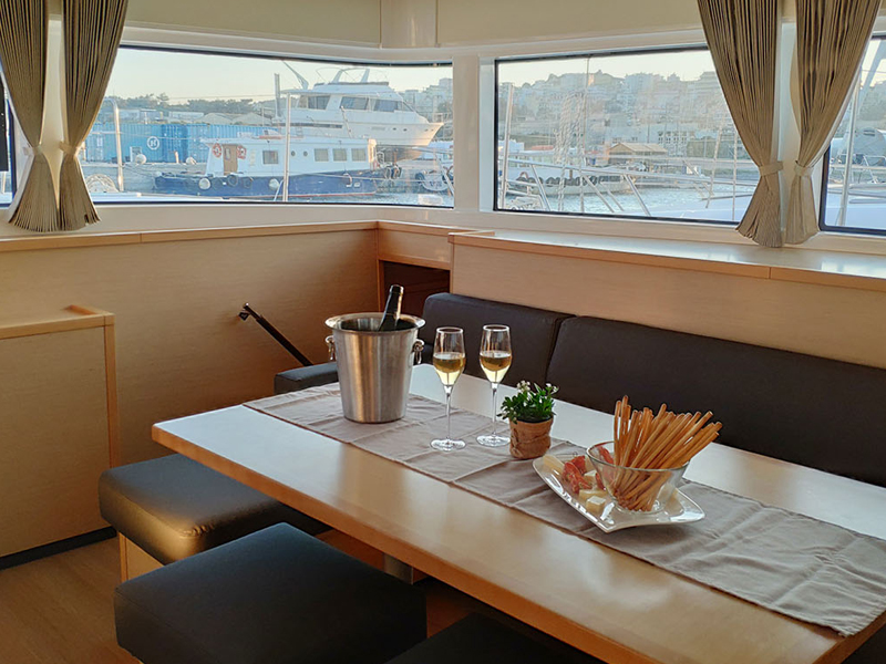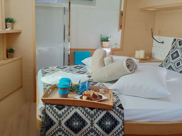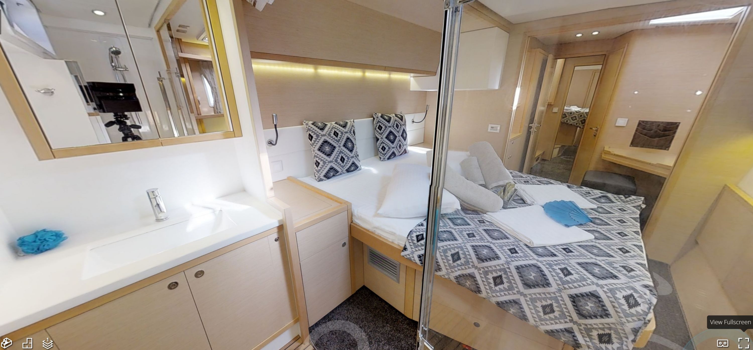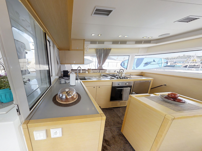 | Inside | CD-Player, DVD-Player, Eiswürfelmaschine, Espresso Maschine, FUSION Sound System, Gefrierschrank, Generator, Geschirrspüler, Heizung, Kaffeemaschine, Klimaanlage (ohne Landstrombedarf), Kühlschrank, Ladegerät, LCD Fernseher, Mikrowelle, Pantryausstattung, Radio mit CD und MP3, Toaster, TV + DVD, Warmwasser, Watermaker, WC (elektr.) |