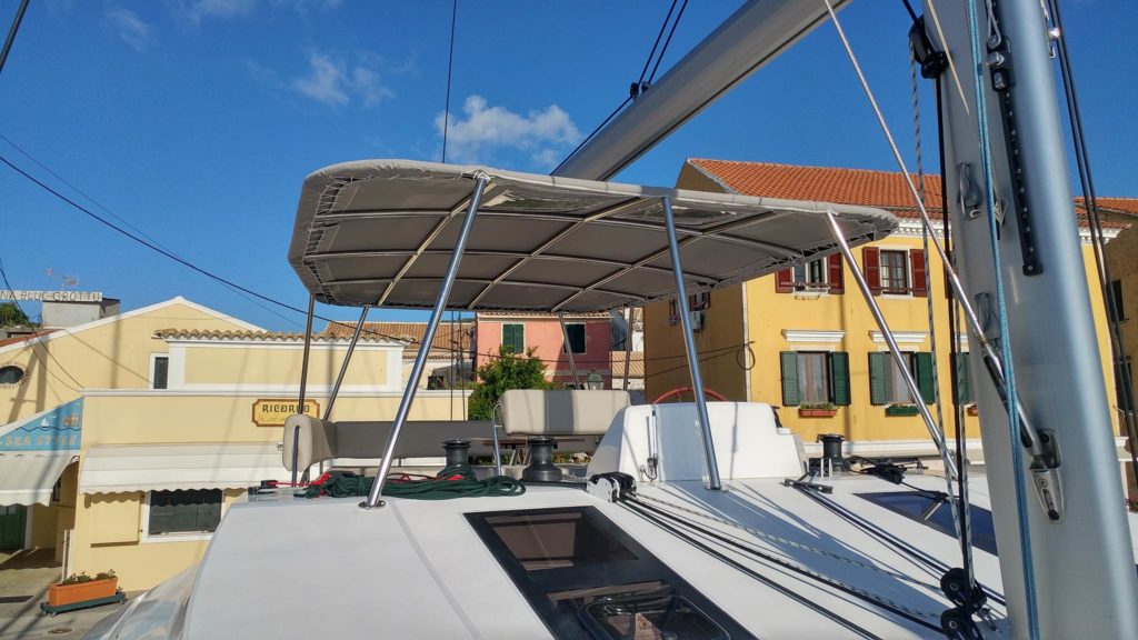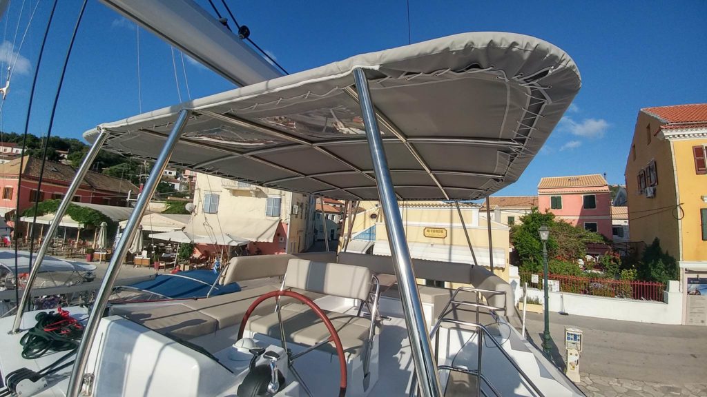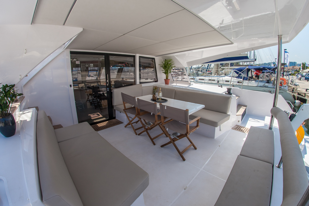 | Outside | Badeleiter, Biminitop, Cockpittisch, elektr. Ankerwinsch, elektr. Winsch, hydraul. Gangway, Solaranlage, Sprayhood |
