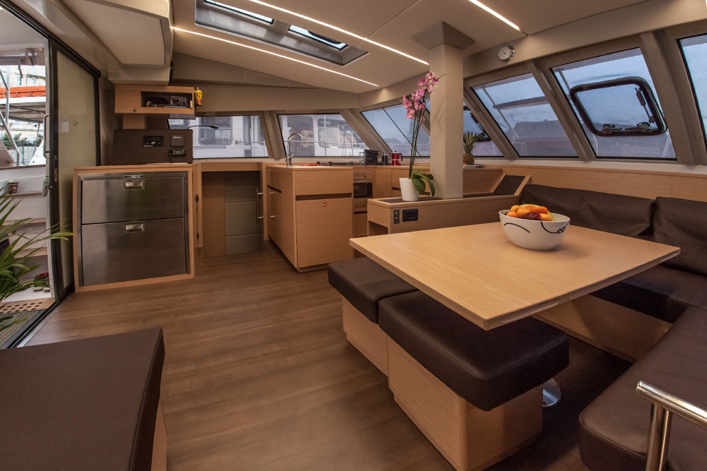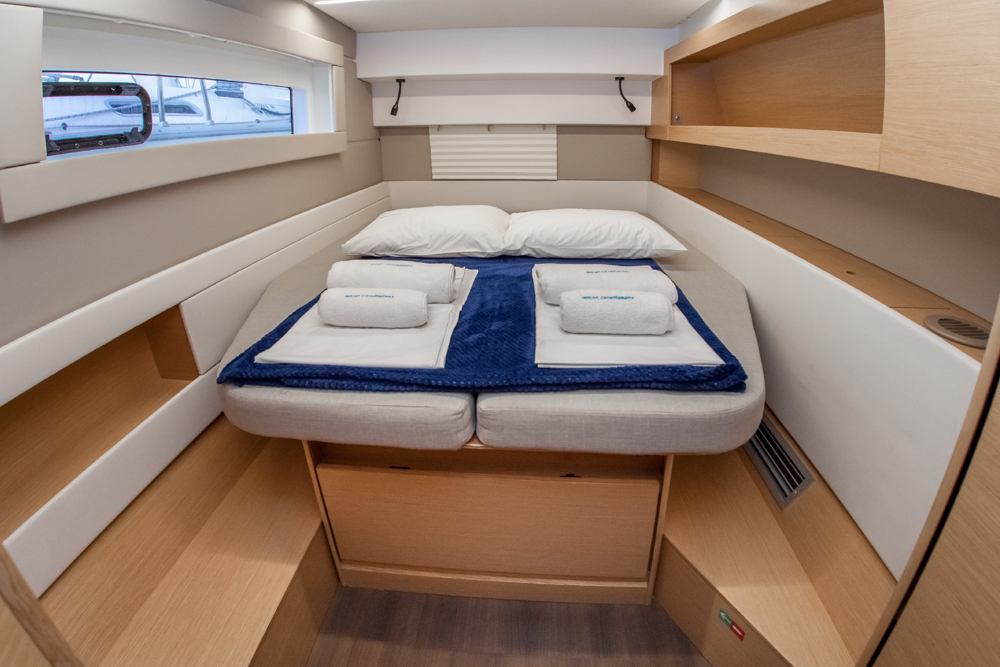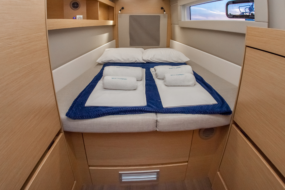 | Inside | Gefrierschrank, Generator, Inverter 12V/220V, Kaffeemaschine, Klimaanlage (ohne Landstrombedarf), Kühlschrank, Radio mit CD und MP3, TV + DVD, Ventilatoren in Kabinen, Warmwasser, WC (elektr.) |