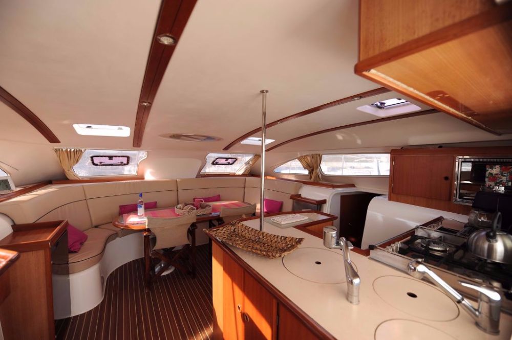 | Inside | Backofen, CD-Player, Gasherd, Generator, Inverter 12V/220V, Klimaanlage, Kühlschrank, Ladegerät, Lautsprecher im Salon, Pantryausstattung, Radio, Radio mit CD/MP3/USB (Ipod möglich), Trichter, Warmwasser, Watermaker |