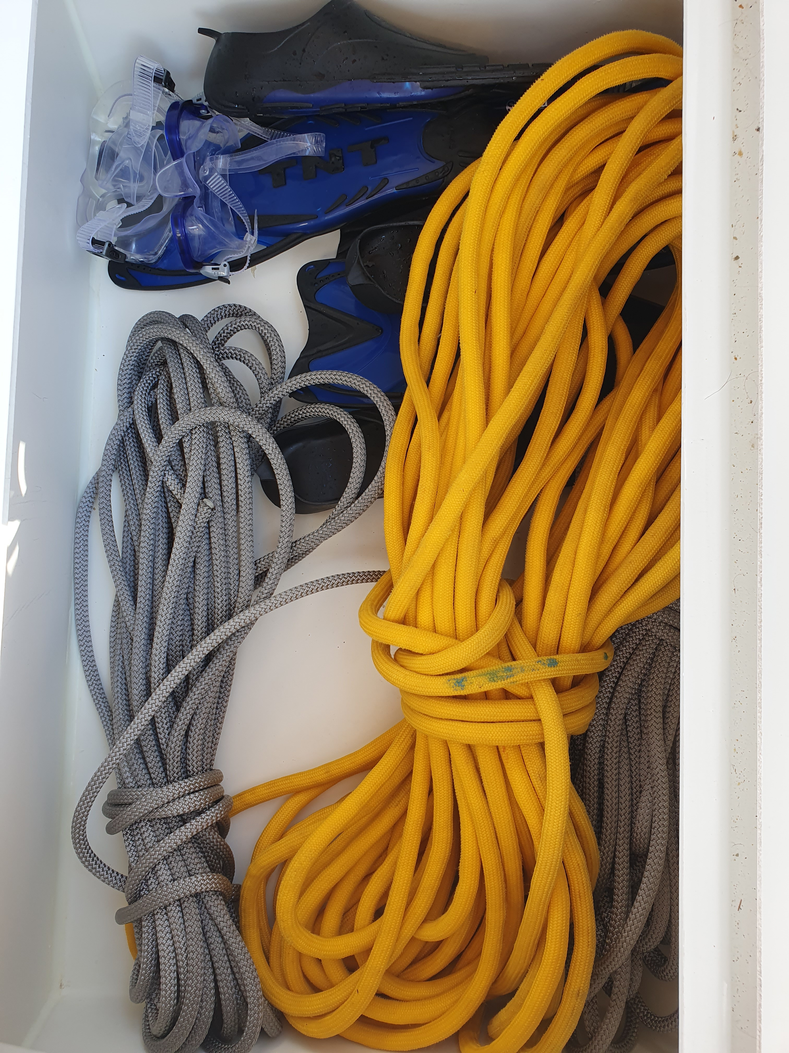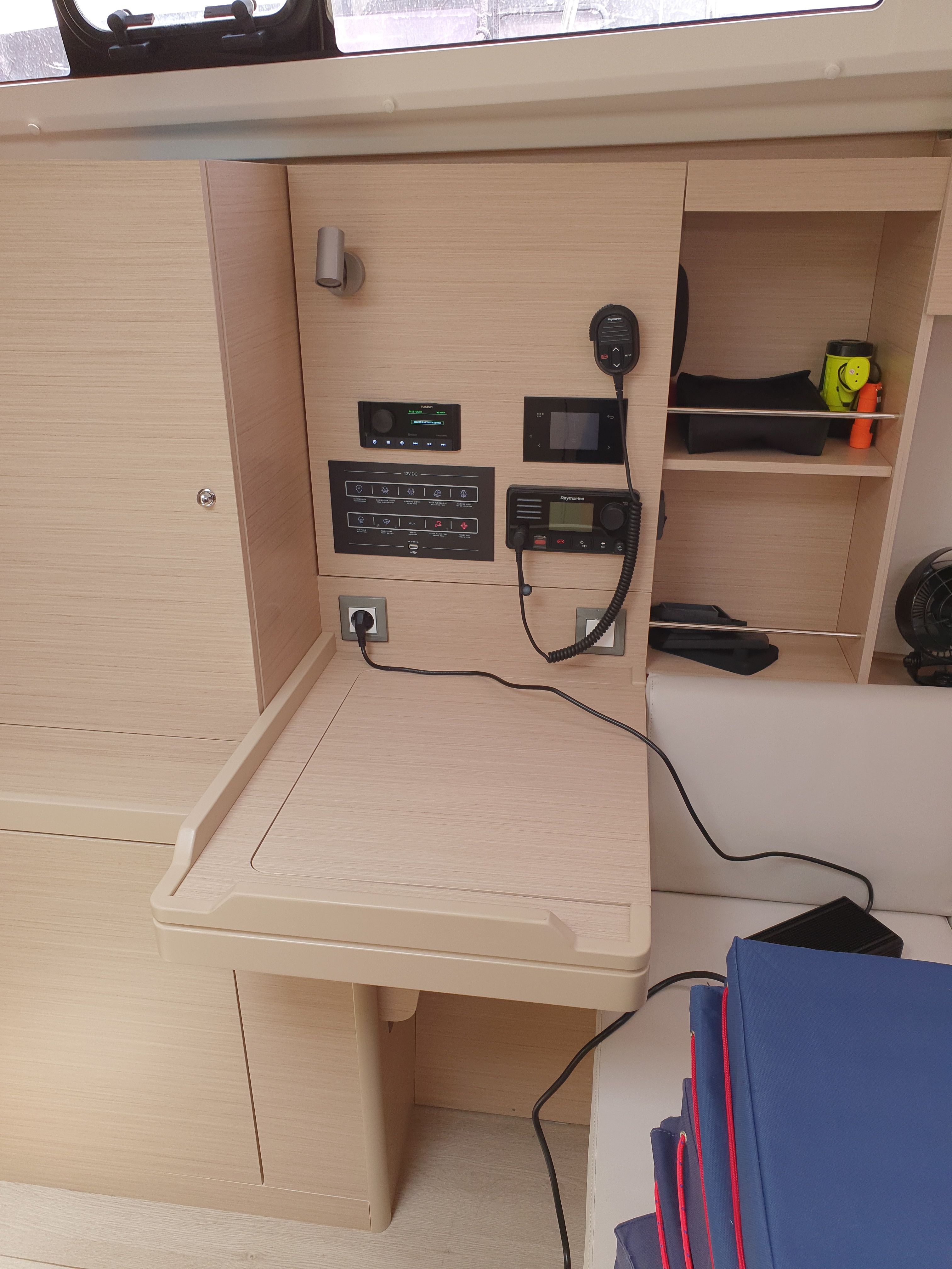 | Safety | Autopilot, Bordapotheke, Bugstrahlruder, Epirb, Feststoffschwimmwesten, Feuerlöscher, Notsignale, Rettungsinsel, UKW-Funk |
