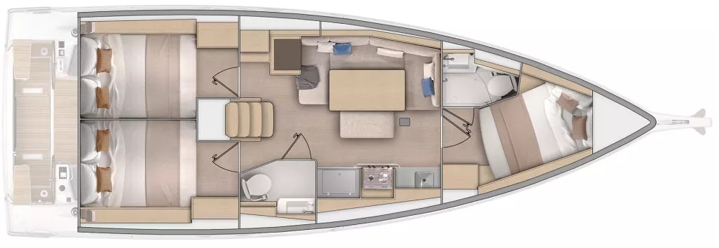 | Kabinen: | 3 | Kojen: | 6+1 |