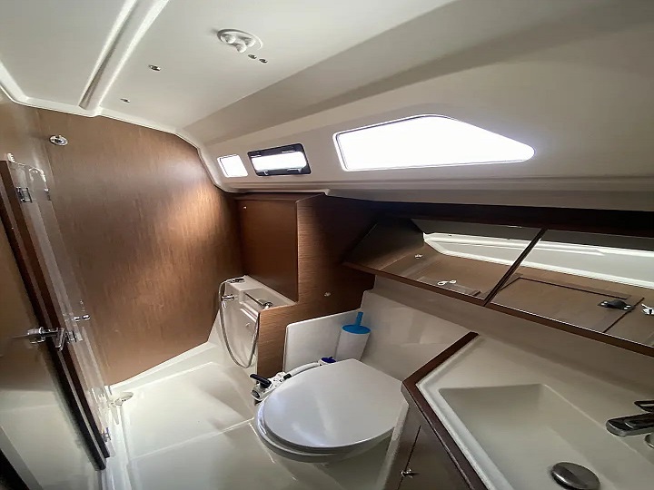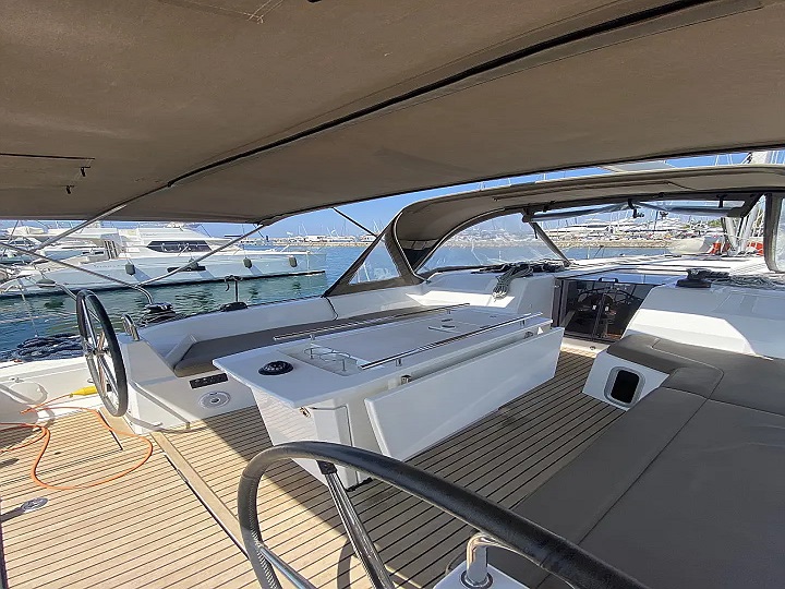 Outside 220 V-Landanschluss, Badeplattform, Biminitop, Cockpitdusche, Cockpitlautsprecher, Cockpitpolster, Cockpittisch, elektr. Ankerwinsch, Festmacherleinen, Gangway, Schnorchelausrüstung, Solaranlage, Sprayhood, Teak im Cockpit
