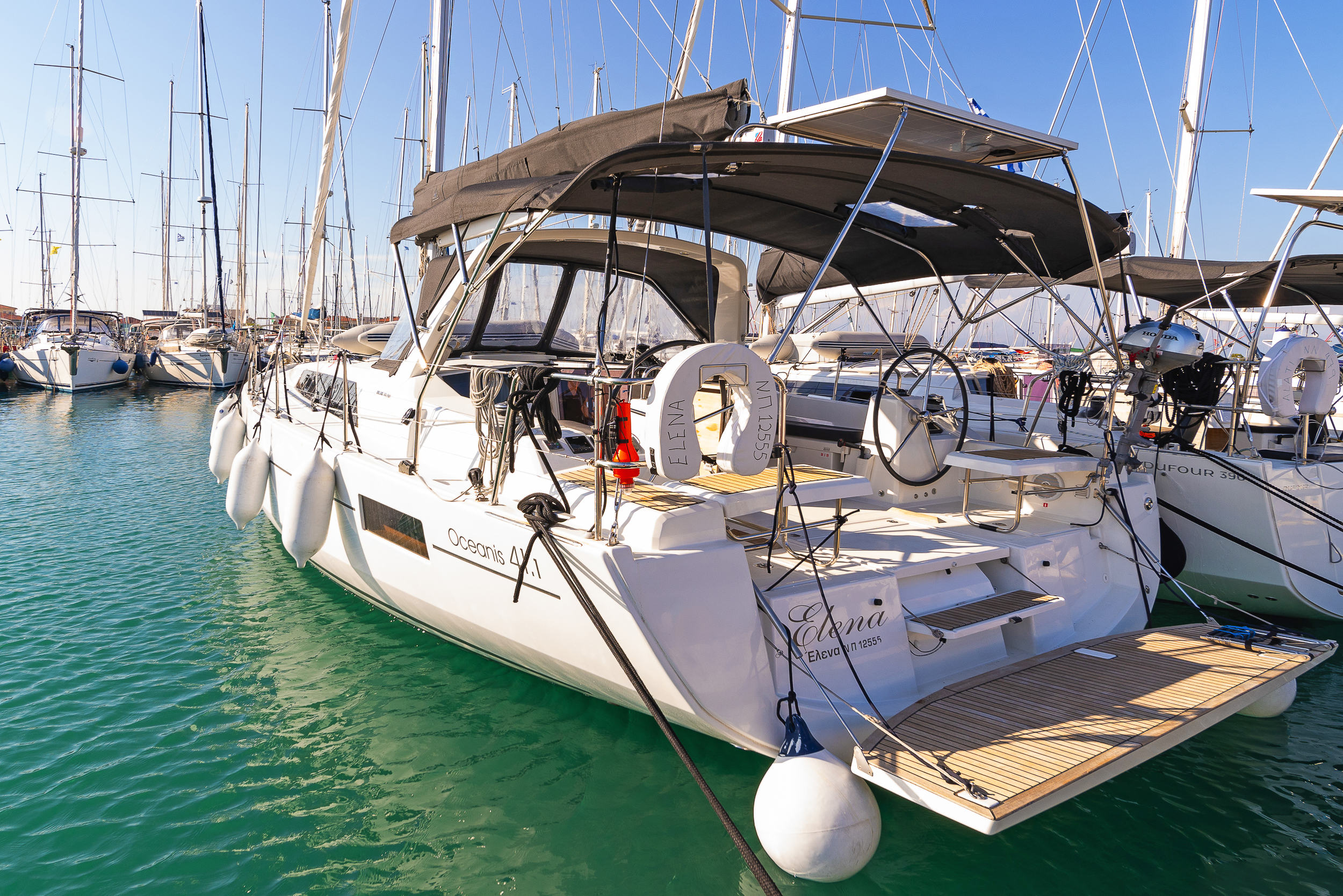 | Outside | Biminitop, Cockpitpolster, elektr. Ankerwinsch, Solaranlage, Sprayhood |