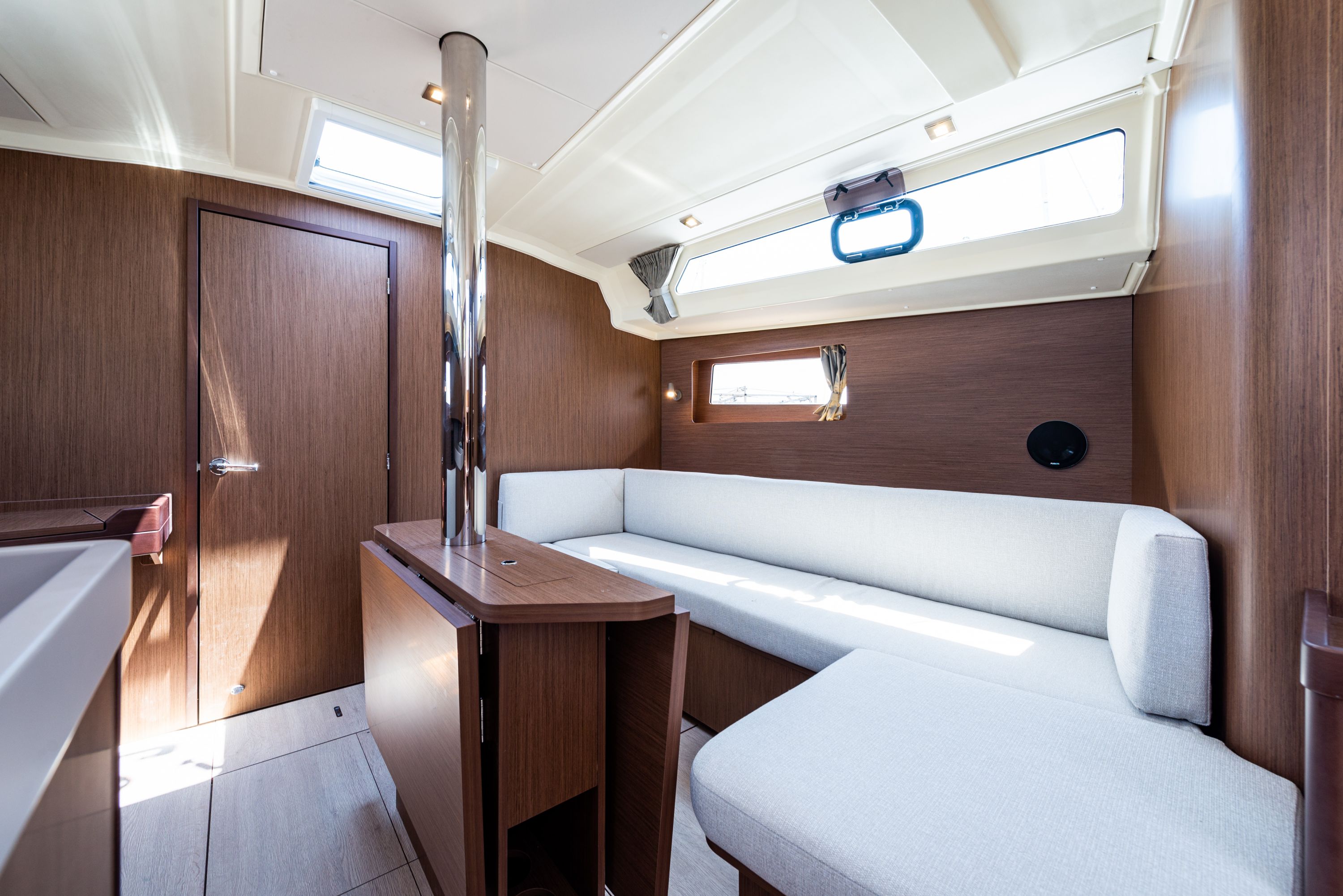 | Inside | 220V Steckdosen, Borduhr, Fäkalientank, Gasherd, Klimaanlage (Landstrom), Lautsprecher im Salon, Pantryausstattung, Radio mit CD, Salontisch absenkbar, USB Steckdosen in den Kabinen, Ventilatoren in Kabinen, Warmwasser, WC (elektr.) |