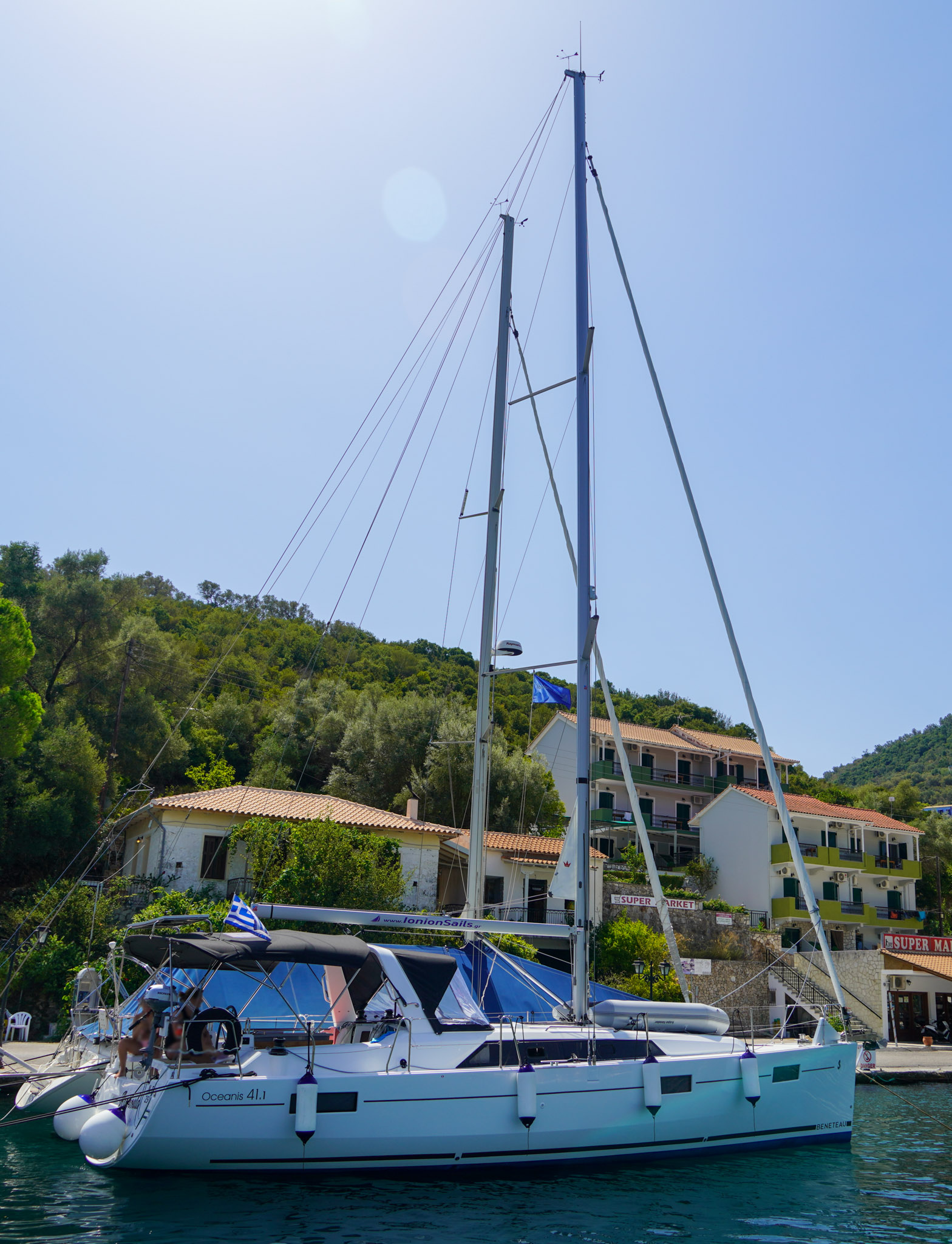 | Navigation | Barometer, Echolot, elektr. Seekarten, Fernglas, GPS mit Kartenplotter, GPS mit Kartenplotter auf Flybridge, Hafenhandbücher, Handpeilkompass, Kompass, Seekarten, Sumlog, Windmesser |