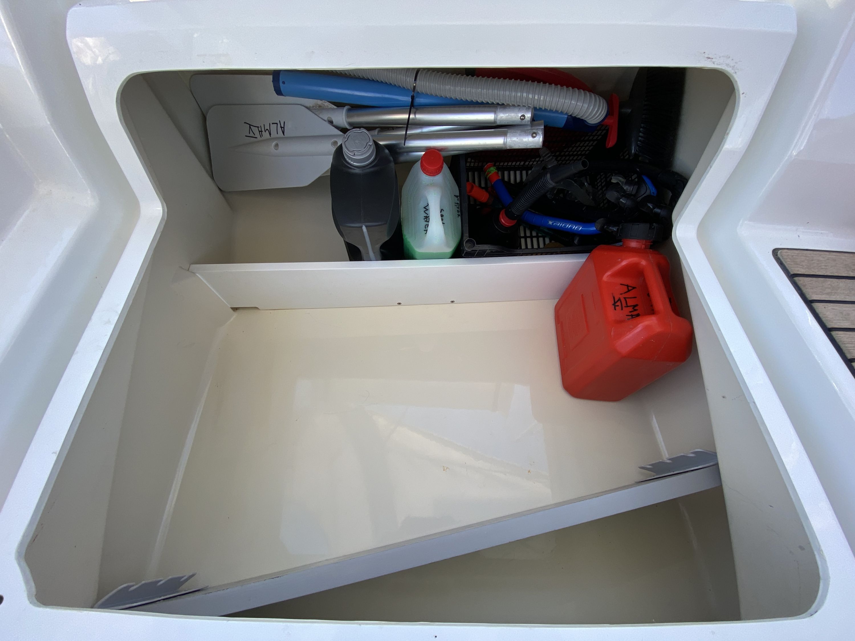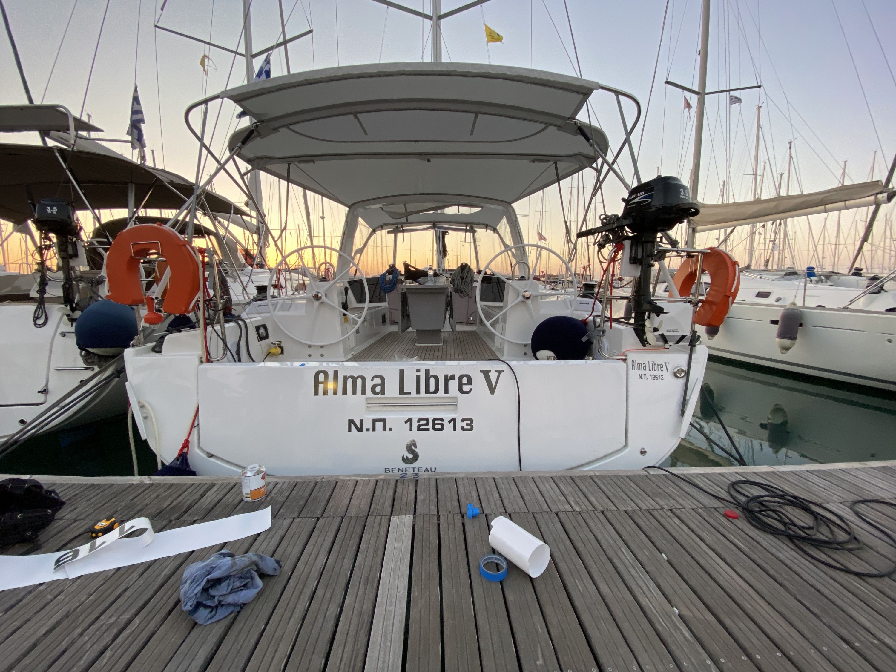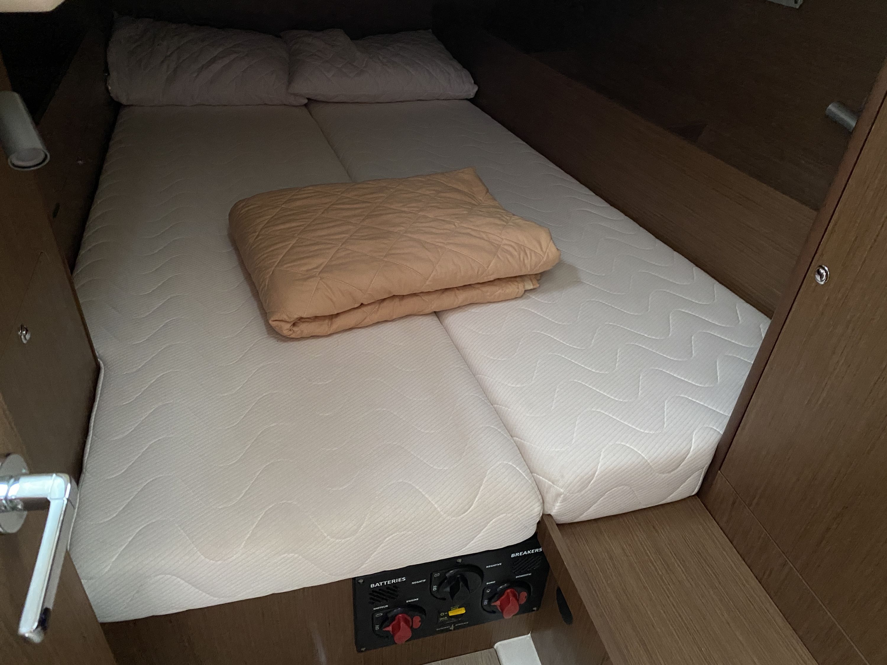 | Safety | Automatikwesten, Autopilot, Bootsmannstuhl, Bordapotheke, Bordwerkzeug, Bugstrahlruder, elektr. Bilgepumpe, Epirb, Flaggen, Leuchtboje, Lifebelts, Navigationslichter, Notpinne, Notsignale, Rettungsinsel, Rettungskragen, Sicherheitsgurt, Taschenlampe, UKW-Funk, UKW-Funk mit AIS |