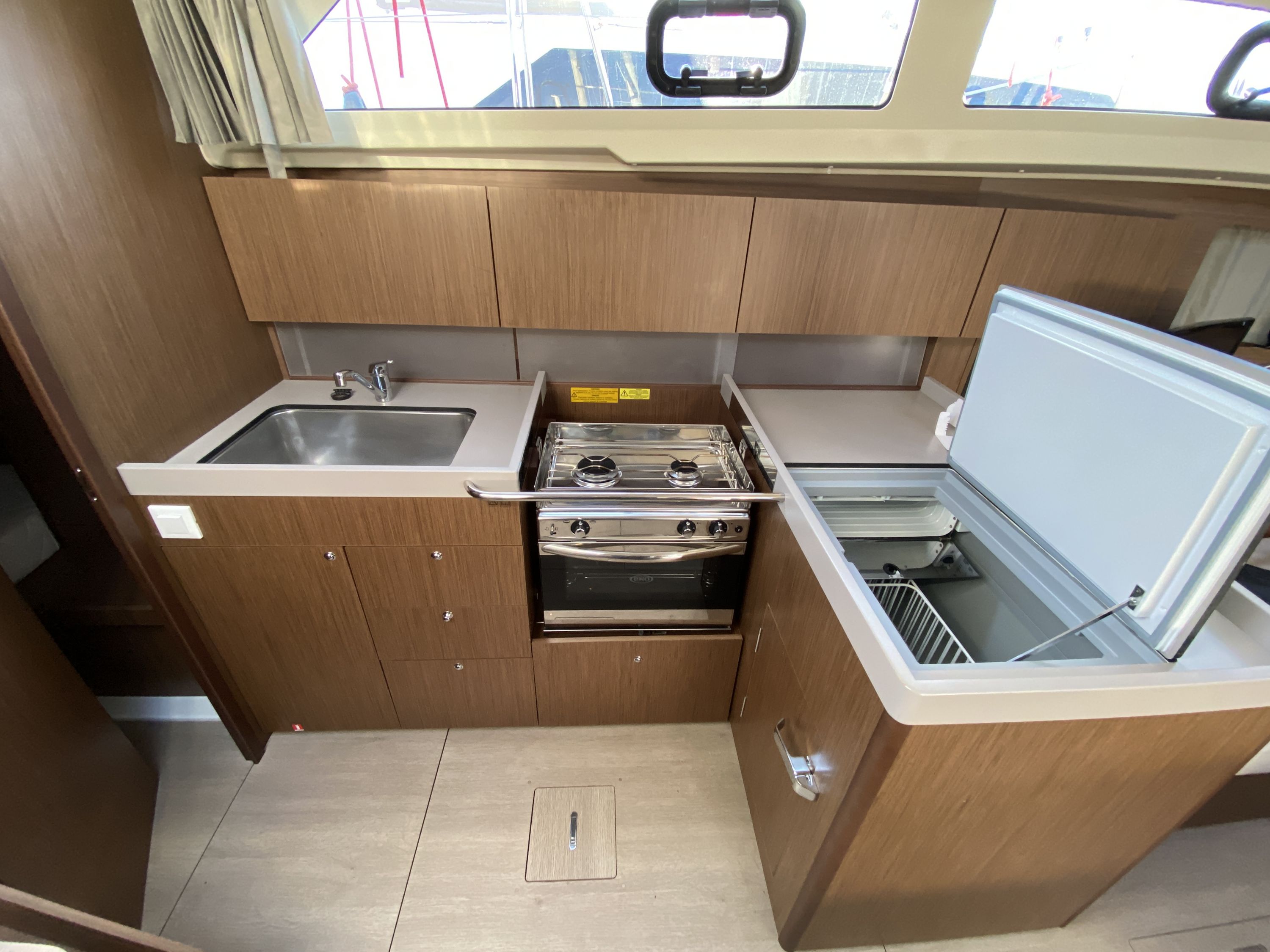 | Inside | 220V Steckdosen, Borduhr, Fäkalientank, Gasherd mit Backofen, Kühlschrank, Ladegerät, Pantryausstattung, Radio mit USB und Bluetooth, TV, USB Steckdose, USB Steckdosen in den Kabinen, Warmwasser, WC (elektr.) |