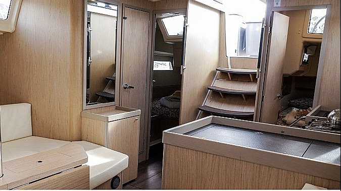 | Safety | Autopilot, Bordapotheke, Bugstrahlruder, Feststoffschwimmwesten, Feuerlöscher, UKW-Funk, Zweitanker |