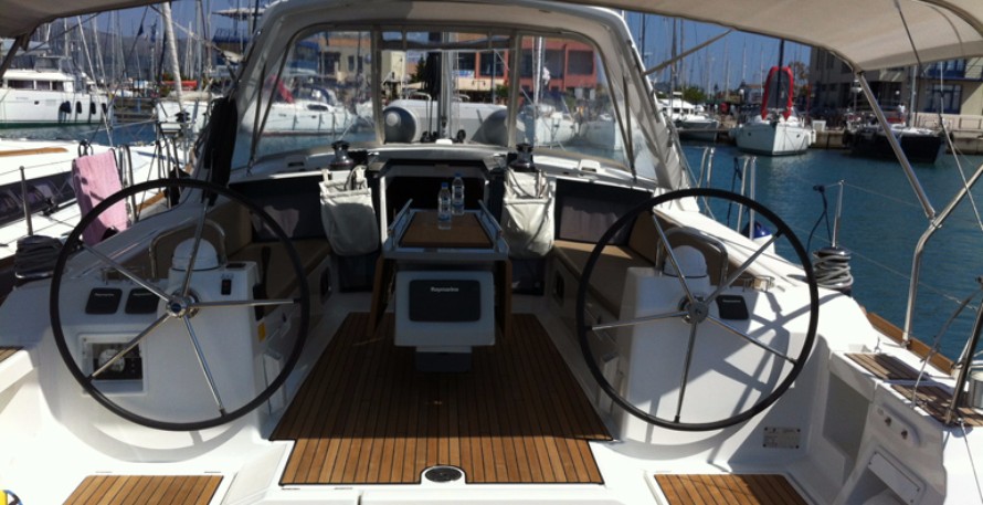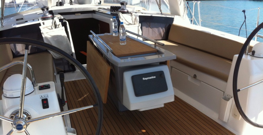 | Outside | 12 V-Anschluss, Anker mit Kette, Badeleiter, Biminitop, Cockpitdusche, Cockpitlautsprecher, elektr. Ankerwinsch, Sprayhood, Teak im Cockpit |