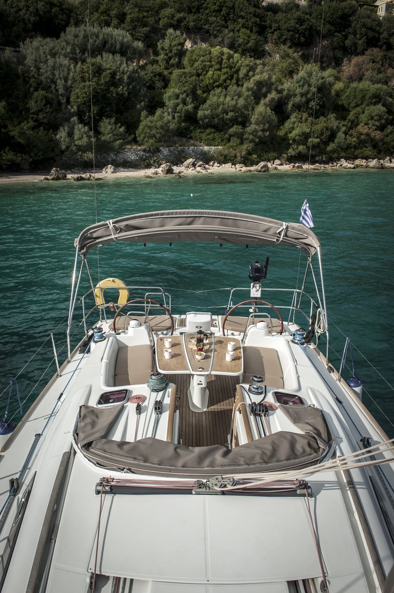 | Outside | 220 V-Landanschluss, Biminitop, Cockpitdusche, Cockpitlautsprecher, Cockpittisch, elektr. Ankerwinsch, elektr. Winsch, Solaranlage, Sprayhood, Windex |