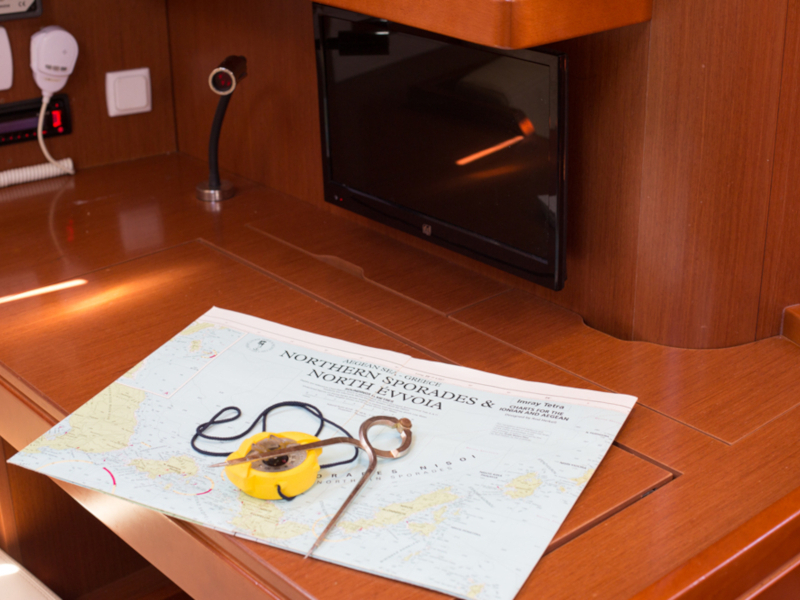 | Navigation | Barometer, GPS mit Farbkartenplotter im Cockpit, Hafenhandbücher, Seekarten, Tridata (Log, Echolot, Windm.) |