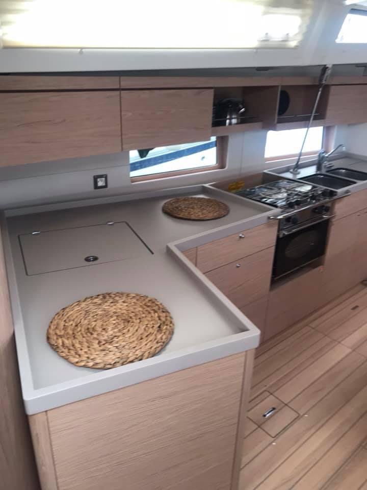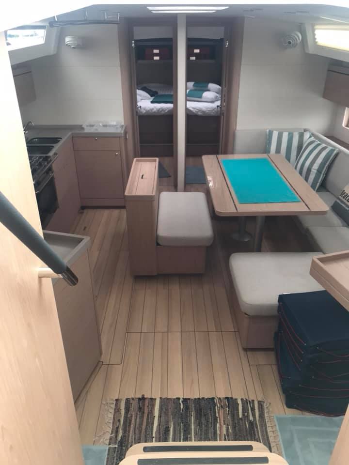 | Outside | Außendusche, Badeleiter, Badeplattform, Biminitop, Cockpitdusche, Cockpitlautsprecher, Cockpitpolster, Cockpittisch, elektr. Ankerwinsch, Fender, Festmacherleinen, Solaranlage, Sprayhood, Winschen |