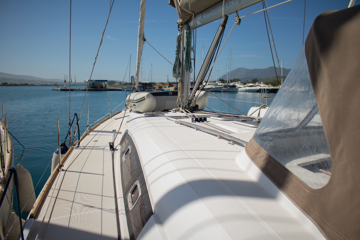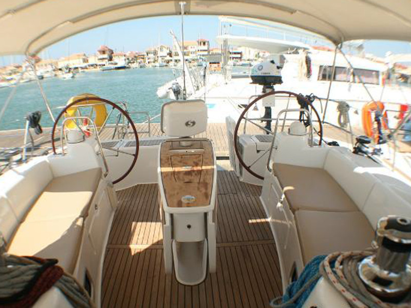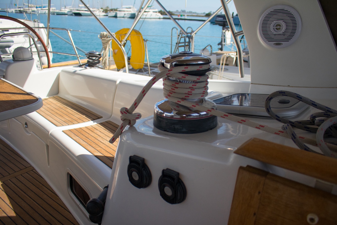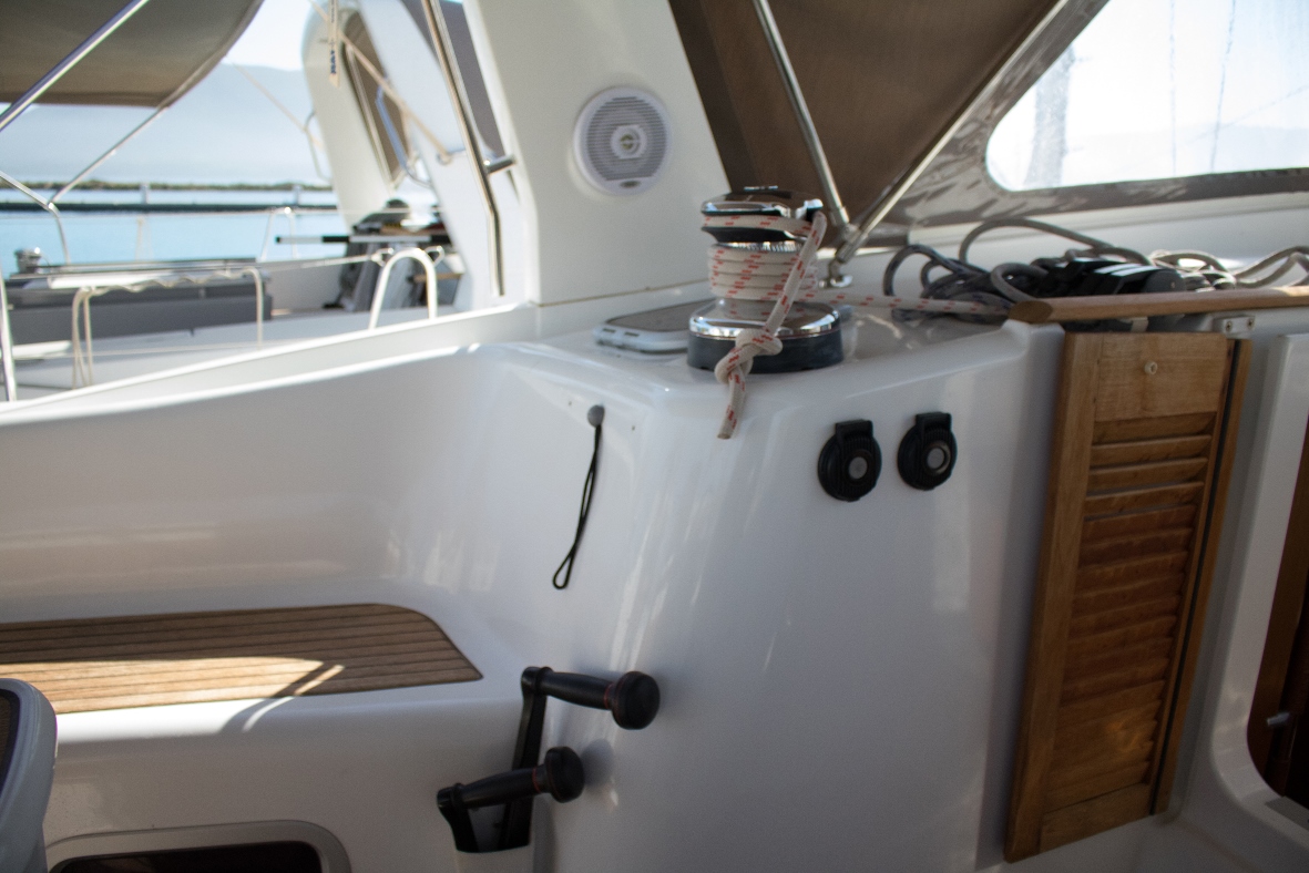 | Outside | 220 V-Landanschluss, Biminitop, Cockpitdusche, Cockpitlautsprecher, elektr. Ankerwinsch, elektr. Großwinsch, Schnorchelausrüstung, Solaranlage, Sprayhood, Teak im Cockpit |