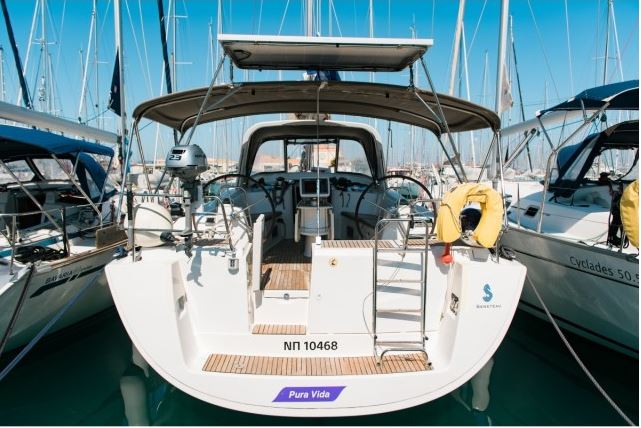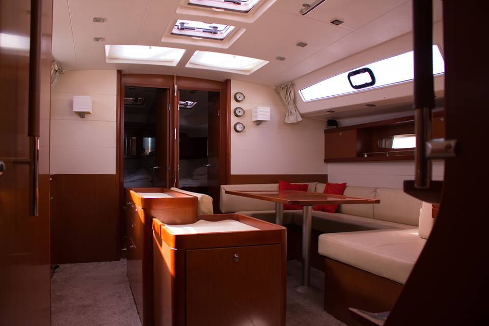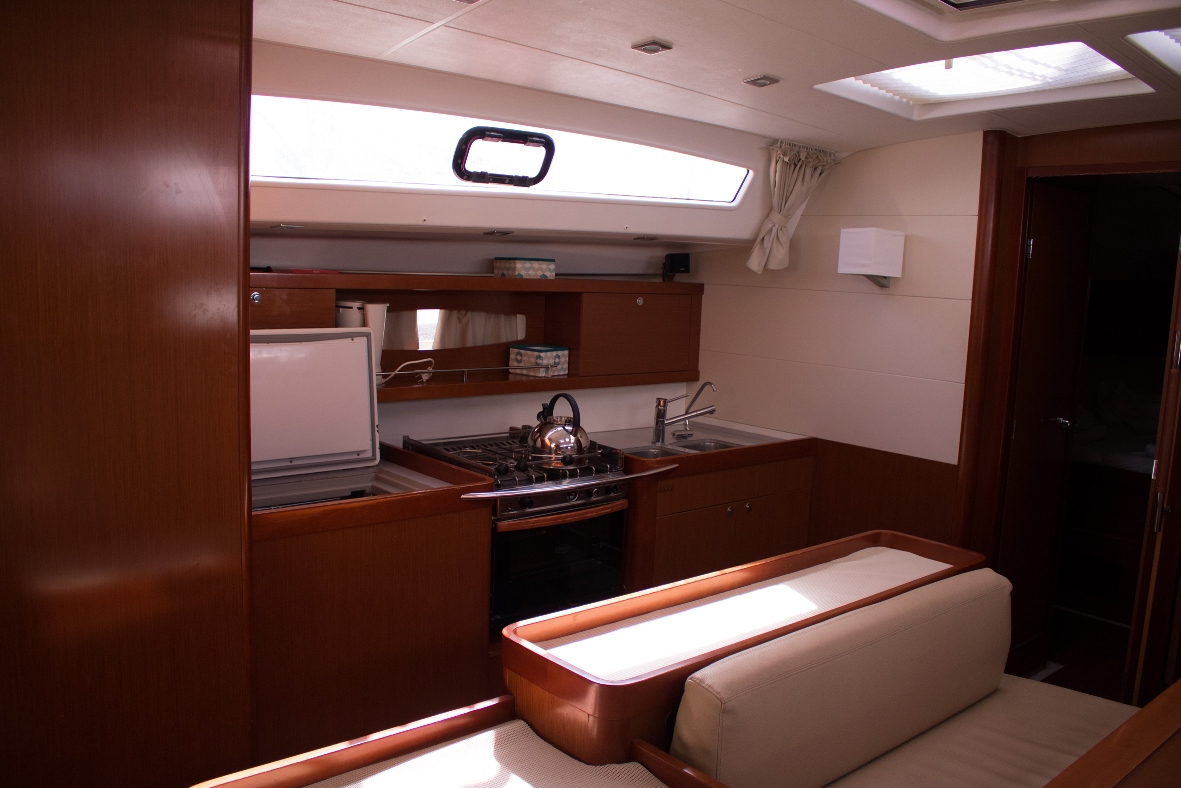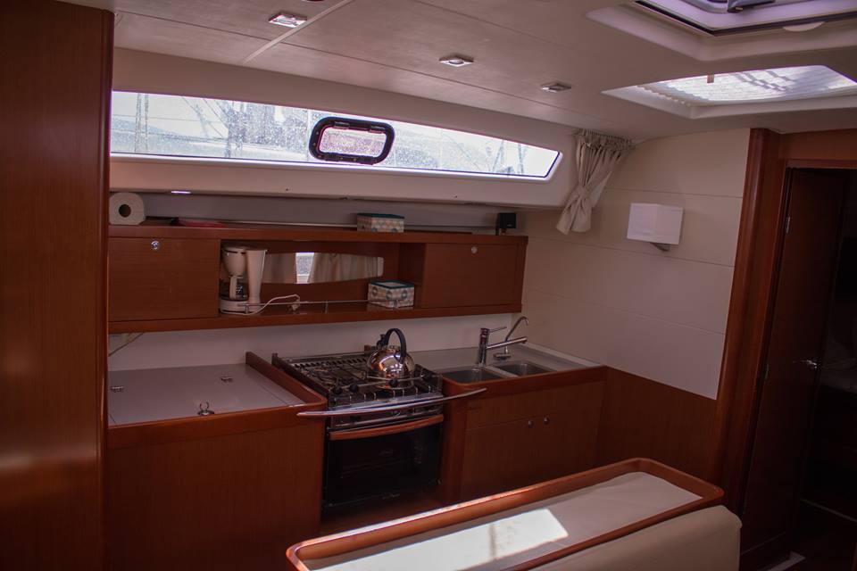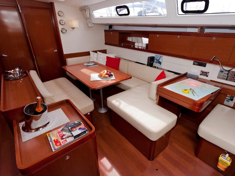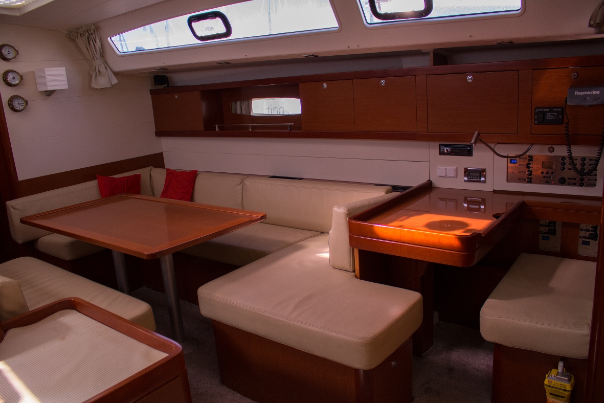 | Outside | 220 V-Landanschluss, Biminitop, Cockpitdusche, Cockpitlautsprecher, elektr. Ankerwinsch, elektr. Großwinsch, Schnorchelausrüstung, Solaranlage, Sprayhood, Teak im Cockpit |