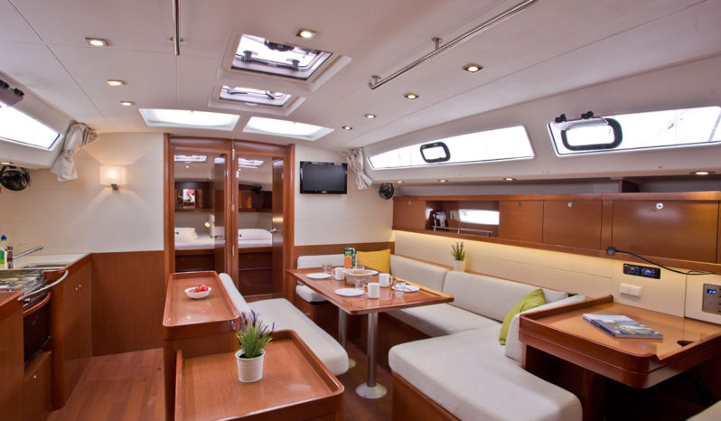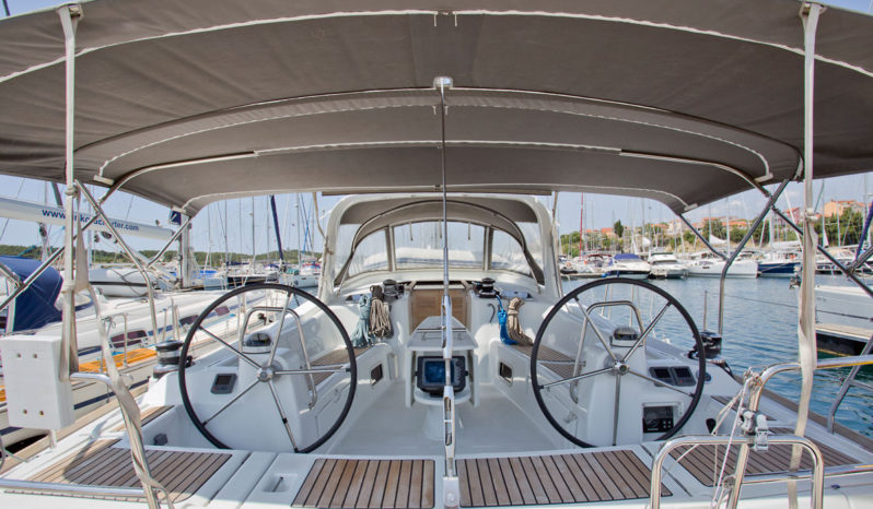| Outside | 220 V-Landanschluss, Badeleiter, Biminitop, Cockpitdusche, Cockpitlautsprecher, Cockpittisch, elektr. Ankerwinsch, Segel-Flickwerkzeug, Solaranlage, Sprayhood, Teak im Cockpit, Treibanker, Windex |