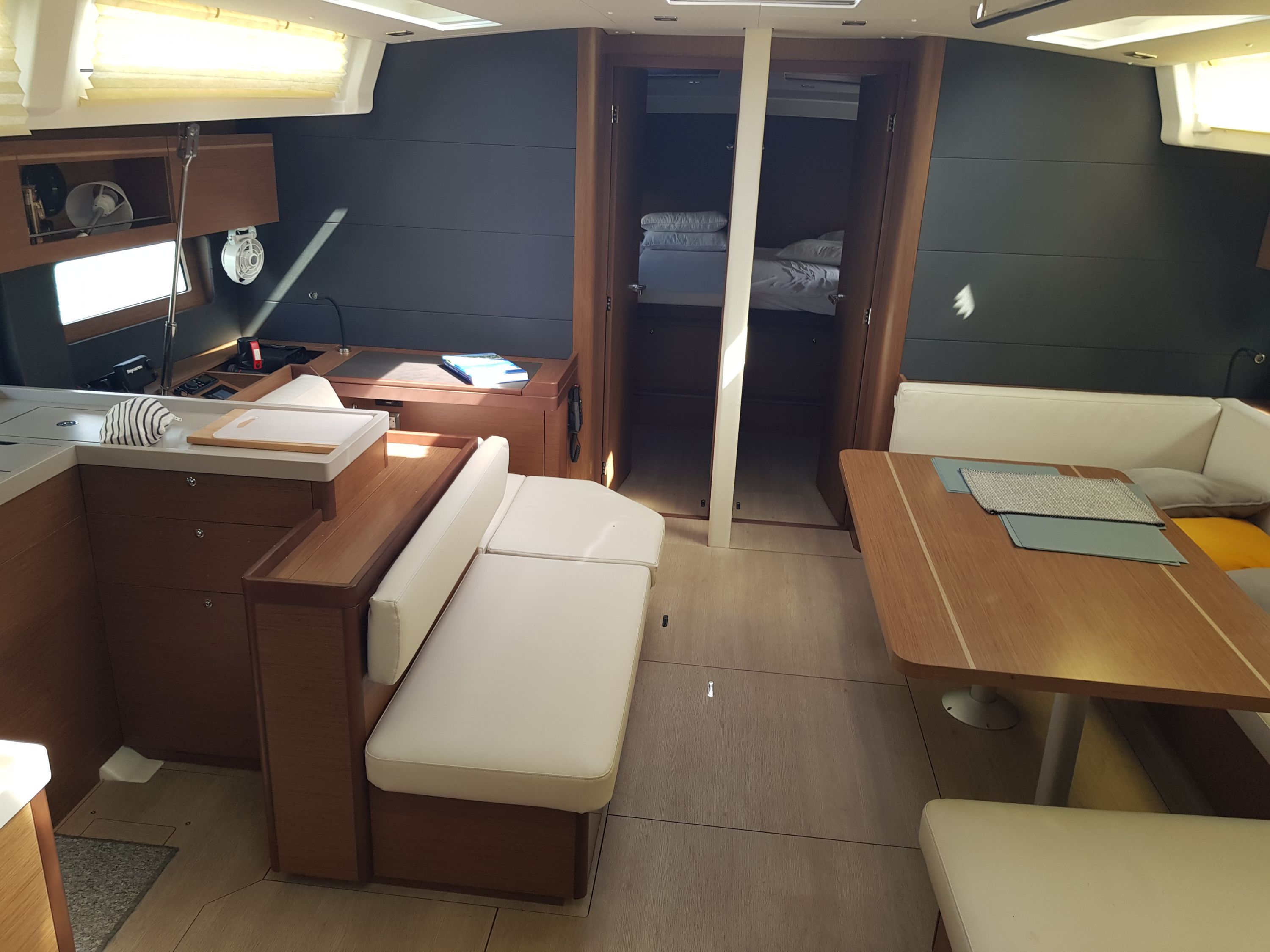 | Outside | Anker mit Kette, Biminitop, Cockpitdusche, Cockpitlautsprecher, Cockpitpolster, Cockpittisch (klappbar), Deckbürste, elektr. Ankerwinsch, Fender, Kunststoff-Eimer (Pütz), Sprayhood |