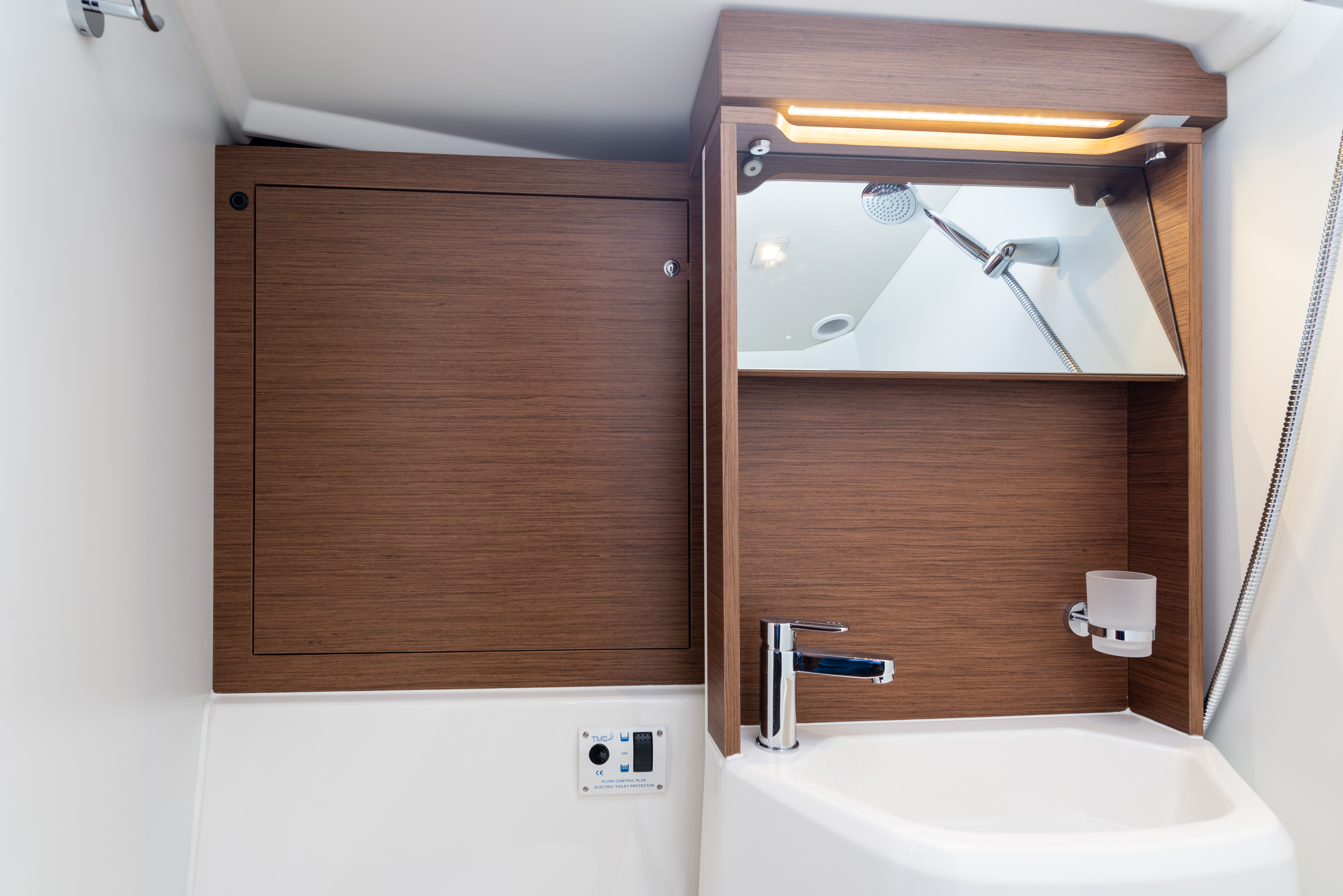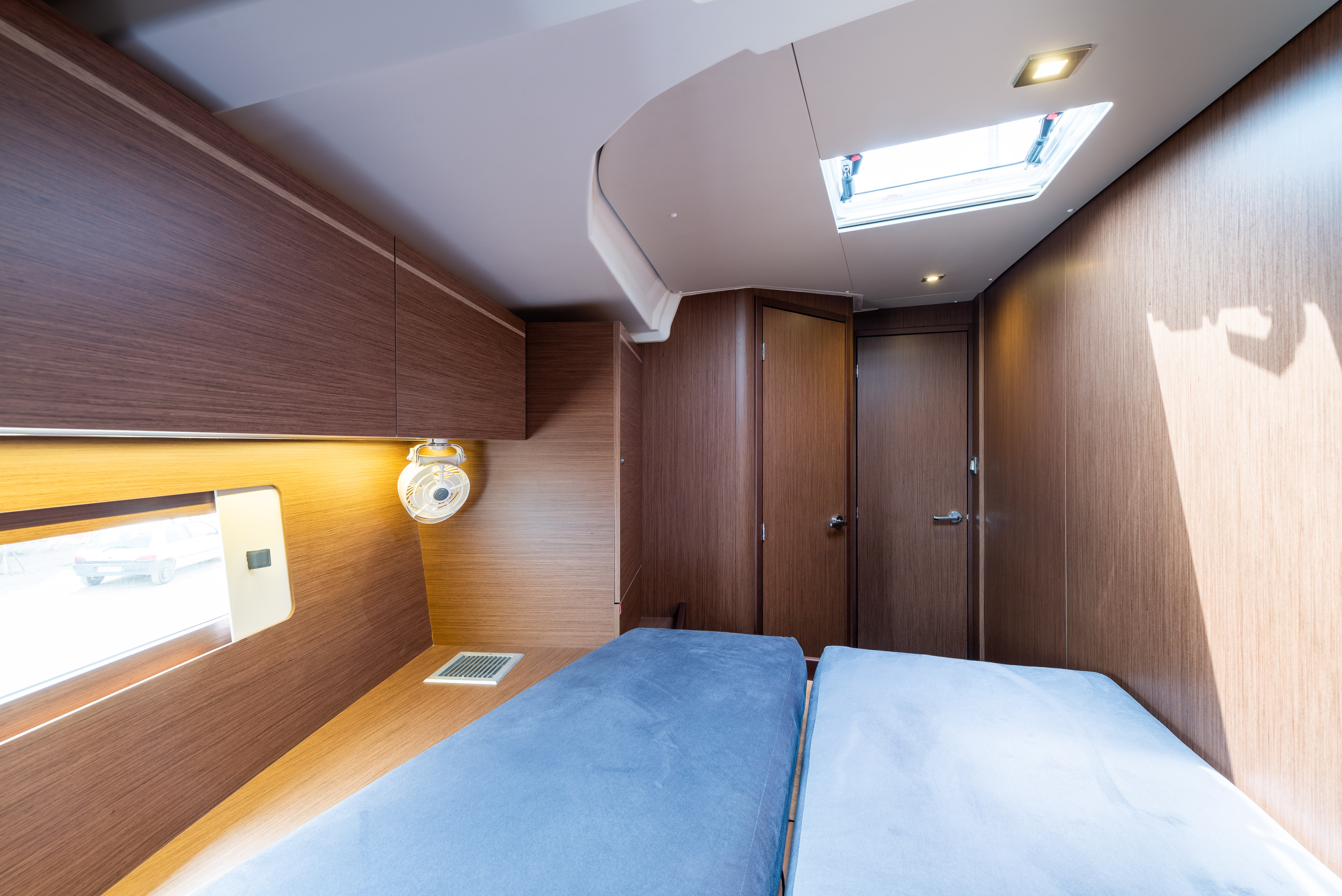 | Inside | 2. Kühlschrank, 220V Steckdosen, Gasherd, Generator, Klimaanlage (ohne Landstrombedarf), Klimaanlage in den Kabinen, Kühlschrank, Lautsprecher im Salon, Pantryausstattung, Radio mit CD, Salontisch absenkbar, USB Steckdosen in den Kabinen, Ventilatoren in Kabinen, Warmwasser, WC (elektr.) |