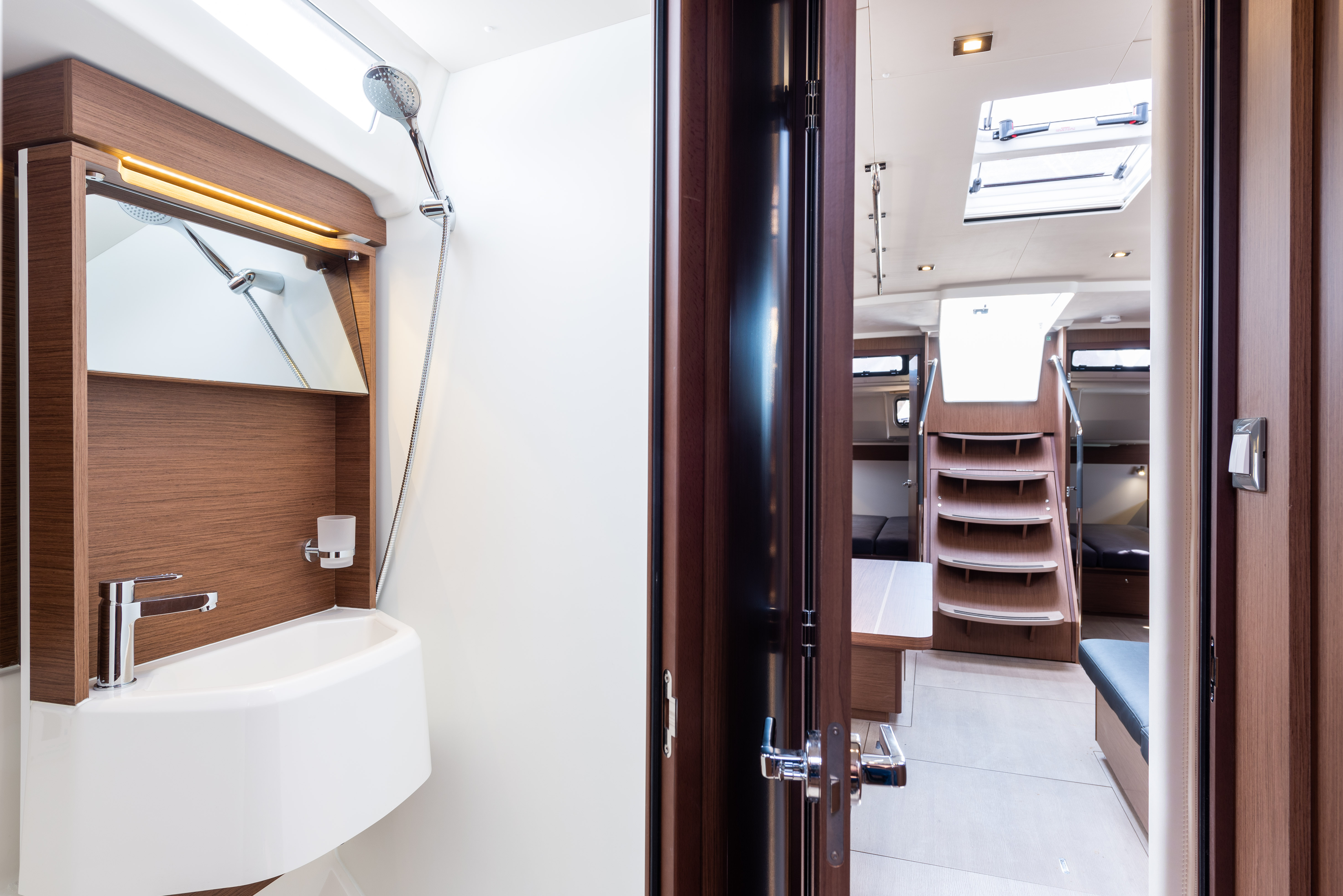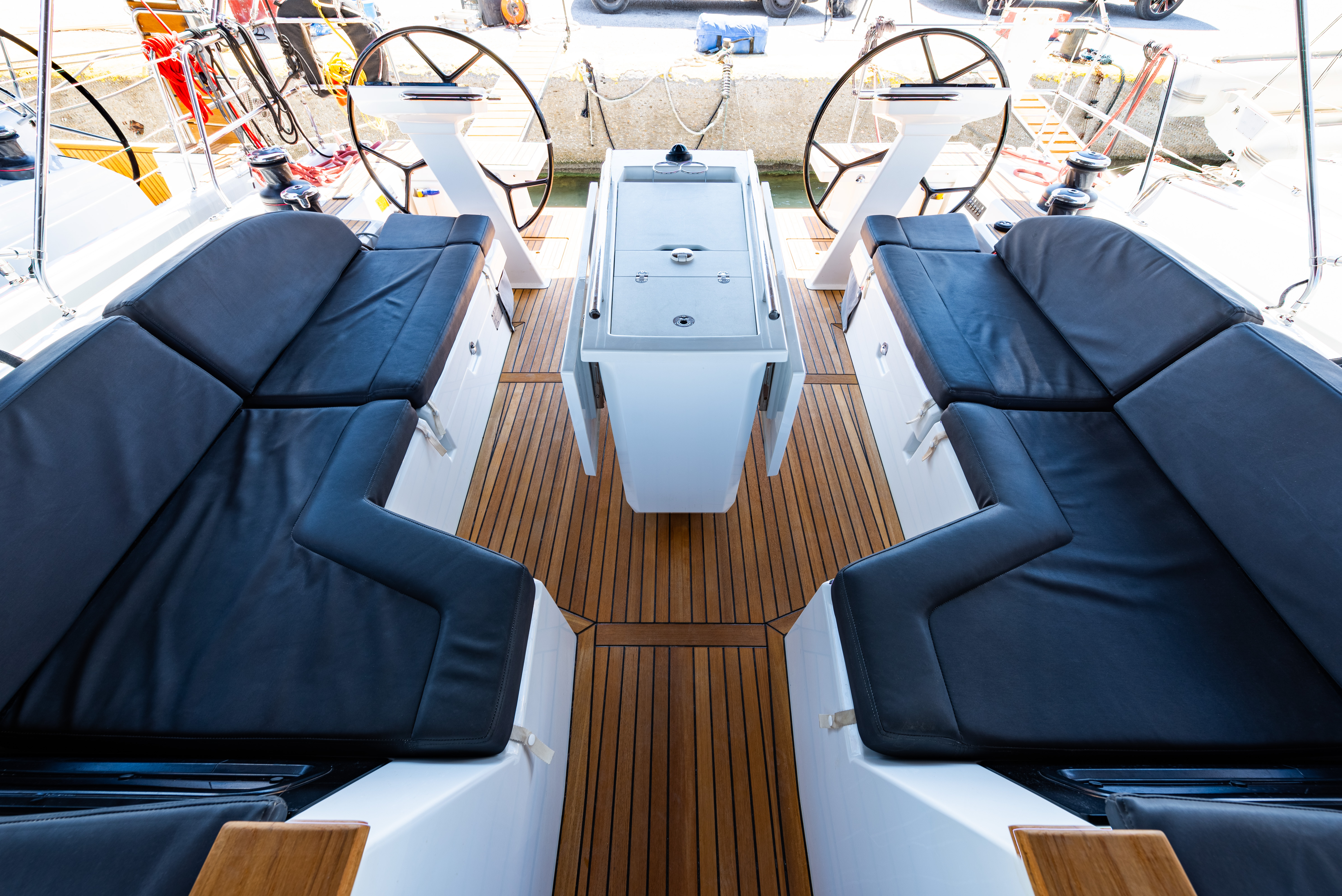 | Outside | Außendusche, Badeleiter, Biminitop, Cockpitlautsprecher, Cockpitpolster, Cockpittisch, elektr. Ankerwinsch, elektr. Winsch, Solaranlage, Sprayhood, Teak im Cockpit, Treibanker |