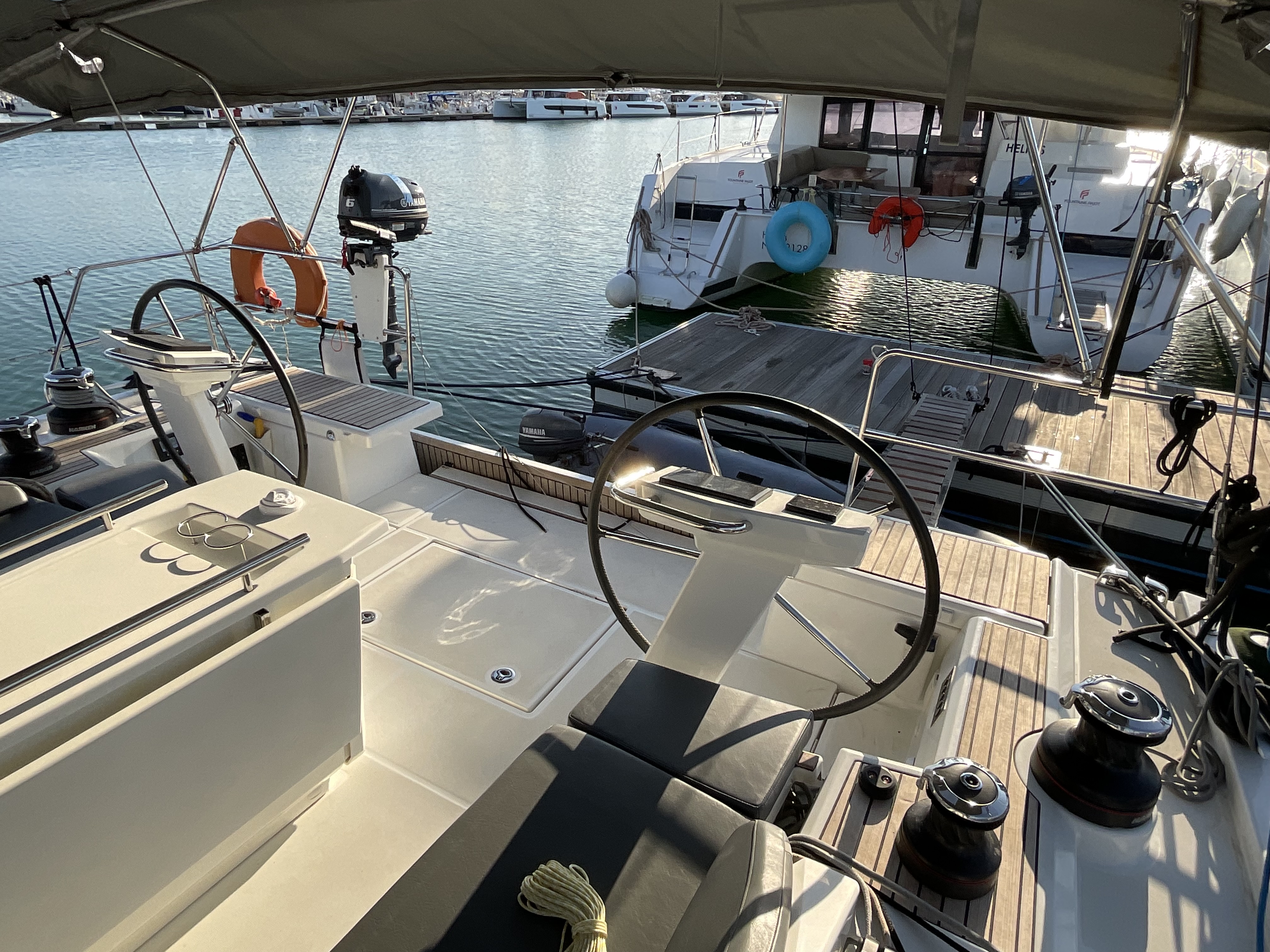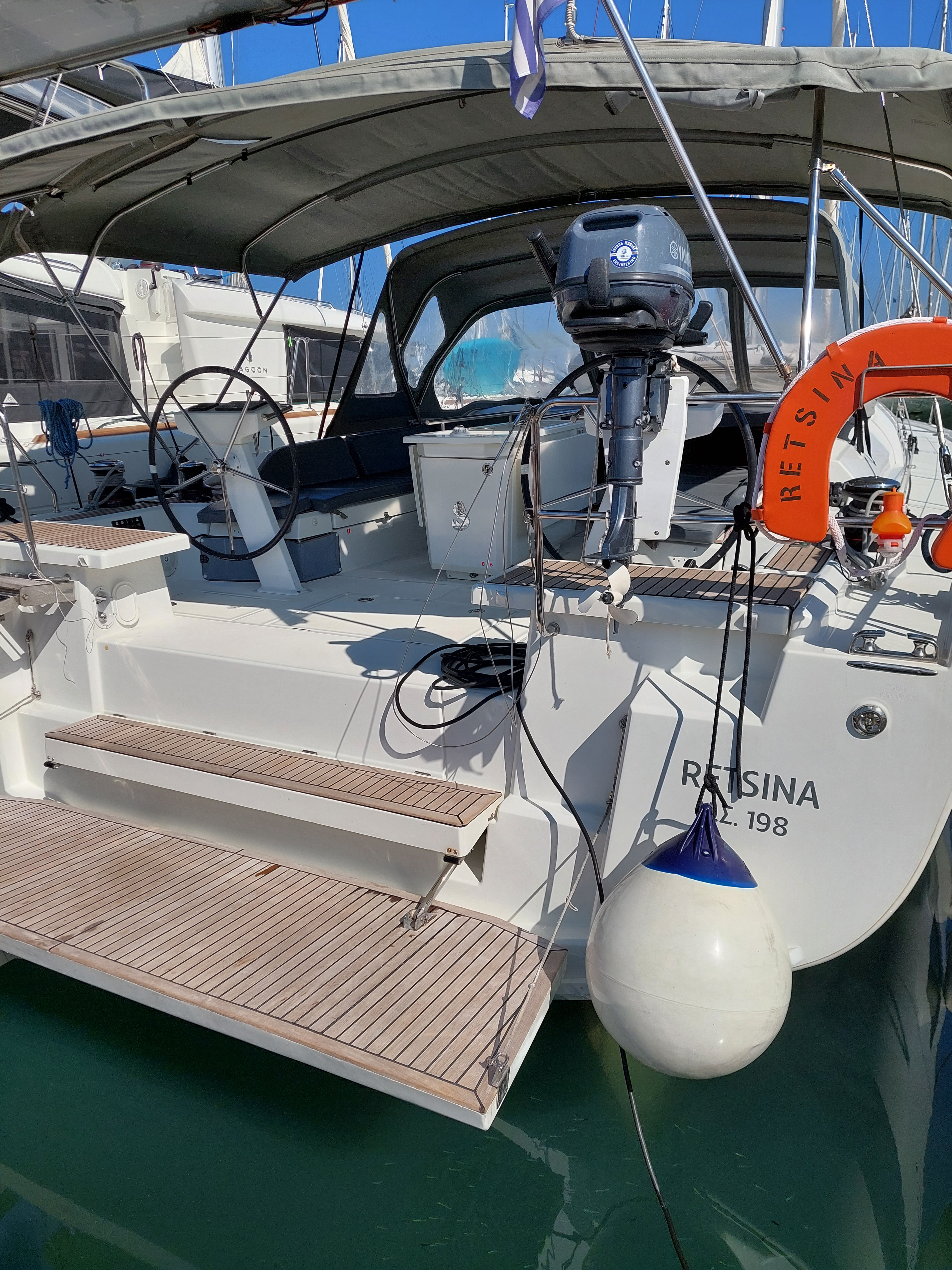 | Outside | Badeplattform, Biminitop, Cockpitdusche, Cockpitlautsprecher, Cockpitpolster, elektr. Winsch, Schnorchelausrüstung, Solaranlage |
