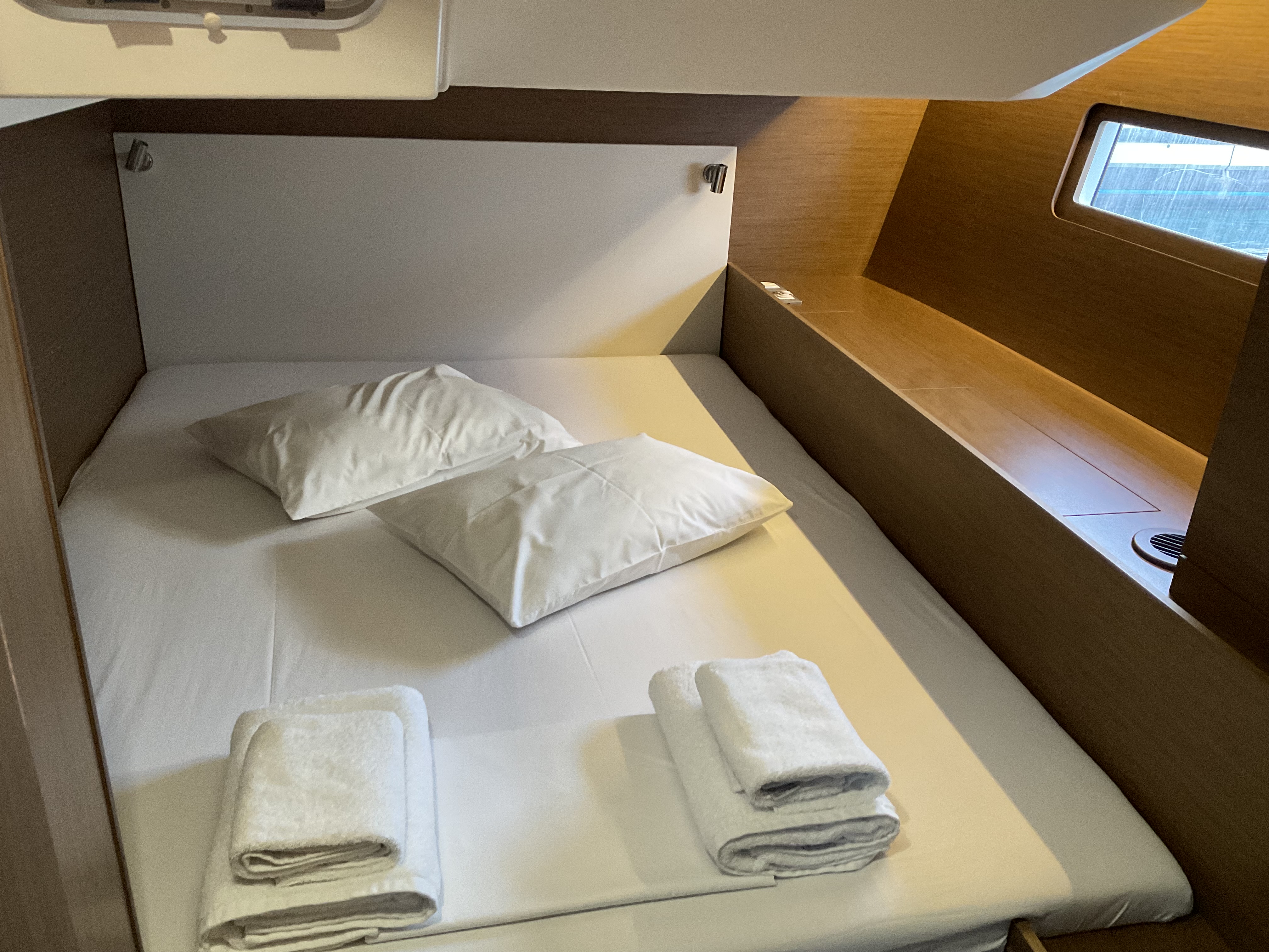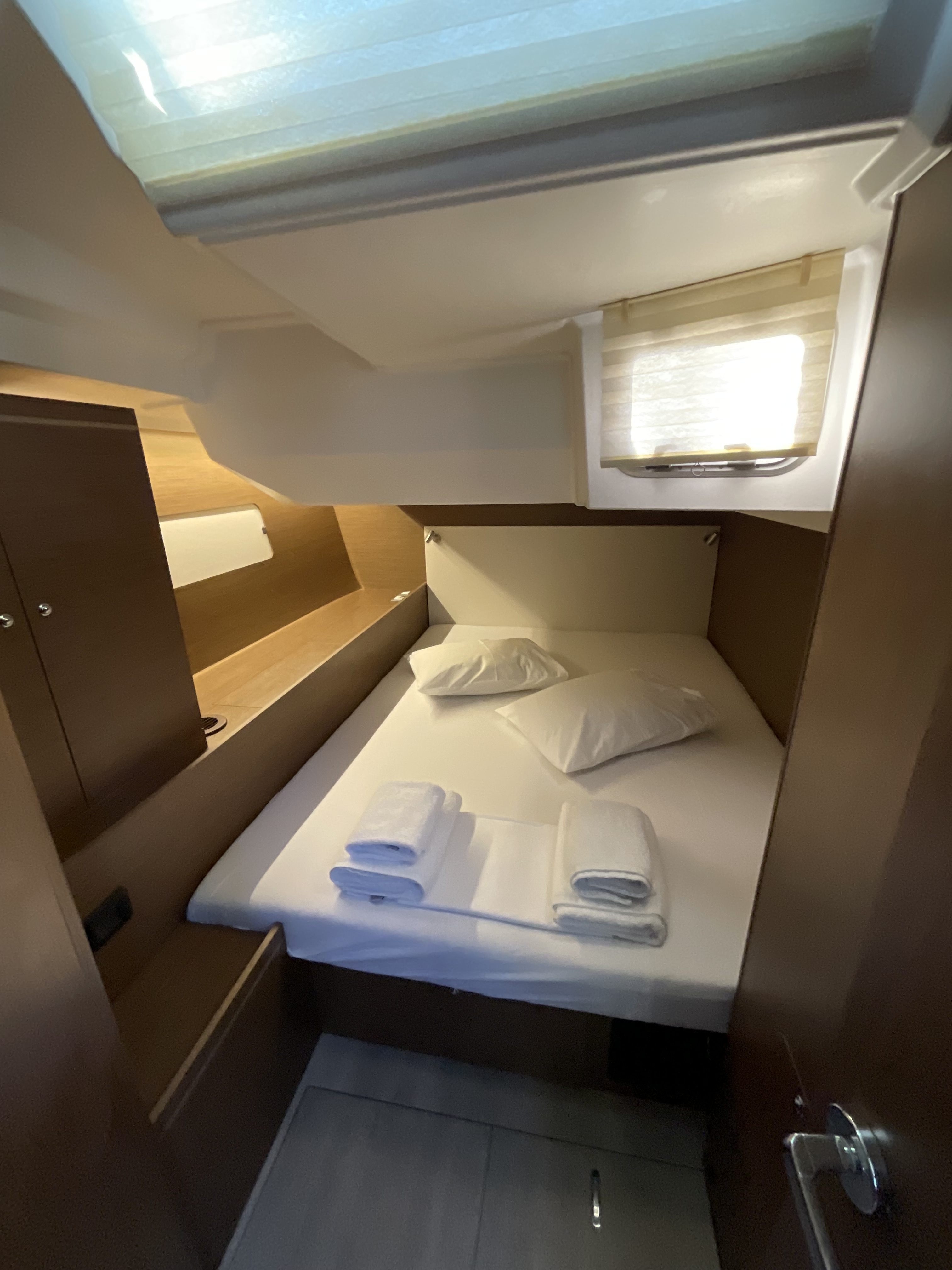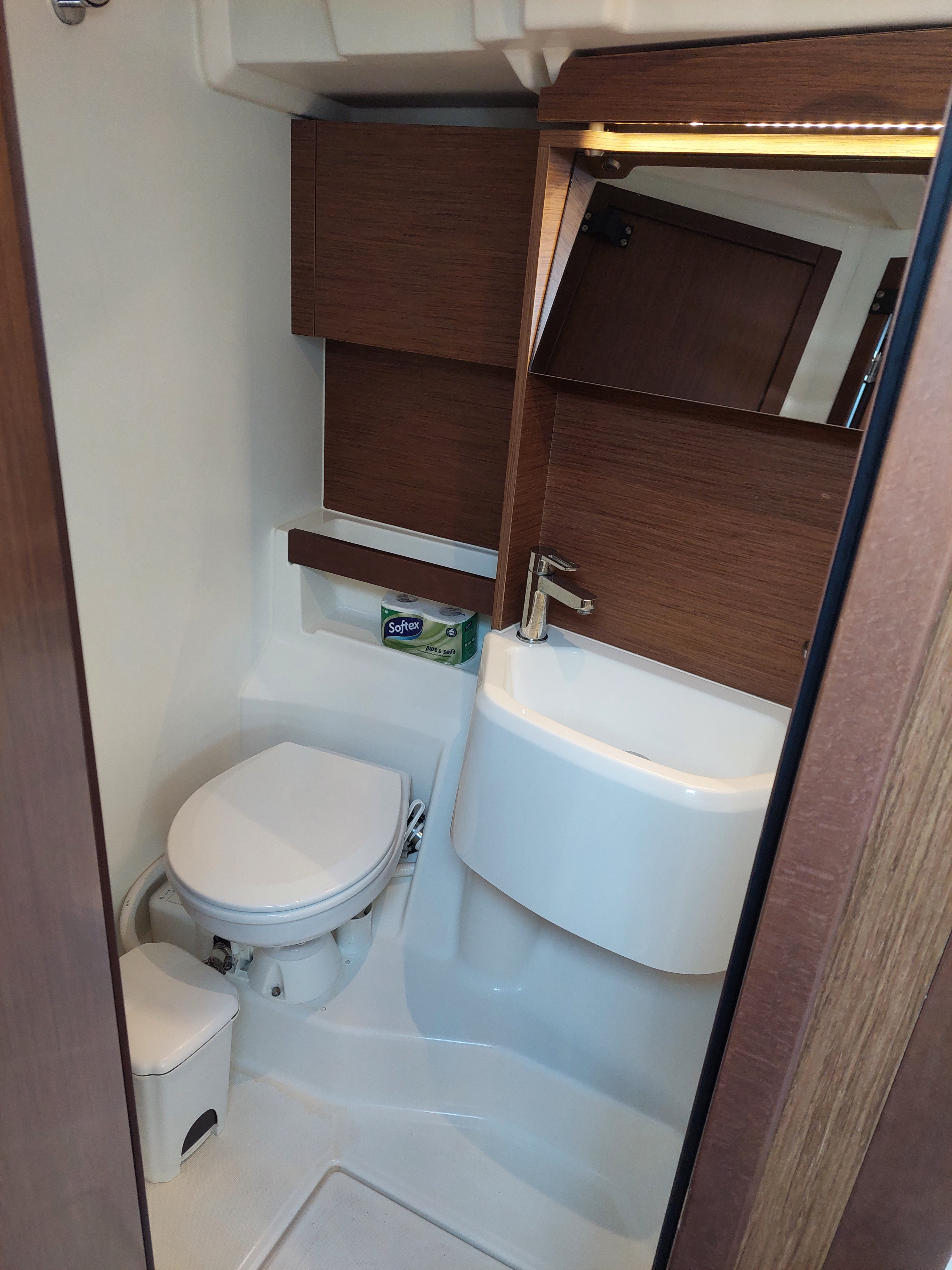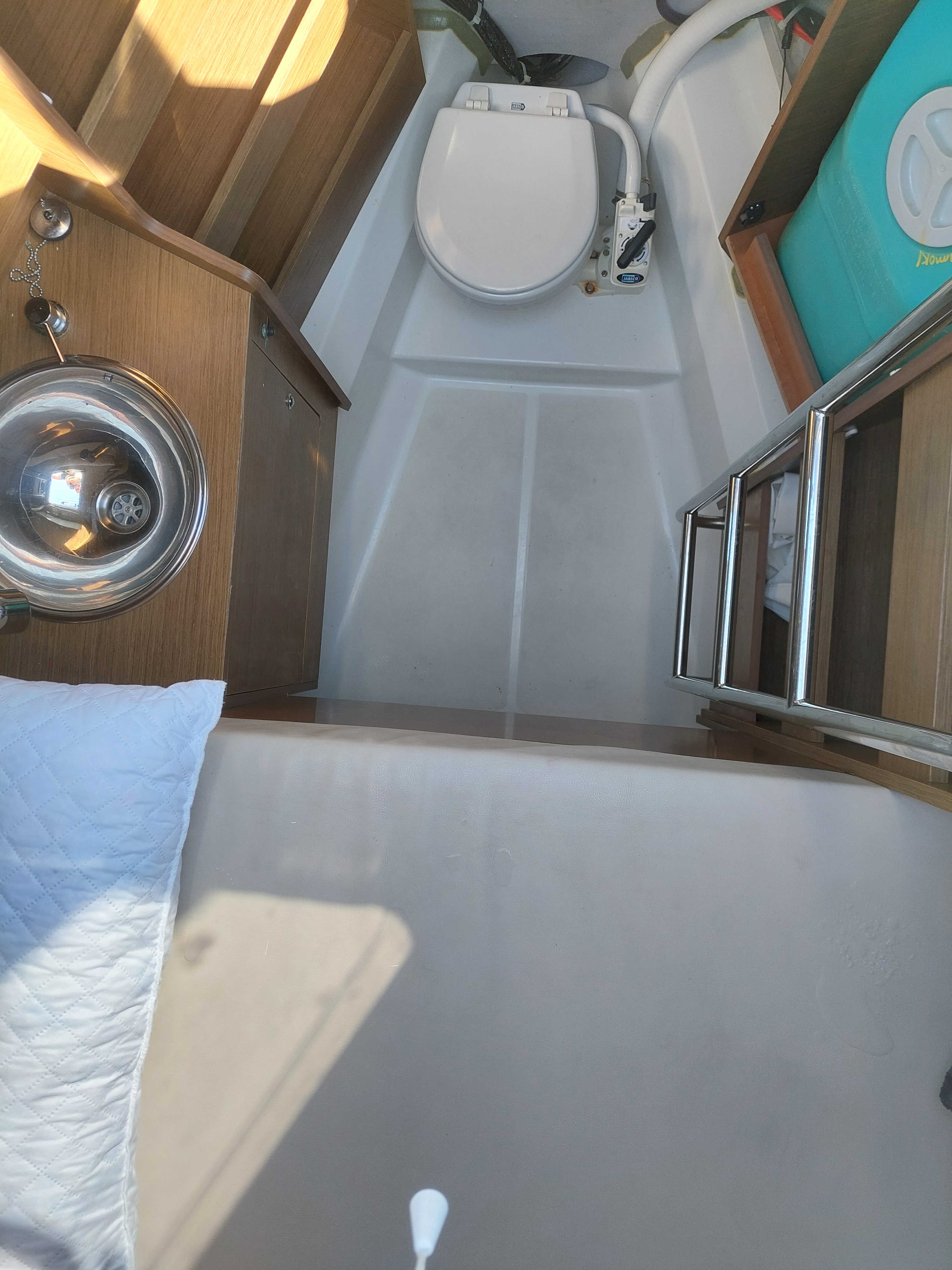 Die rechte vordere Nasszelle hatte kleine Probleme mit dem Wasserablauf....man hat uns aber schon vor dem Auslaufen darüber informiert. Das Problem ist wohl ein verdrehter Ablaufschlauch.