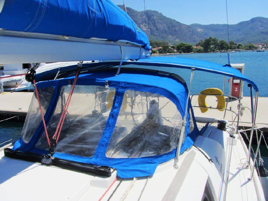 | Outside | Biminitop, Cockpitlautsprecher, elektr. Ankerwinsch, Solaranlage, Sprayhood |