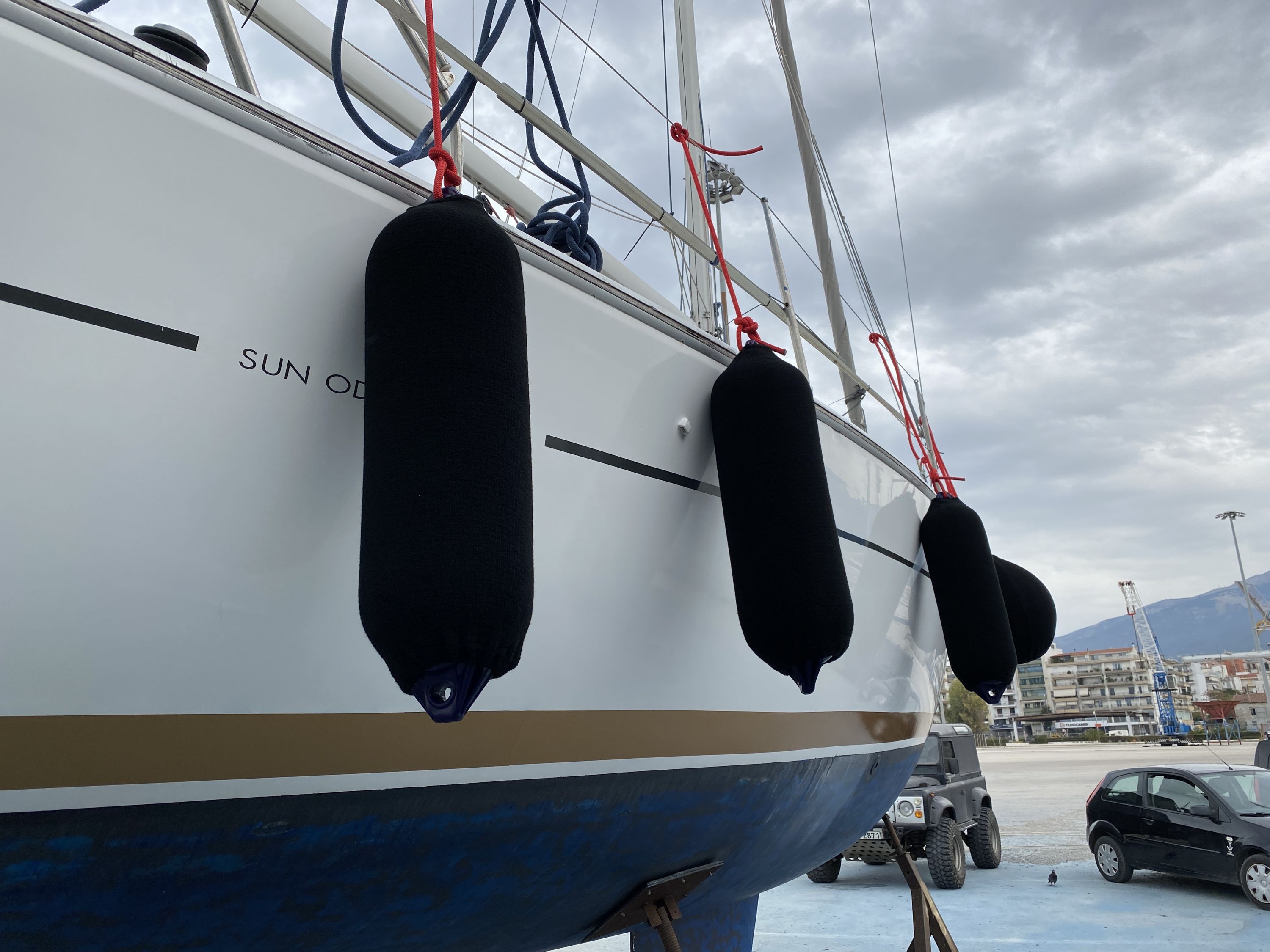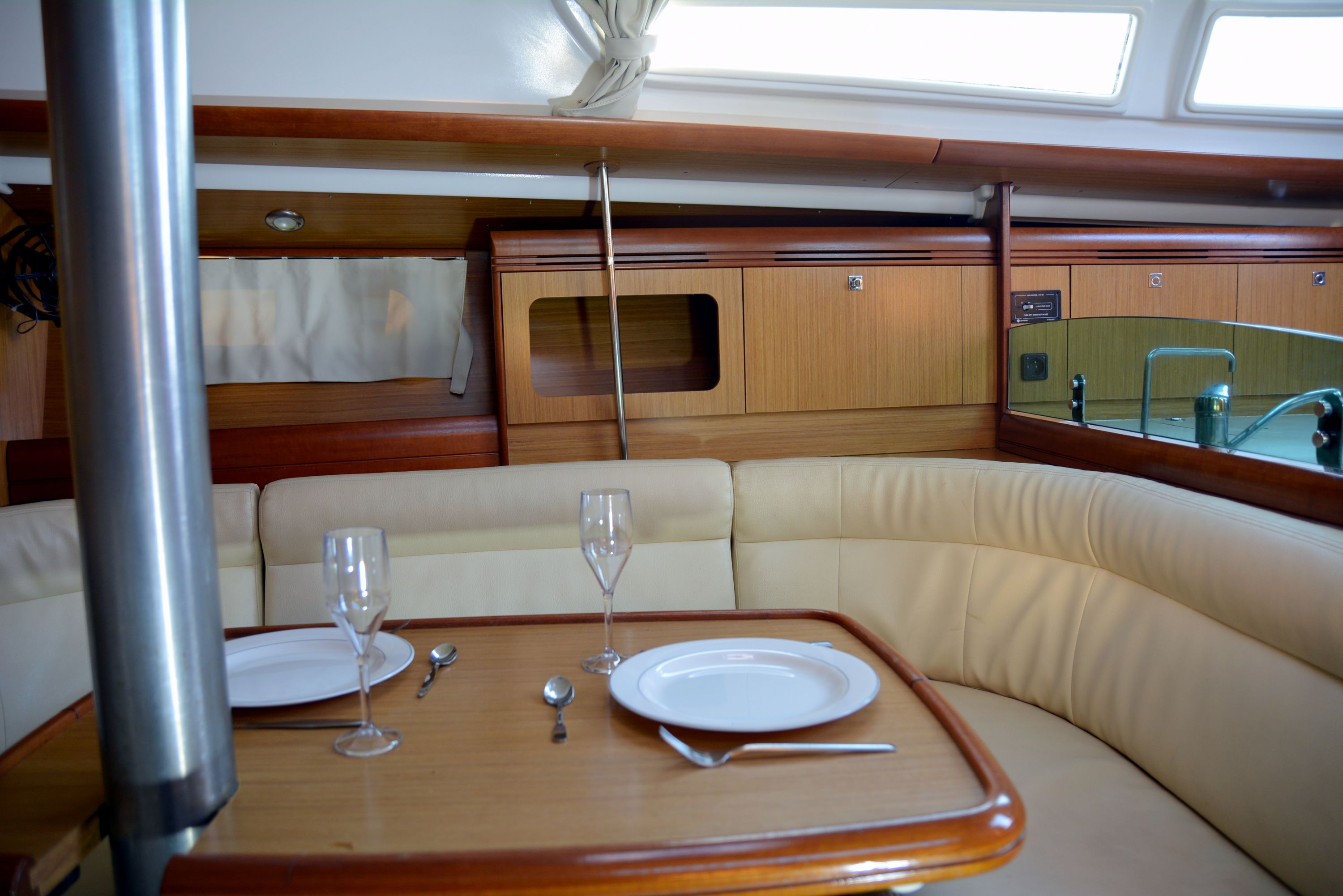 | Outside | Badeleiter, Cockpitdusche, Cockpitlautsprecher, Cockpittisch, elektr. Ankerwinsch, Segel-Flickwerkzeug, Teak im Cockpit, Treibanker, Windex |