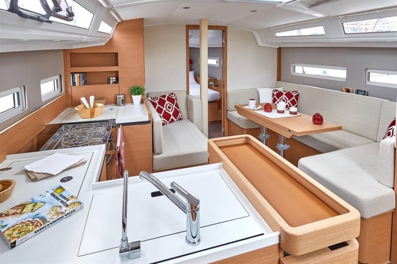| Outside | 220 V-Landanschluss, Anker mit Kette, Aschenbecher, Badeleiter, Biminitop, Bootshaken, Cockpitdusche, Cockpitpolster, Cockpittisch, Deckbürste, Dieselkanister , elektr. Ankerwinsch, Fender, Festmacherleinen, Kunststoff-Eimer (Pütz), Solaranlage, Sprayhood, Teak im Cockpit, Vorhängeschloss, Wasserschlauch, Winschen |